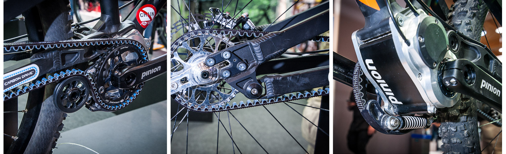 Toujours plus long, le Ion GPI séduira les amateurs de reach surdimensionnés. Trois tailles de top tubes sont proposées : Long, très long et extrêmement long. À cela s’ajoute une géométrie agressive et un angle de direction de 63,5°. Le fabriquant allemand dévoile par la même occasion le premier modèle de tout-suspendu équipé d’une boite de vitesse Pignon à courroie. Installée au niveau du boitier de pédalier, la boite de vitesse s’équipe d’une roulette exerçant une pression constante sur la courroie afin de la maintenir au contact lors du travail de la suspension.