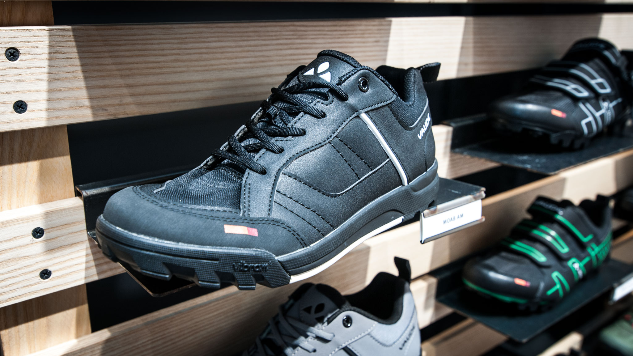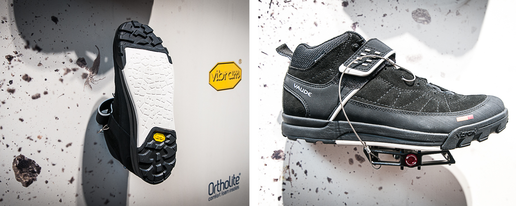 Destinée à être utilisée sur une pédale plate, la chaussure est équipée d’une semelle Vibram et la partie centrale, plate, est conçue dans un matériau tendre. L’avant et l’arrière de la chaussure sont équipés de crampons en gomme double densité afin de favoriser l’accroche lors de la marche.
