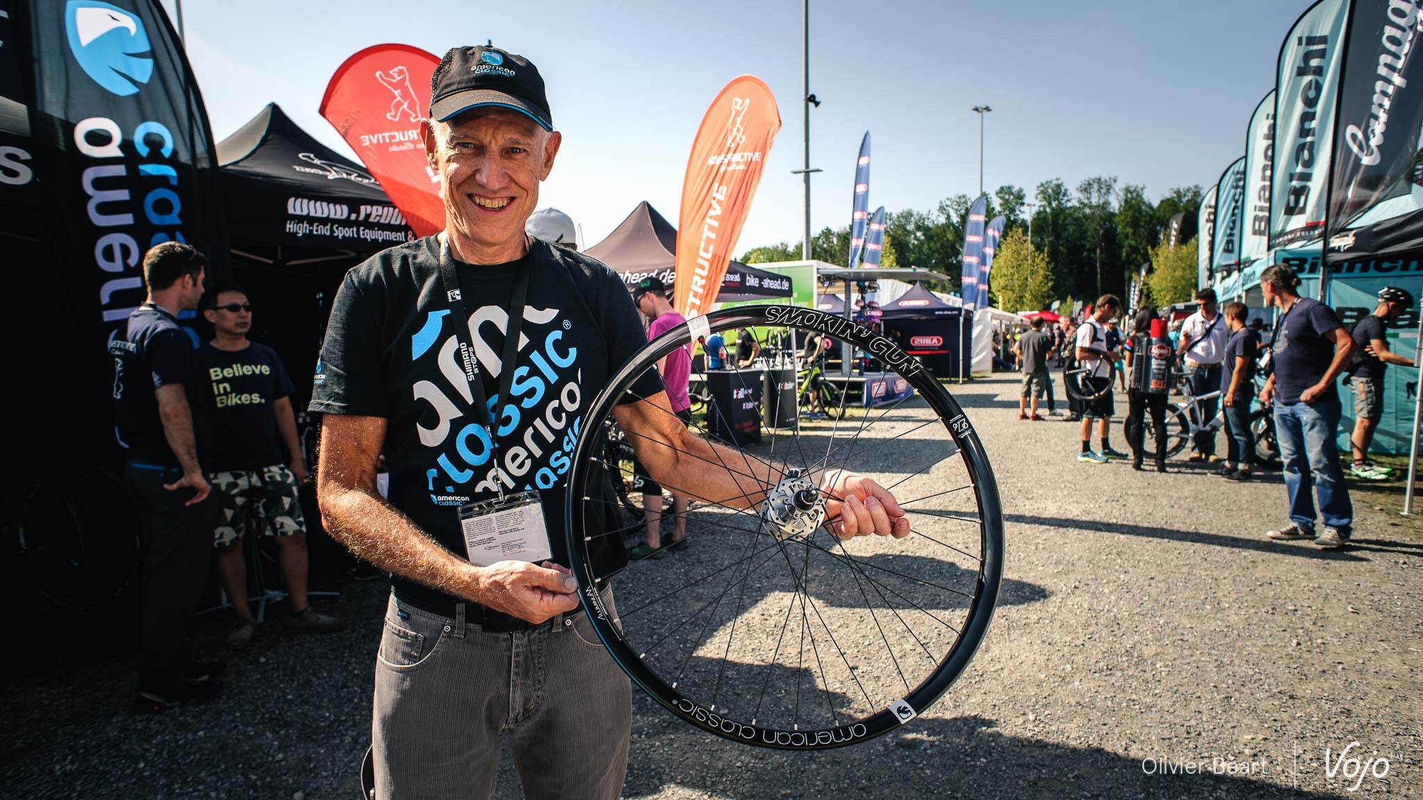 Les Américains voient toujours plus large, que ce soit au niveau du moyeu ou de la jante. Premièrement, les moyeux sont adaptés au standard Boost. Ils seront disponibles sur les autres modèles de la gamme, aux côtés des versions classiques. Plutôt que d’écarter les flasques au maximum, Bill Shook, le boss de la marque que vous pouvez voir ci-dessus avec sa dernière création, a préféré jouer la carte de la symétrie afin de créer une roue arrière dont les tensions des rayons sont équilibrées.