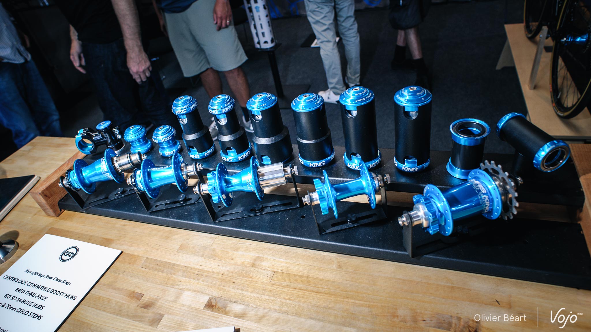 Pour l’instant, Boost et Centerlock iront obligatoirement ensemble, mais une version Boost 6 trous est également prévue rapidement. Par contre, pour les moyeux classiques en Centerlock, rien n’est sûr : « Le système Shimano prend un peu plus de place et nous ne voulons pas modifier la géométrie de nos moyeux. Avec le Boost on peut se permettre de jouer un peu plus, c’est pourquoi nous en avons profité pour offrir cette option. Mais nous travaillons également sur une version « non Boost » en Centerlock », nous assure le responsable technique sur le stand. Sur les moyeux Boost arrière, les flasques ont été écartées, mais pas au maximum car Chris King a préféré miser sur la symétrie afin d’équilibrer les tensions des rayons. A l’avant, le moyeu est parfaitement symétrique. La hauteur des flasques a aussi été augmentée afin de doper la rigidité. Rassurez-vous : ces moyeux ne remplaceront en aucun cas les versions classiques