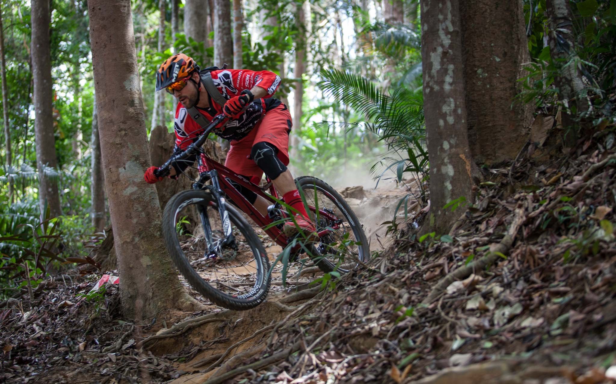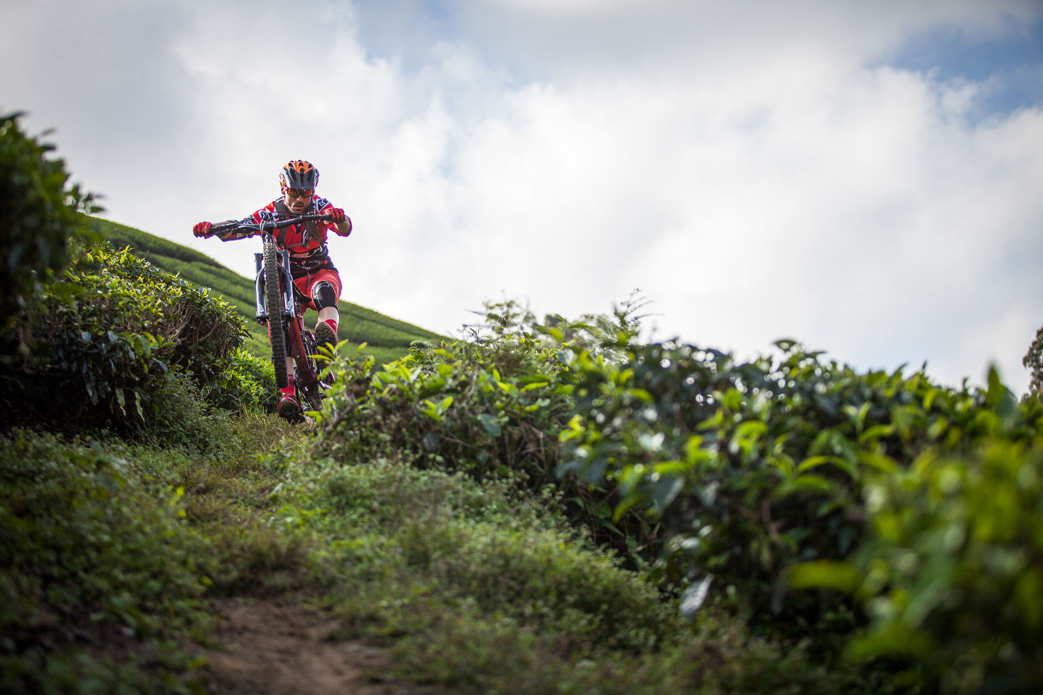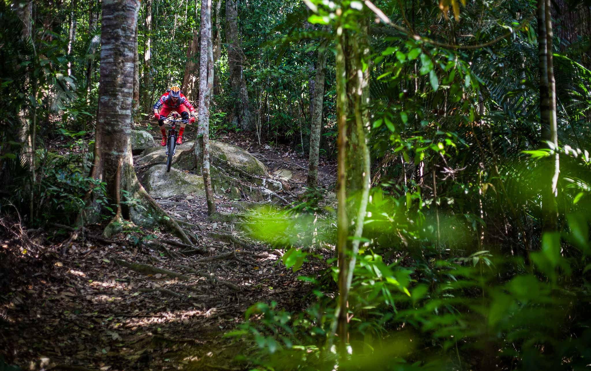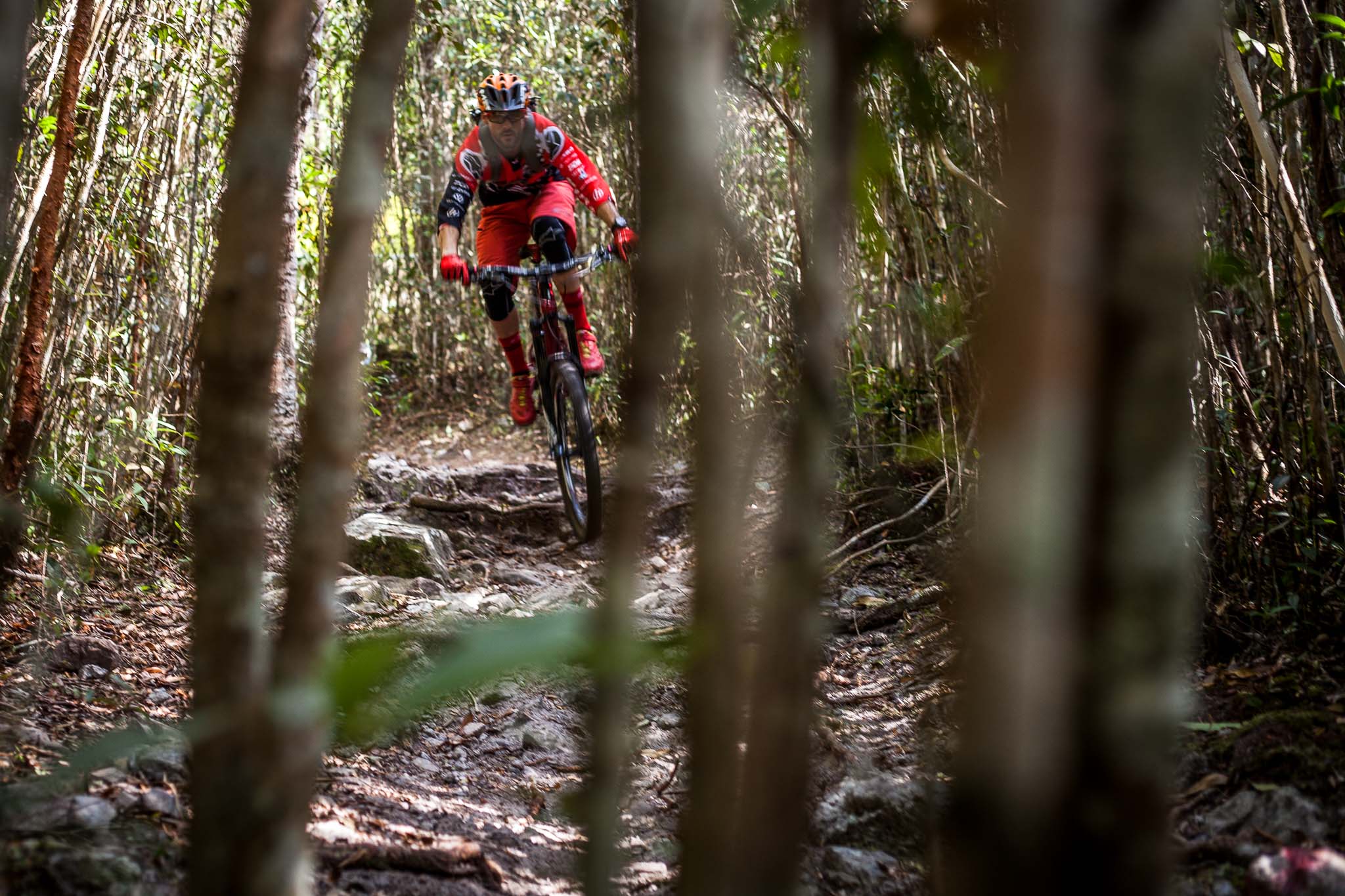 Les conditions sont très sèches et le terrain encore différent. De la pente, des racines et du dévers dans un mélange sablonneux, c’est le programme du jour. Les locaux nous ouvrent la route et se faufilent à travers des pistes sinueuses et piégeuses. Les trajectoires sont multiples mais hors de question de couper un arbre en travers du chemin, Jerai est une réserve naturelle.