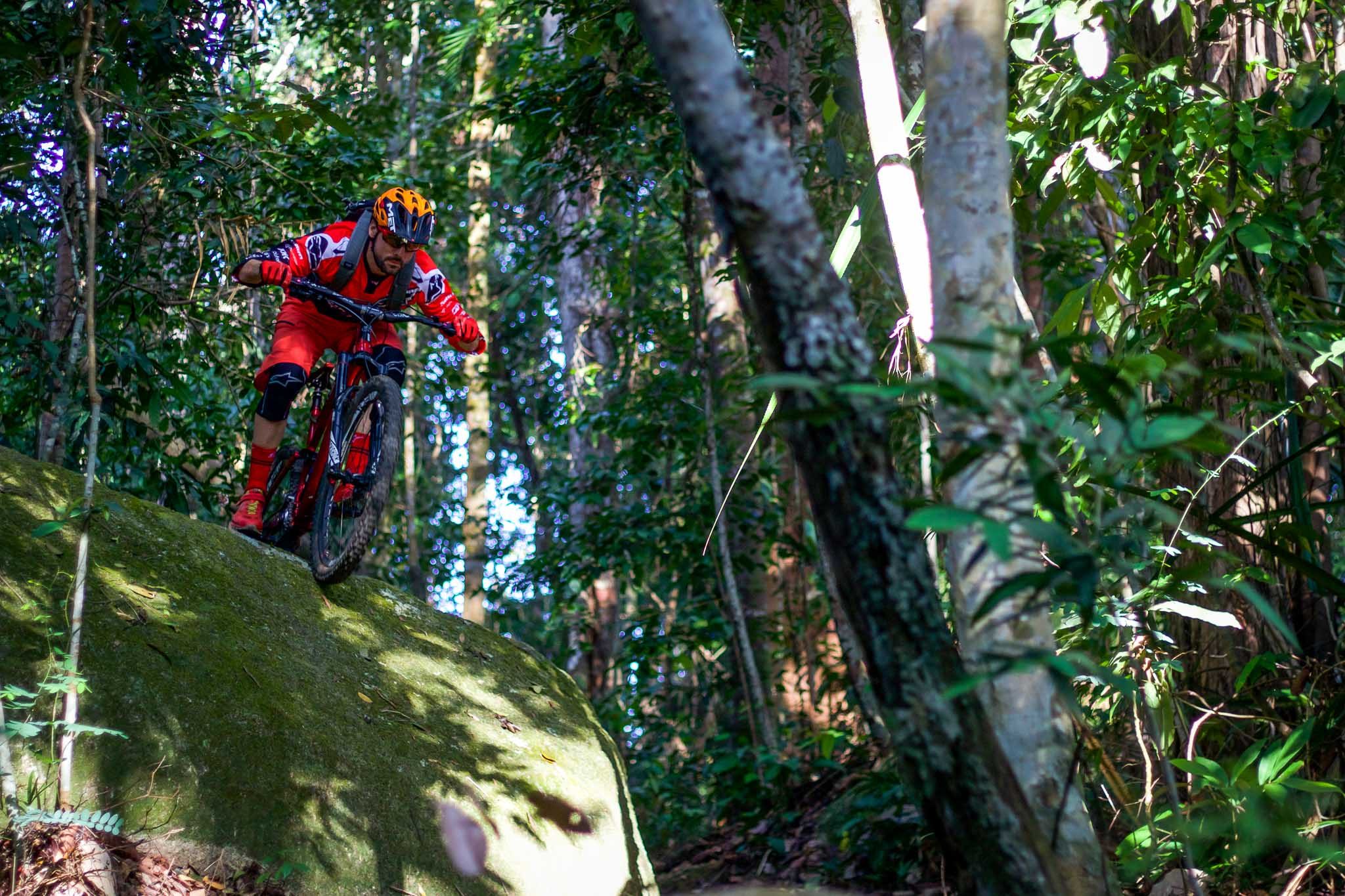 Un conseil, assurez-vous d’avoir des freins avant de vous lancer. Une piste porte même le nom de « mini Champéry » faisant allusion à la célèbre piste de DH Suisse, droit dans la pente… Pour avoir rouler l’original, c’est aussi pentu. Mais la température et ici humide et écrasante avec des serpents qui se jettent d’arbres en arbres.