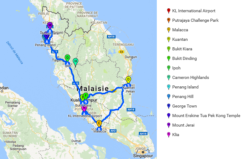 Plus connu dans le monde des affaires que pour y faire du vélo, La Malaisie est un pays en plein essor. A première vue, ce n’est pas la destination qu’on choisirait pour un road-trip digne de ce nom. Et pourtant. Même si les richesses du pays sont en grande partie liées au pétrole et à la production d’huile de palme, entrainant des déforestations conséquentes la communauté de pilotes augmente d’année en année et certaines régions encore protégées nous motivent à explorer le pays. En compagnie de Thiromana Yin, gérant de « Adventurewelike » ; Dominic, le guide local et William Klock accroché à sa caméra, c’est parti pour un trip de 3000km à la recherche des spots les plus réputés du pays.