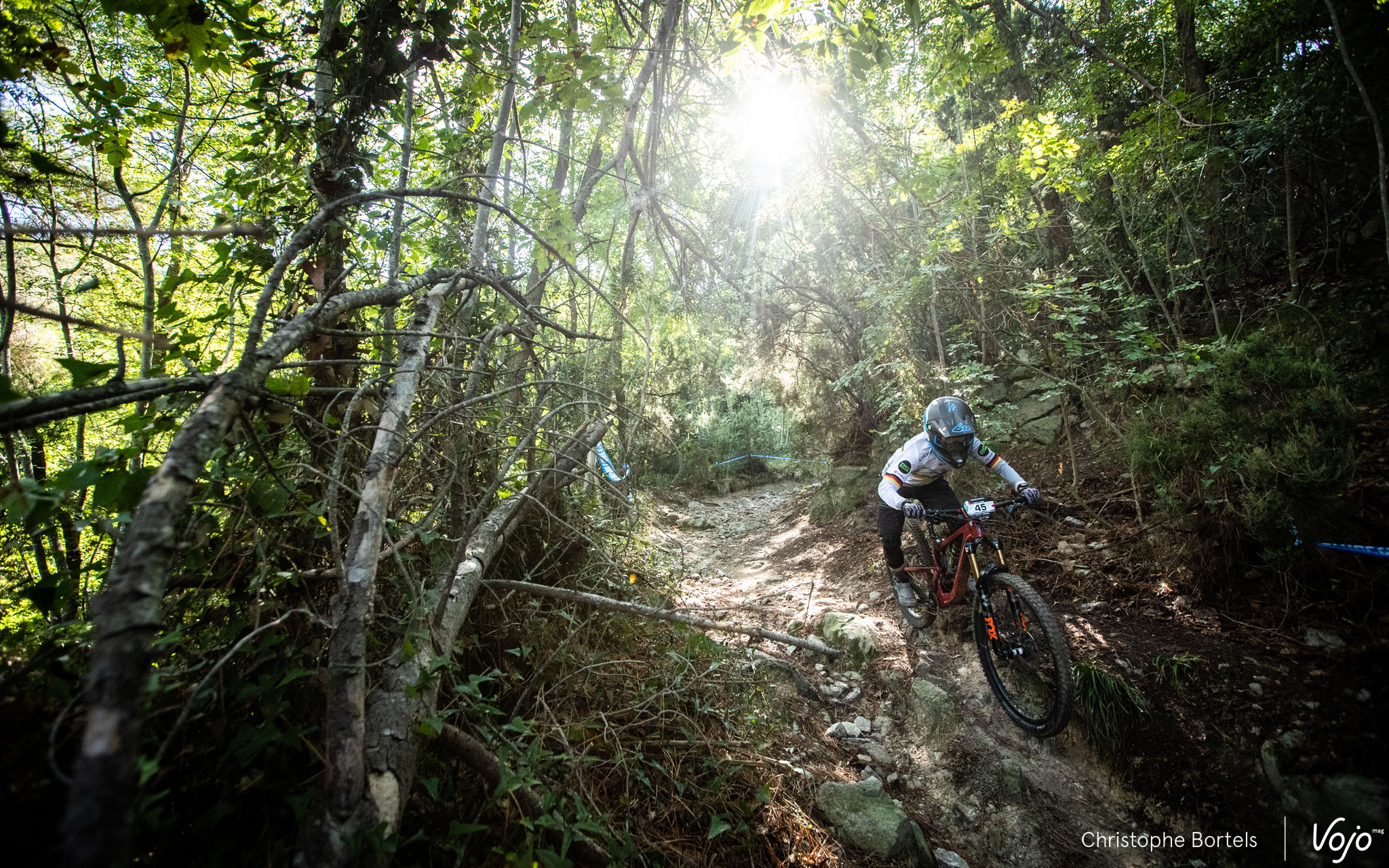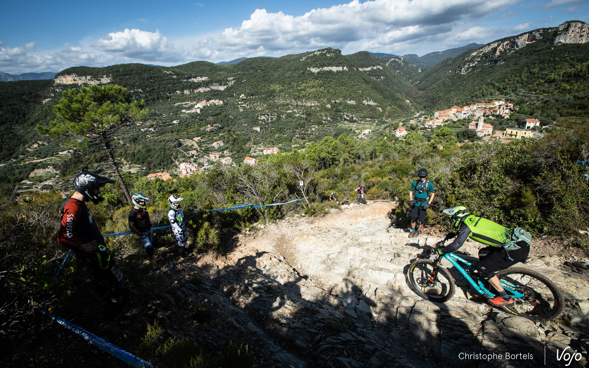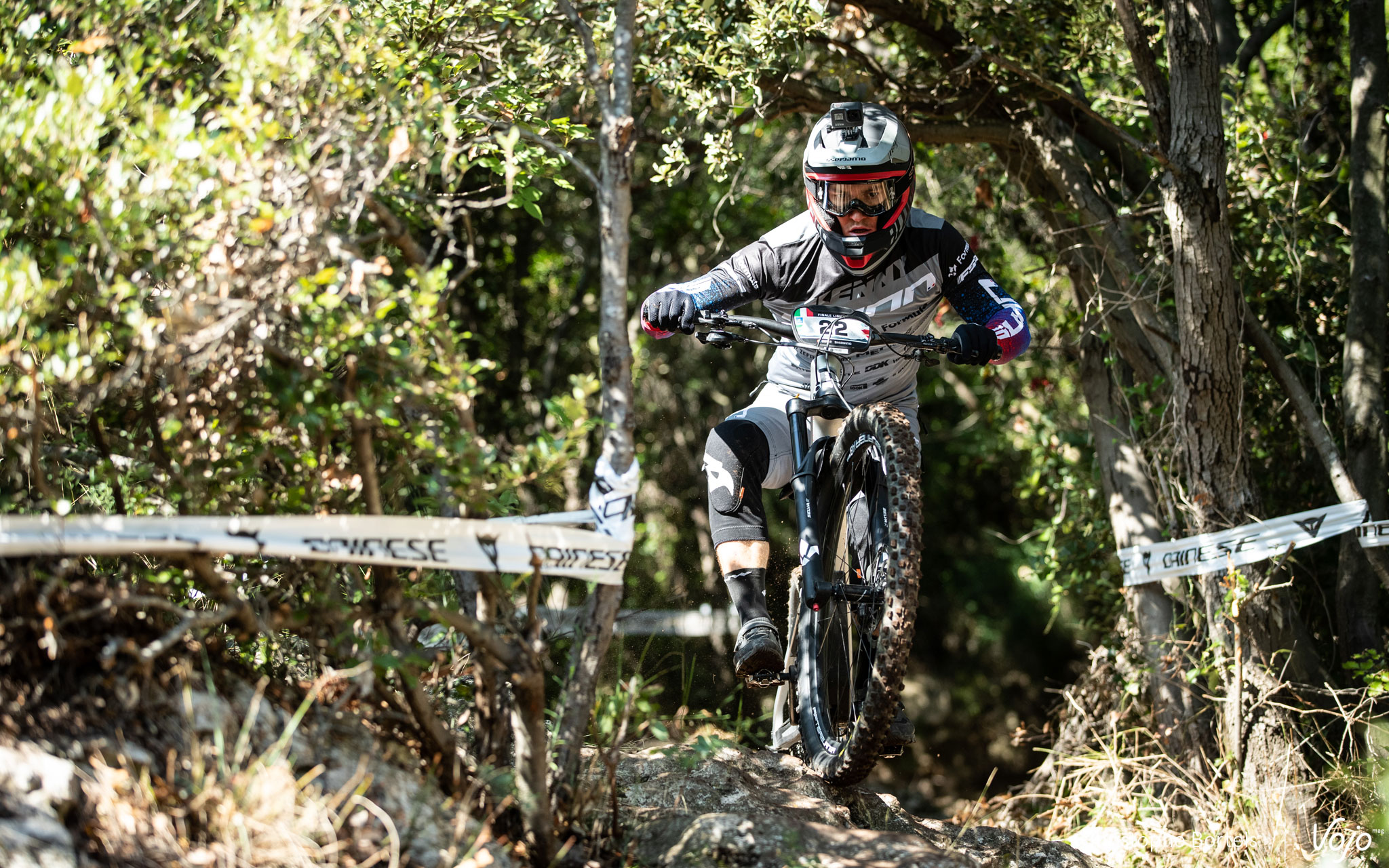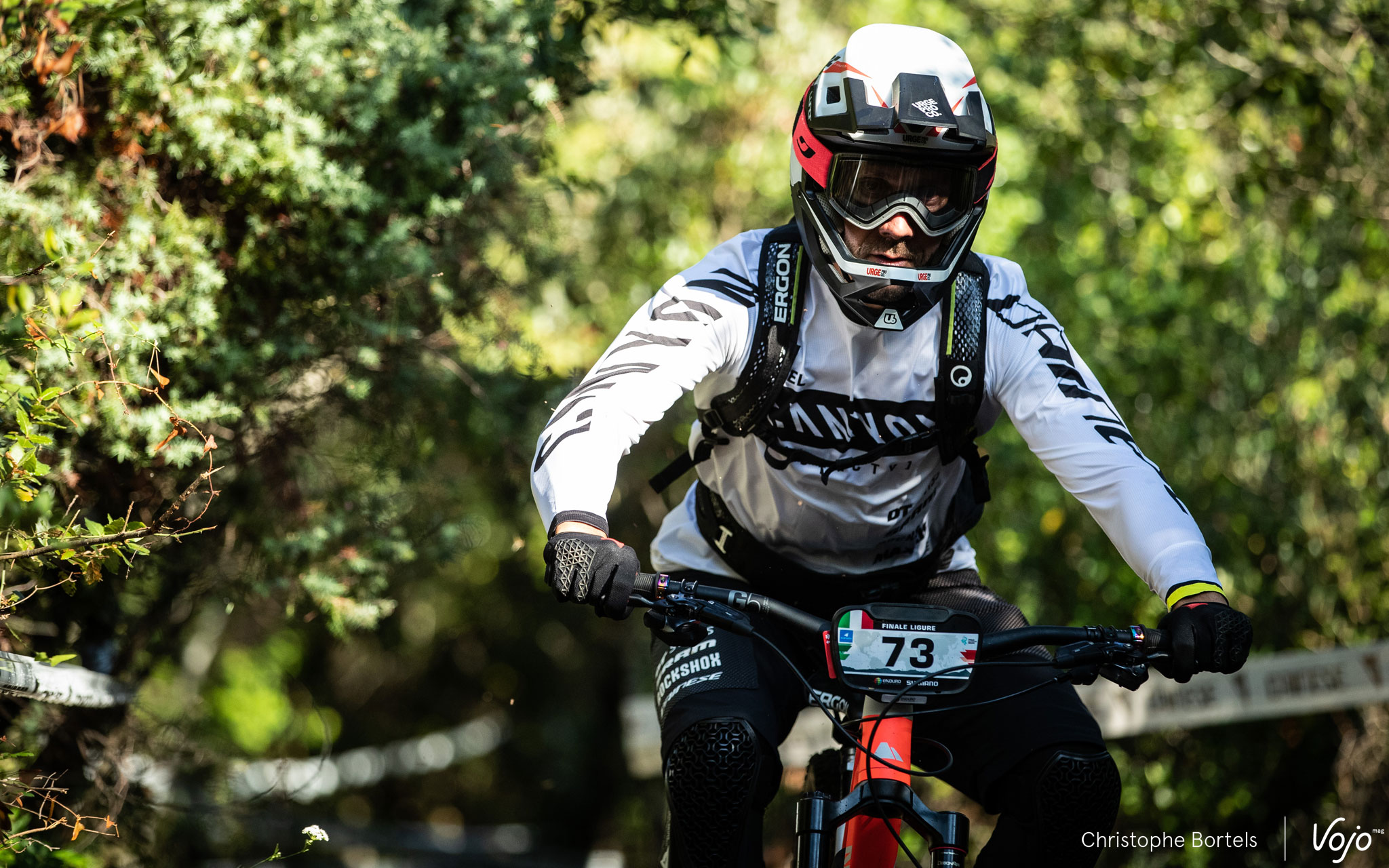 Après une manche réduite à seulement deux spéciales à Zermatt en guise d’entrée suite à des conditions météo très compliquées, les enduristes ont pu goûter à l’imposant plat de résistance servi à Pietra Ligure il y a quelques jours. Le dessert proposé à Finale ce week-end était lui aussi plutôt copieux avec, certes, seulement 4 spéciales, mais 65 kilomètres à parcourir et plus de 1900m de dénivelé positif à avaler à la pédale. Et en spéciale, c’était pas du gâteau : du défoncé rapide, du sinueux étroit, limite trialisant parfois, et surtout, beaucoup (trop ?) de physique… Il fallait donc être un pilote particulièrement complet pour prétendre à une place dans le haut du classement ce samedi !