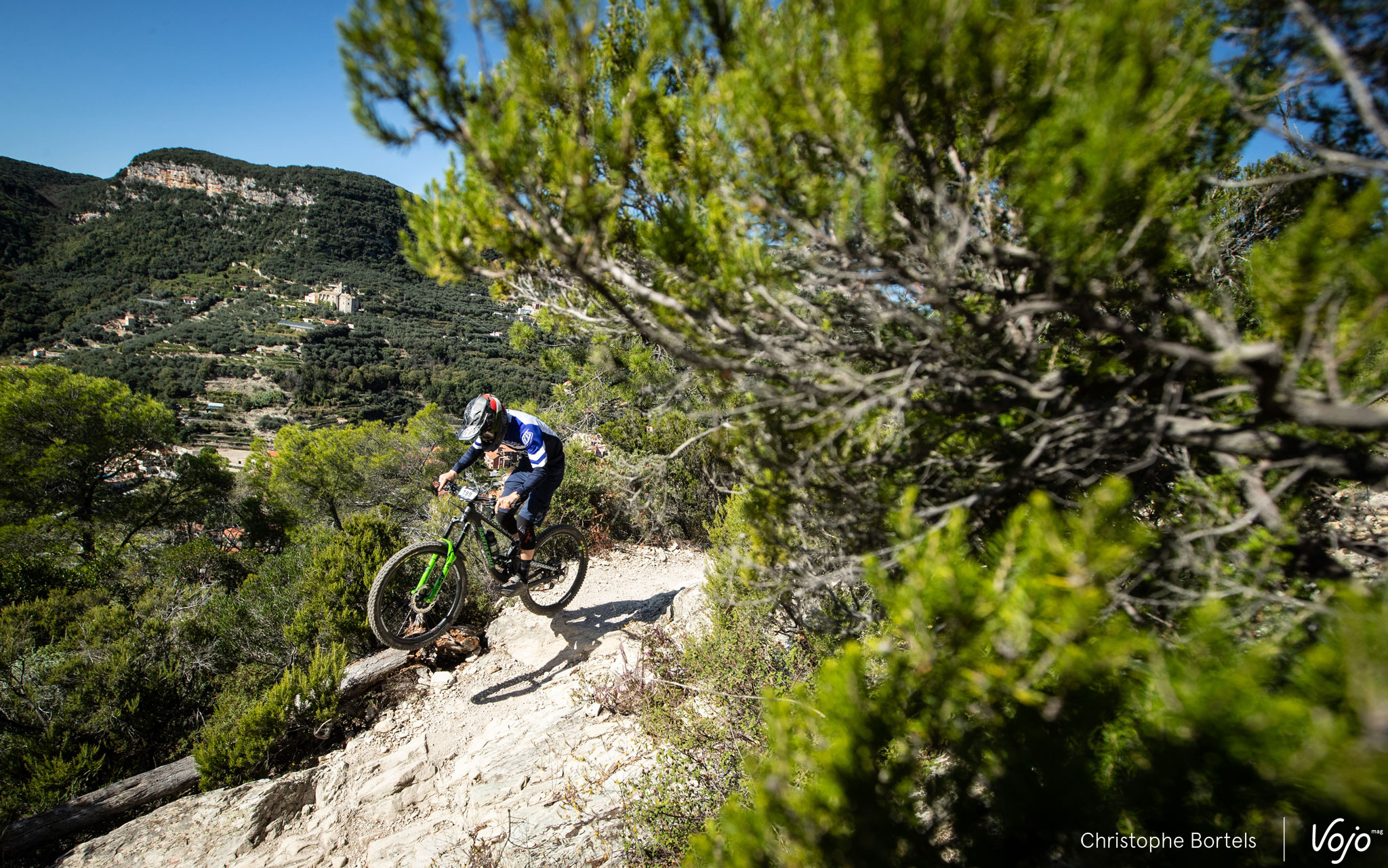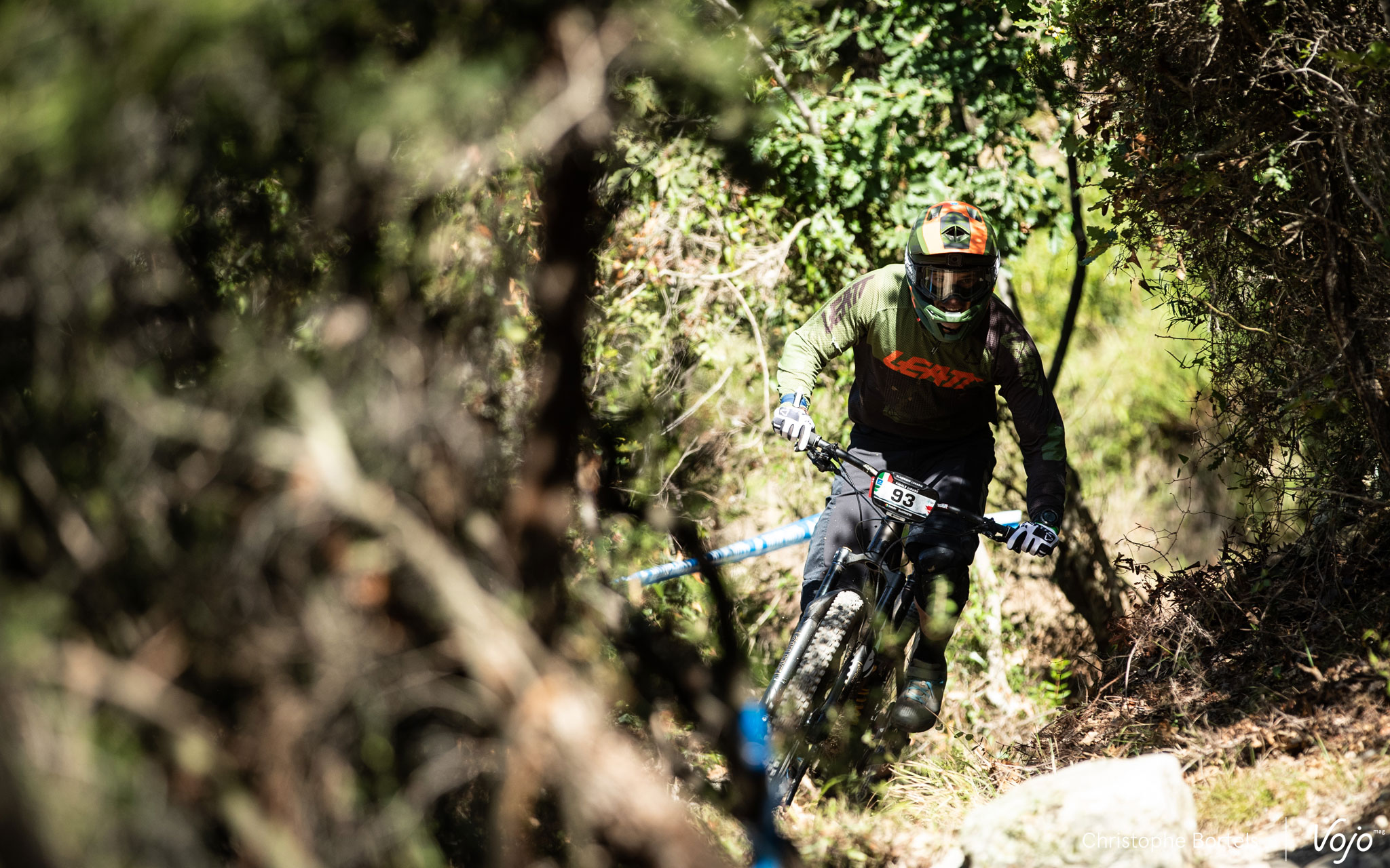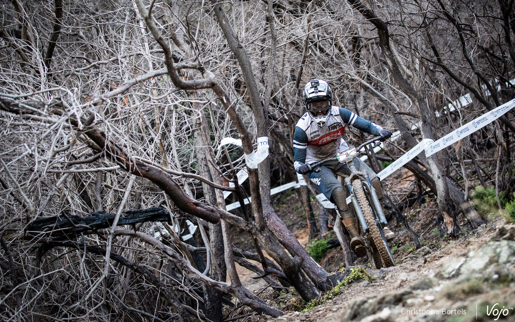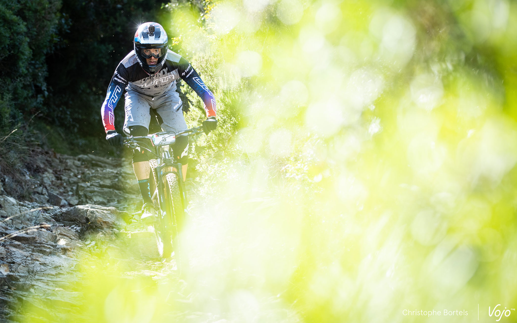 Après une manche réduite à seulement deux spéciales à Zermatt en guise d’entrée suite à des conditions météo très compliquées, les enduristes ont pu goûter à l’imposant plat de résistance servi à Pietra Ligure il y a quelques jours. Le dessert proposé à Finale ce week-end était lui aussi plutôt copieux avec, certes, seulement 4 spéciales, mais 65 kilomètres à parcourir et plus de 1900m de dénivelé positif à avaler à la pédale. Et en spéciale, c’était pas du gâteau : du défoncé rapide, du sinueux étroit, limite trialisant parfois, et surtout, beaucoup (trop ?) de physique… Il fallait donc être un pilote particulièrement complet pour prétendre à une place dans le haut du classement ce samedi !