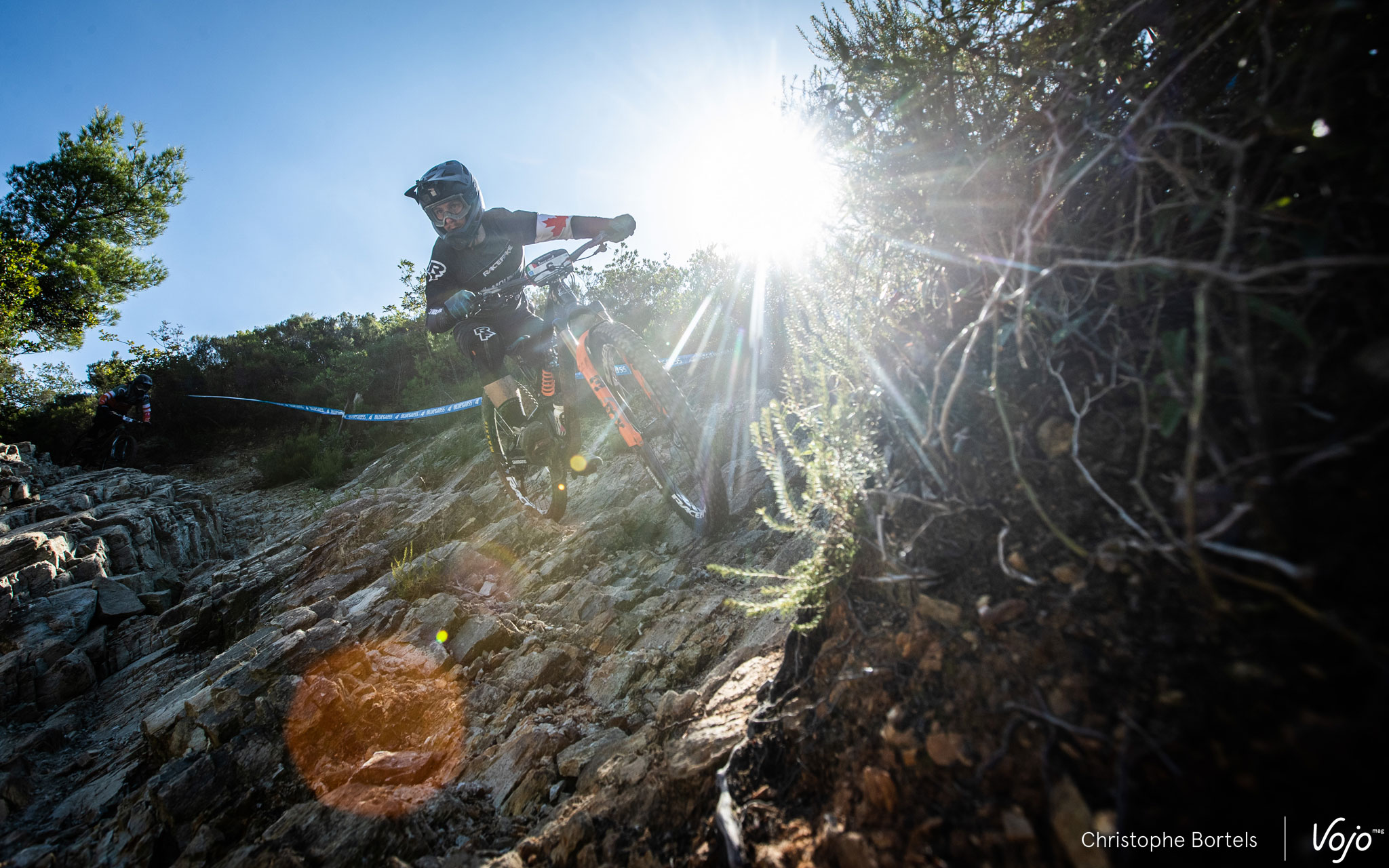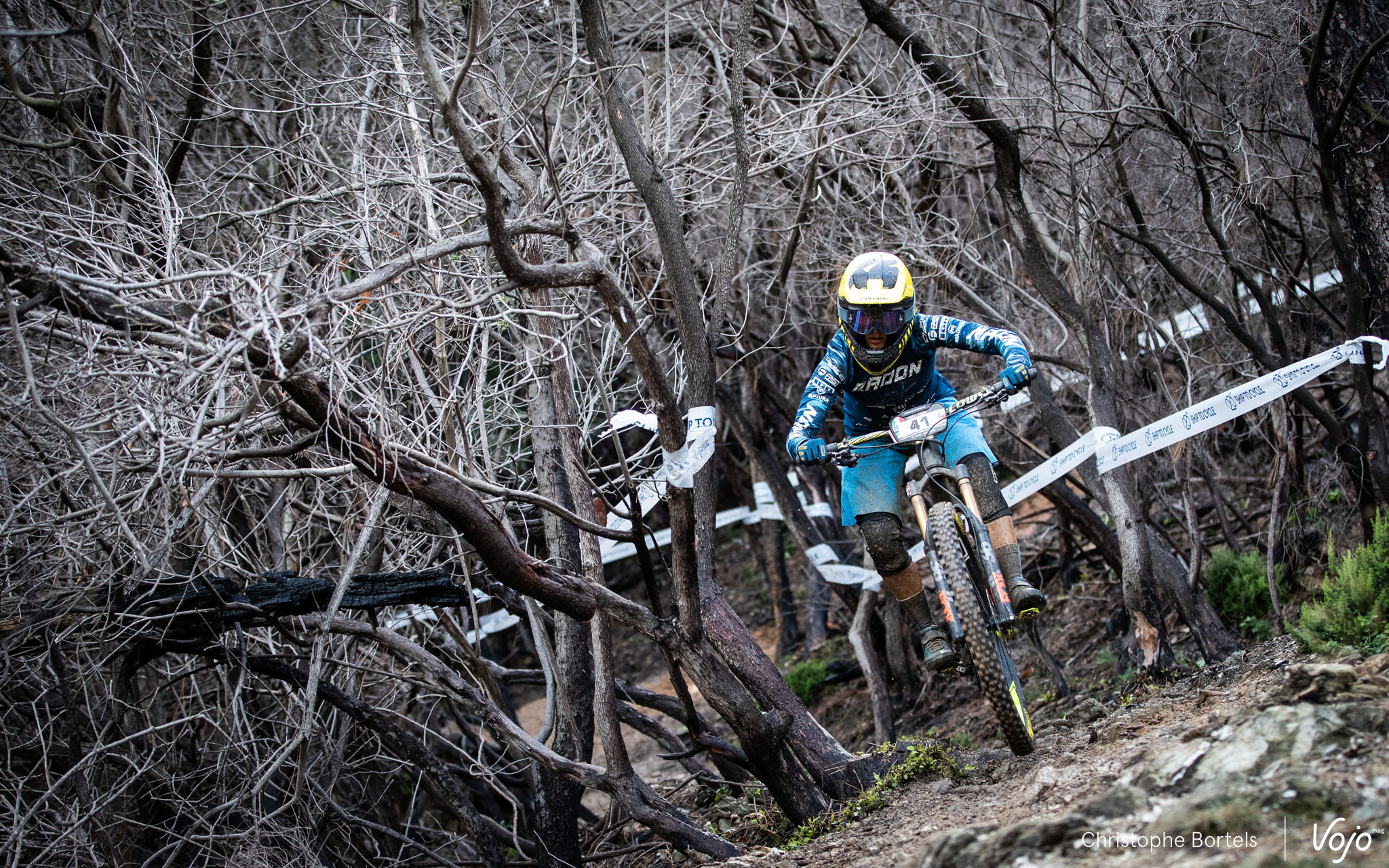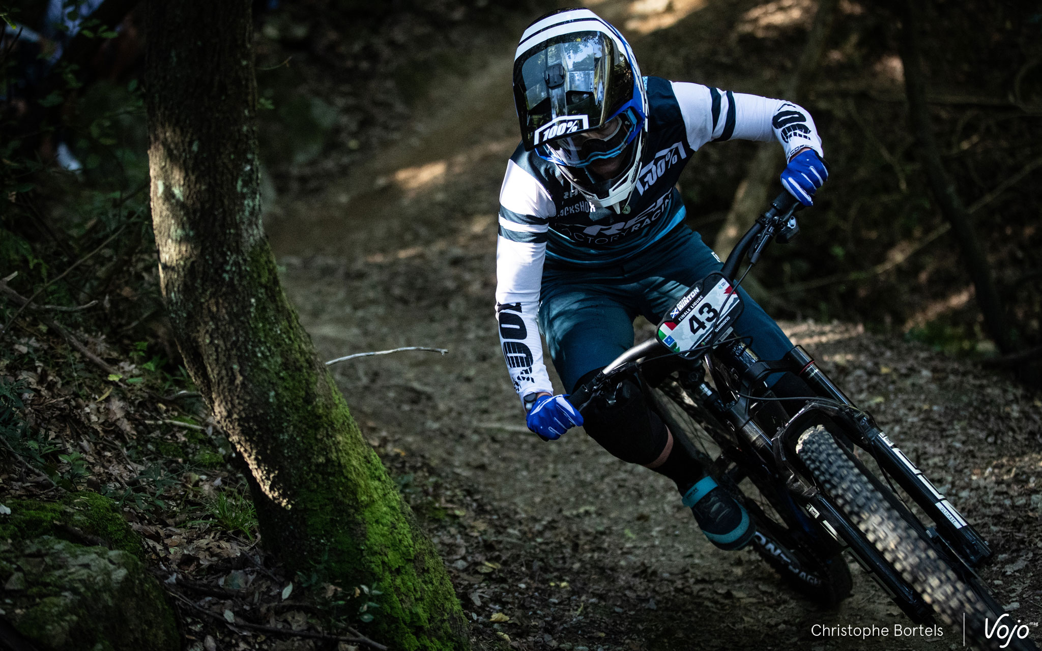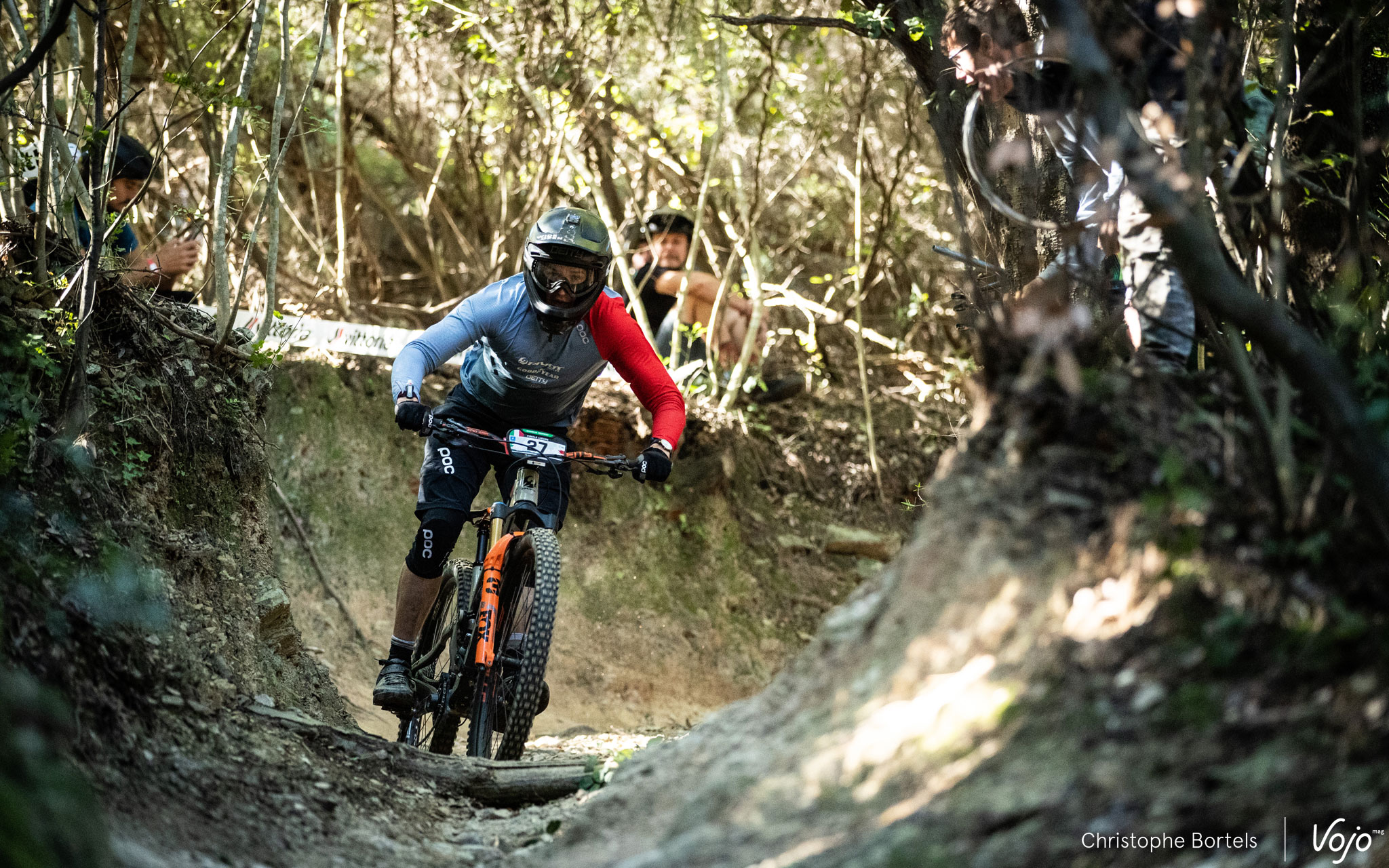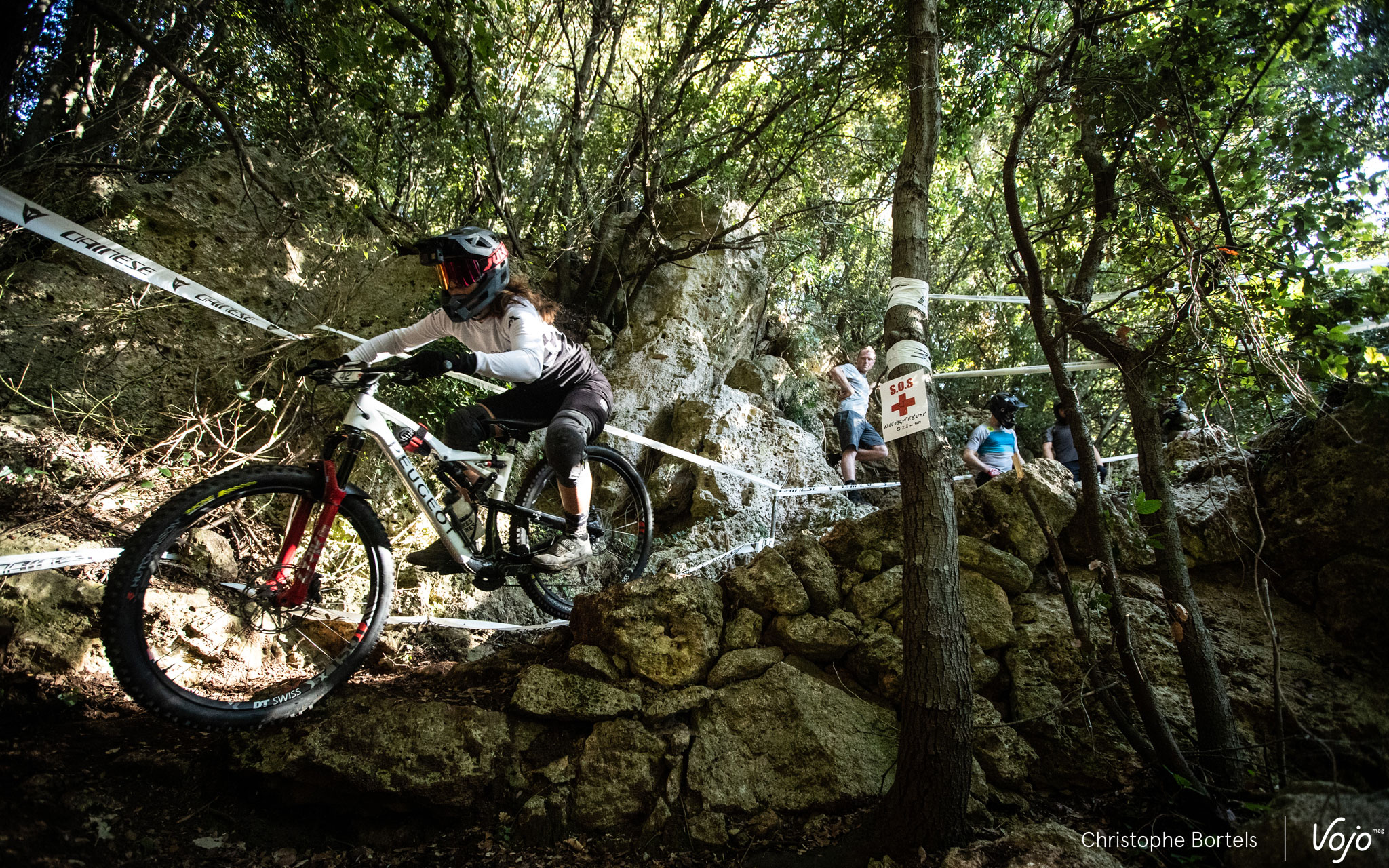 Après une manche réduite à seulement deux spéciales à Zermatt en guise d’entrée suite à des conditions météo très compliquées, les enduristes ont pu goûter à l’imposant plat de résistance servi à Pietra Ligure il y a quelques jours. Le dessert proposé à Finale ce week-end était lui aussi plutôt copieux avec, certes, seulement 4 spéciales, mais 65 kilomètres à parcourir et plus de 1900m de dénivelé positif à avaler à la pédale. Et en spéciale, c’était pas du gâteau : du défoncé rapide, du sinueux étroit, limite trialisant parfois, et surtout, beaucoup (trop ?) de physique… Il fallait donc être un pilote particulièrement complet pour prétendre à une place dans le haut du classement ce samedi !