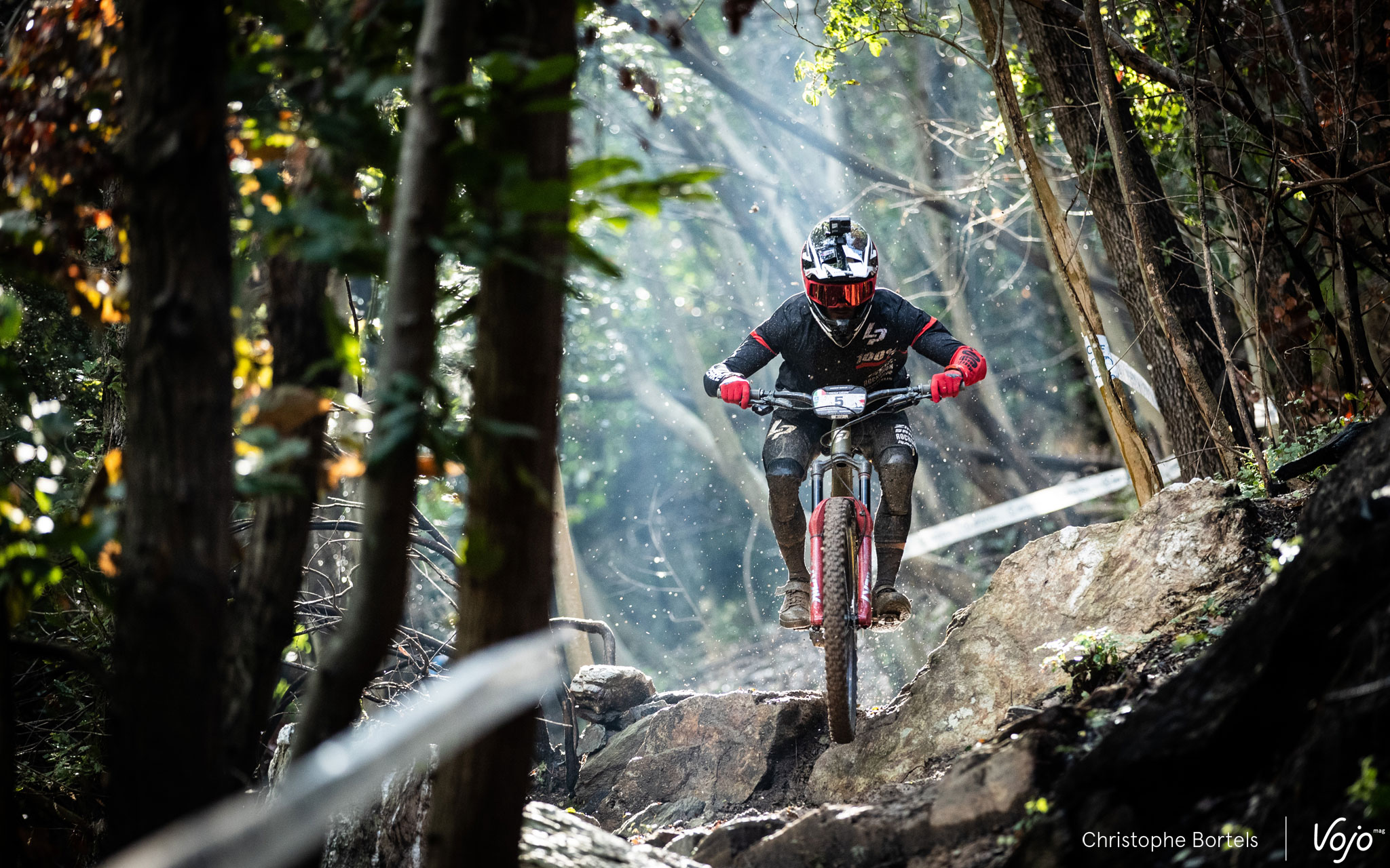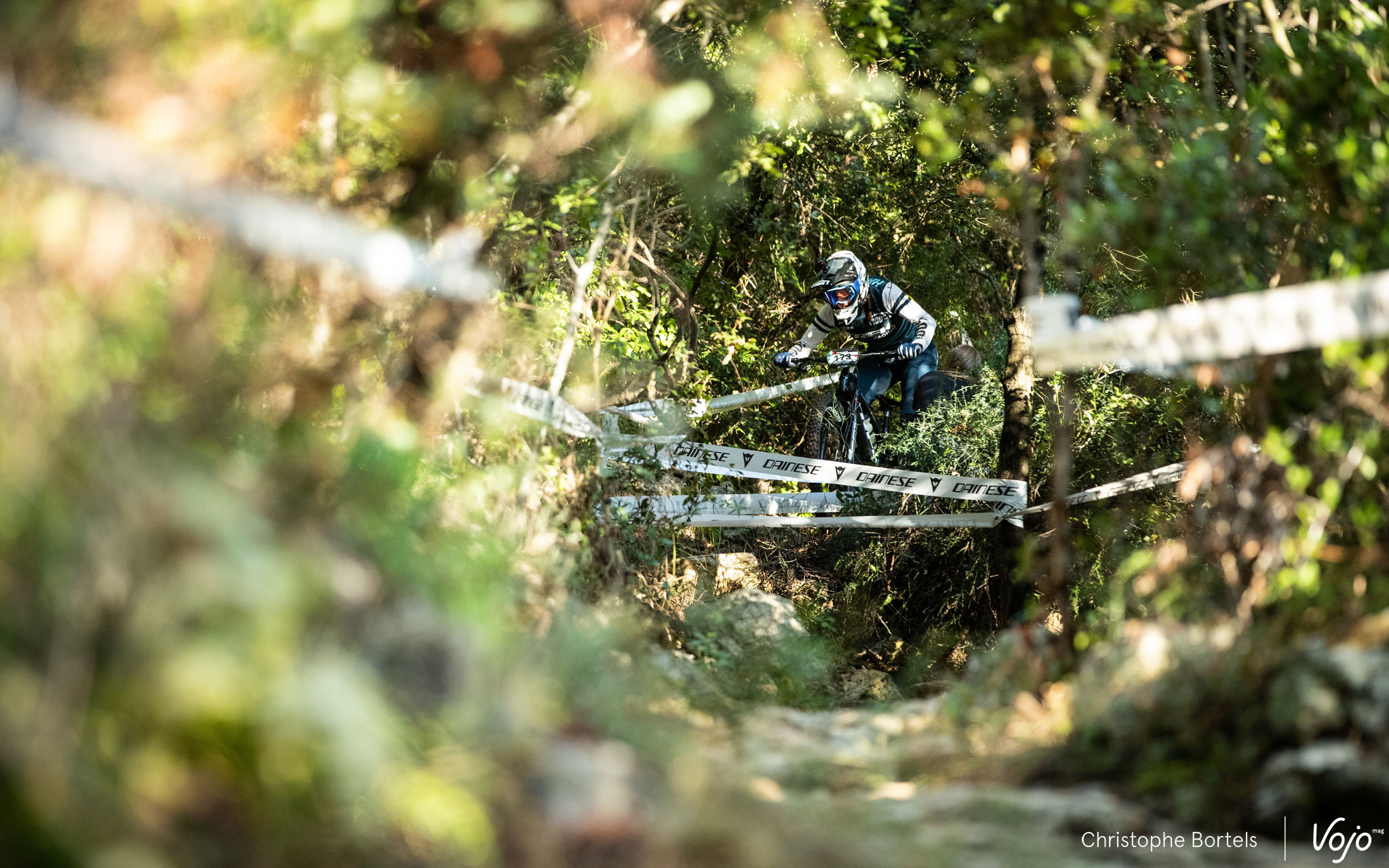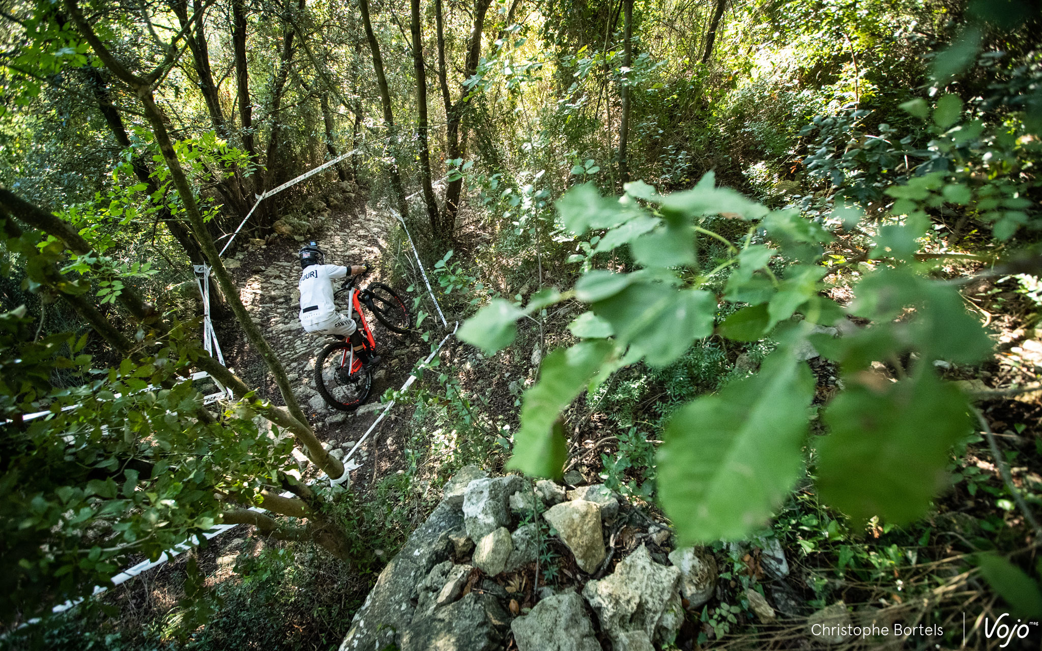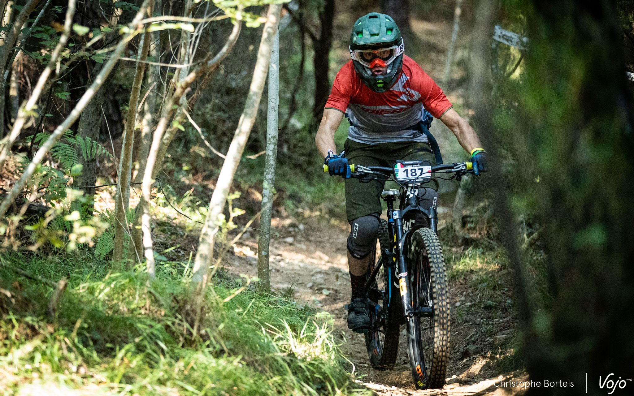 Après une manche réduite à seulement deux spéciales à Zermatt en guise d’entrée suite à des conditions météo très compliquées, les enduristes ont pu goûter à l’imposant plat de résistance servi à Pietra Ligure il y a quelques jours. Le dessert proposé à Finale ce week-end était lui aussi plutôt copieux avec, certes, seulement 4 spéciales, mais 65 kilomètres à parcourir et plus de 1900m de dénivelé positif à avaler à la pédale. Et en spéciale, c’était pas du gâteau : du défoncé rapide, du sinueux étroit, limite trialisant parfois, et surtout, beaucoup (trop ?) de physique… Il fallait donc être un pilote particulièrement complet pour prétendre à une place dans le haut du classement ce samedi !