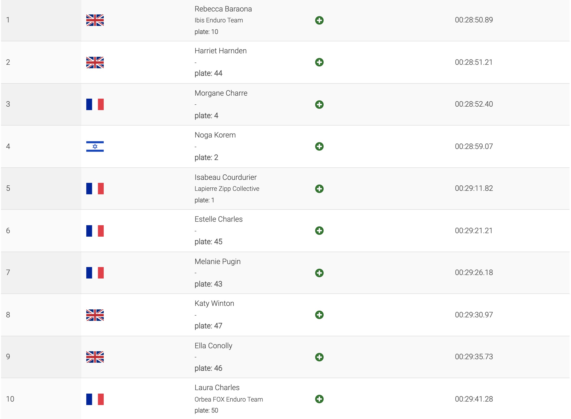 Katy Winton, Ella Conolly et Laura Charles complètent le top 10.