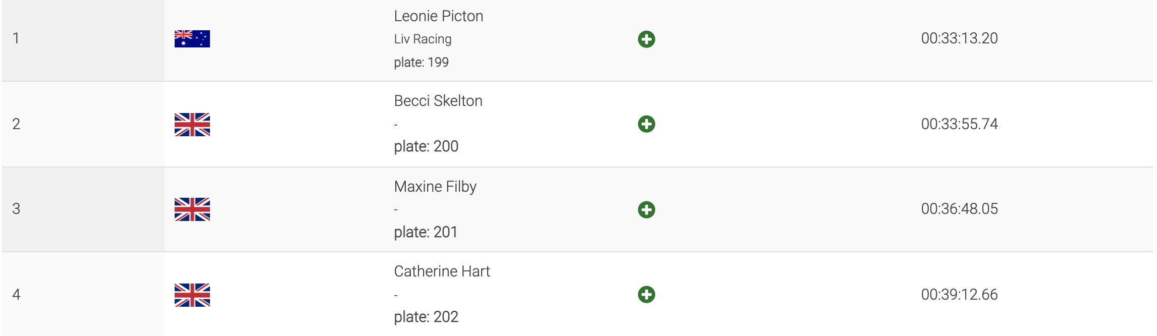 A la 3e place derrière les deux Britanniques, on retrouve Morgane Charre, qui complète donc le podium.