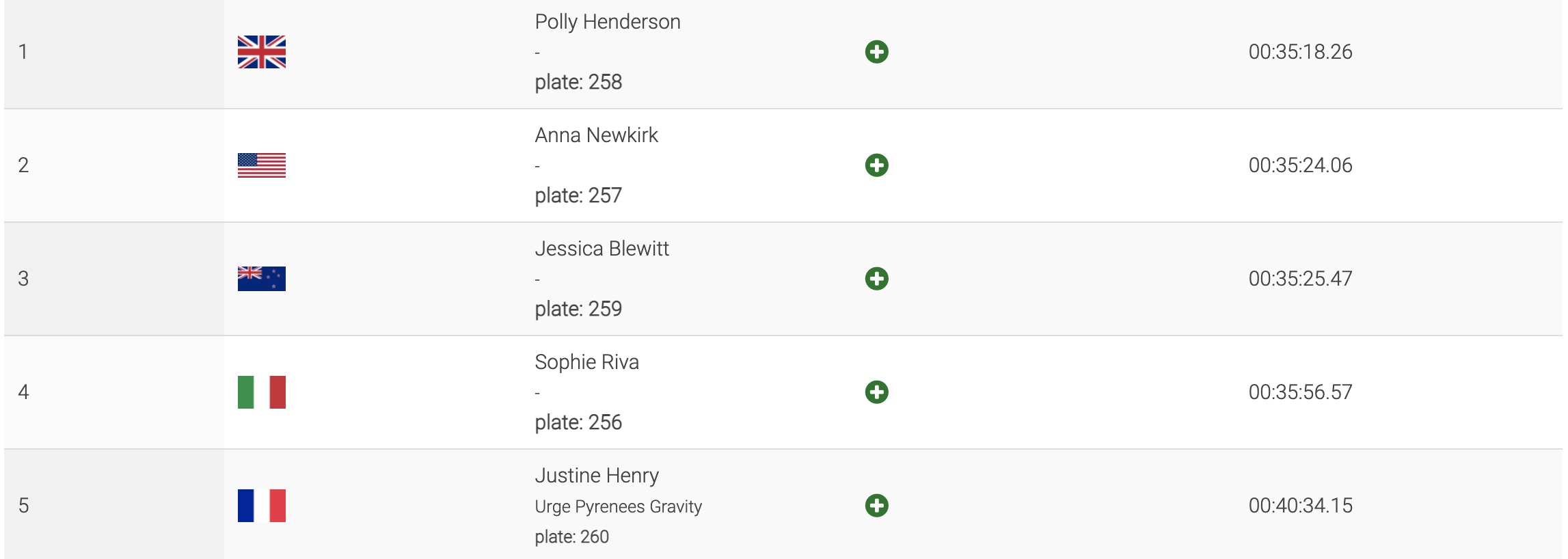 Katy Winton entame plutôt bien sa première saison en tant que « privateer » : 6e place pour la Britannique ! Elle devance Caro Gehrig (7e), Ella Connoly (8e), Harriet Harnden (9e et le scratch dans la SP3) et Rae Morrison (10e).
