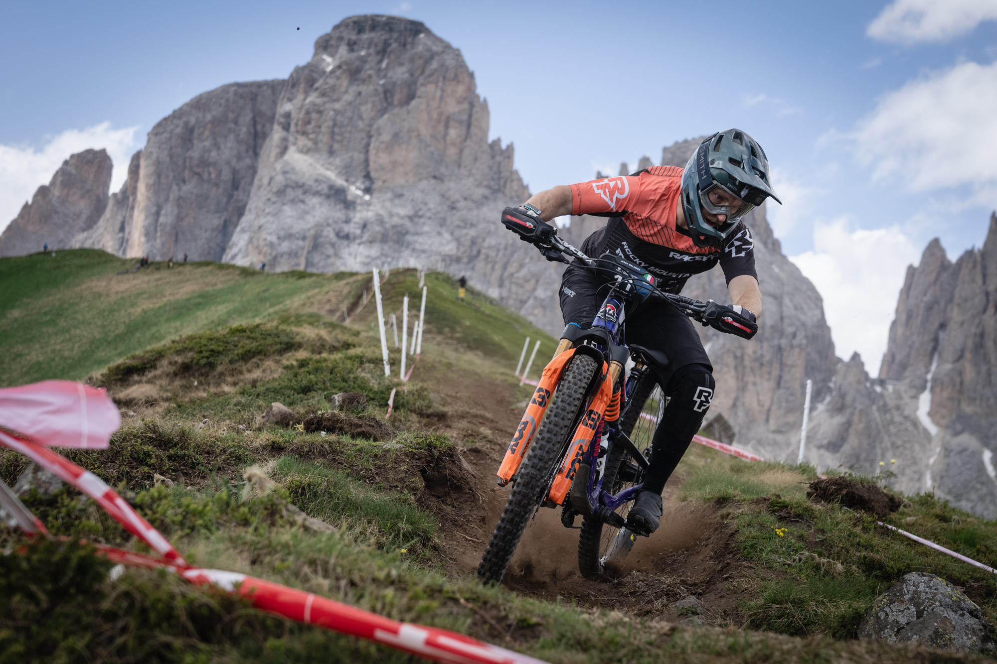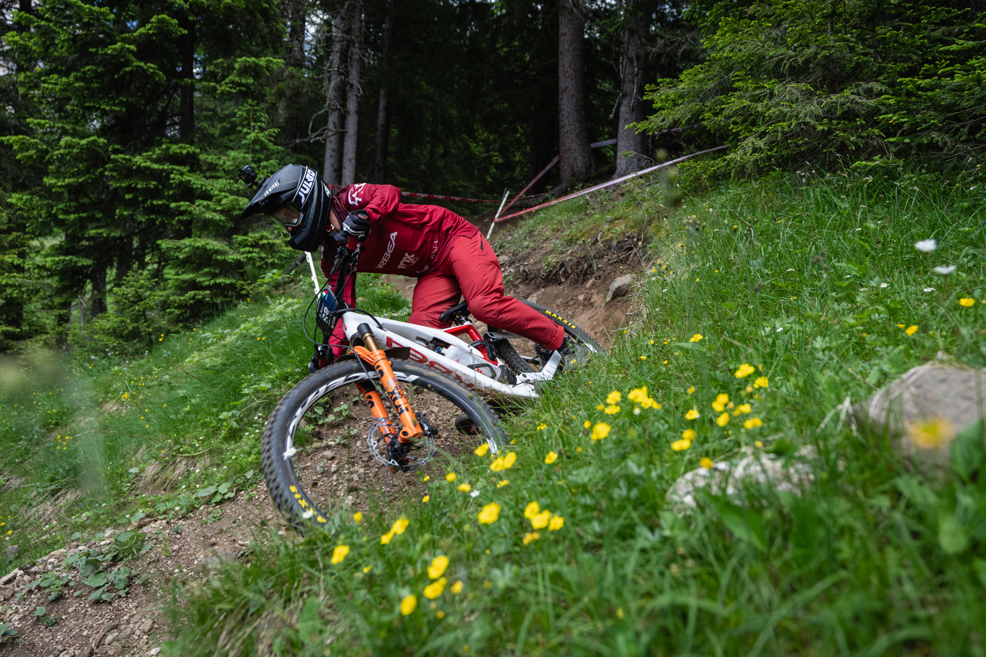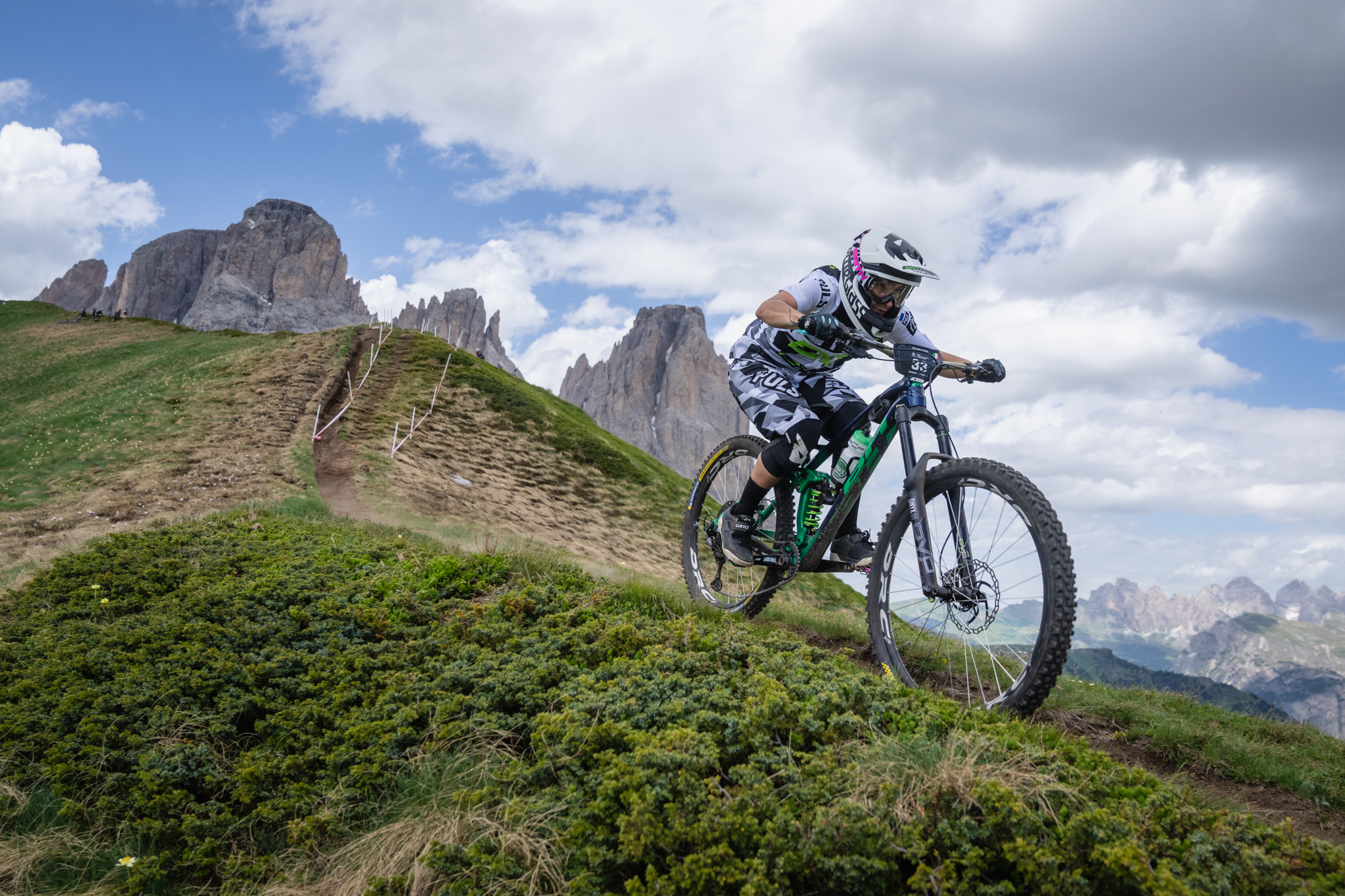 Pas vraiment le temps de se reposer à Val di Fassa, dans les Dolomites : une première course mercredi, la Pro Stage hier après-midi pour lancer la 2e manche des EWS, et trois spéciales au programme ce samedi ! Seulement 3 ? Oui, il devait pourtant y en avoir 4 aujourd’hui (les mêmes que mercredi) en plus de la Pro Stage de ce vendredi. Mais les organisateurs ont décidé de faire sauter Titans, théâtre de la Pro Stage hier et qui devait également conclure la course aujourd’hui. Cet honneur reviendra finalement à Tutti Frutti (6,5km et quasi 1000m de D-), comme mercredi, un sacré morceau où toute erreur ou casse mécanique peut se payer très cher… Autre changement, la très longue montée en milieu de SP3 (plus d’une minute) qui n’était pas au goût de tous est désormais neutralisée : le chrono s’arrêtera avant la côte et sera relancé après.