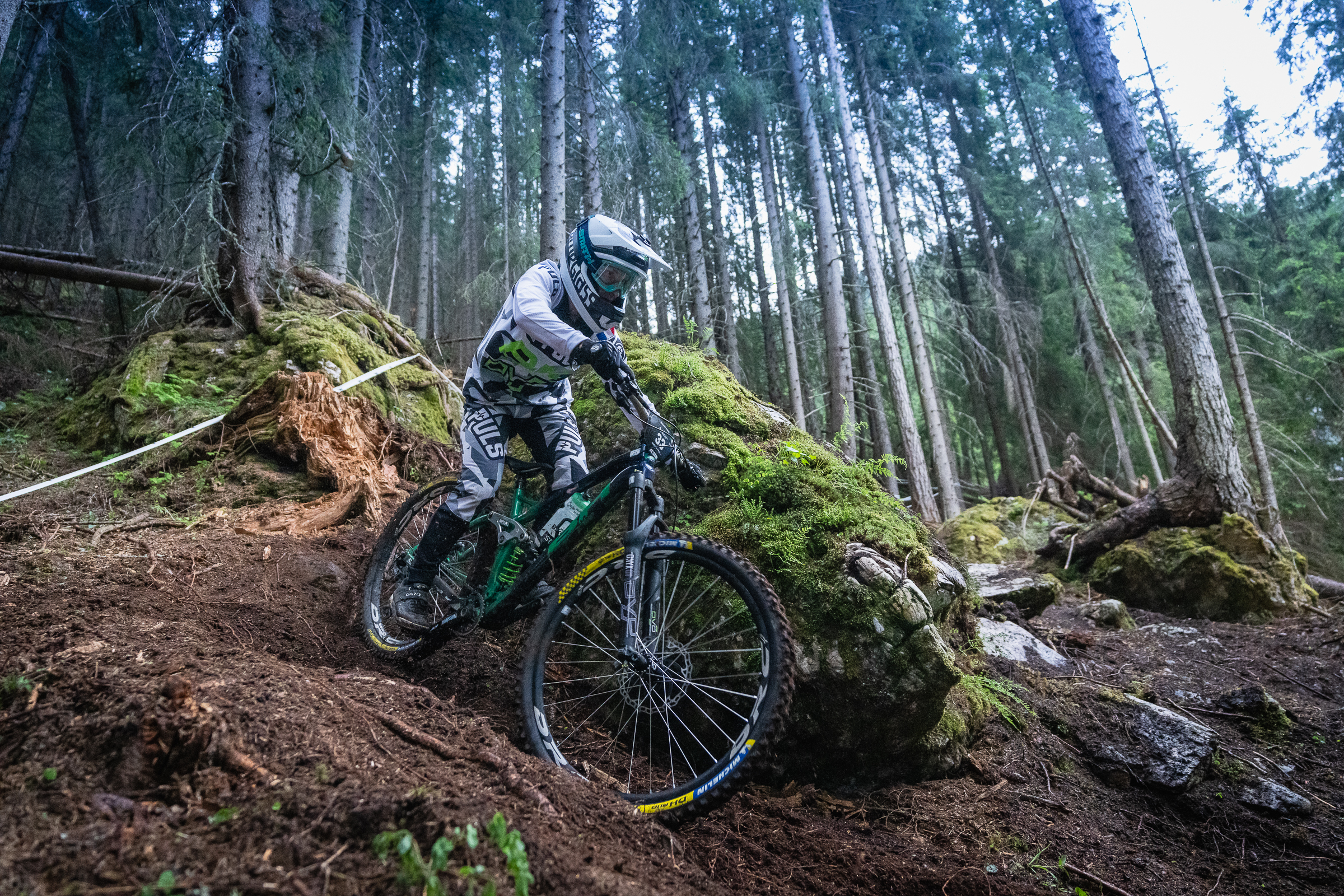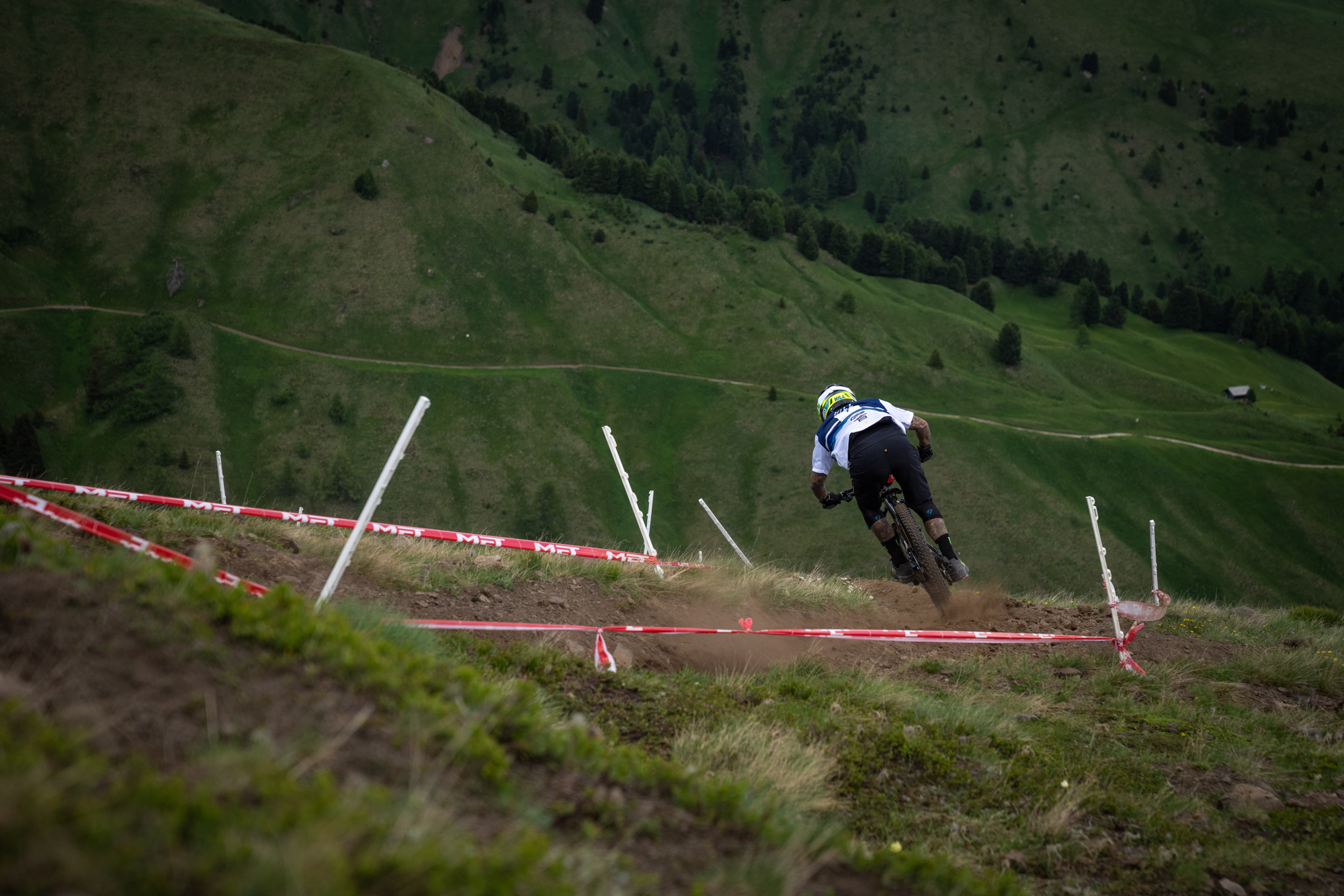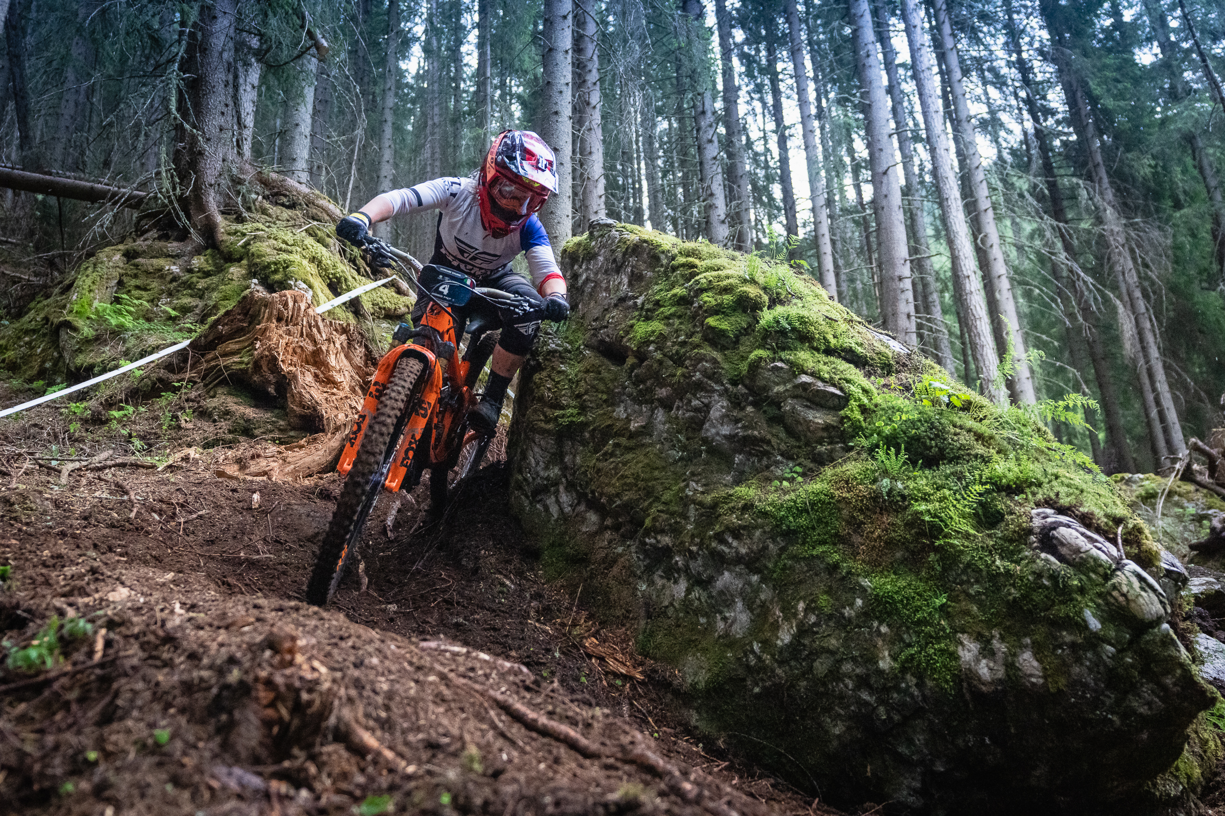 Pas vraiment le temps de se reposer à Val di Fassa, dans les Dolomites : une première course mercredi, la Pro Stage hier après-midi pour lancer la 2e manche des EWS, et trois spéciales au programme ce samedi ! Seulement 3 ? Oui, il devait pourtant y en avoir 4 aujourd’hui (les mêmes que mercredi) en plus de la Pro Stage de ce vendredi. Mais les organisateurs ont décidé de faire sauter Titans, théâtre de la Pro Stage hier et qui devait également conclure la course aujourd’hui. Cet honneur reviendra finalement à Tutti Frutti (6,5km et quasi 1000m de D-), comme mercredi, un sacré morceau où toute erreur ou casse mécanique peut se payer très cher… Autre changement, la très longue montée en milieu de SP3 (plus d’une minute) qui n’était pas au goût de tous est désormais neutralisée : le chrono s’arrêtera avant la côte et sera relancé après.