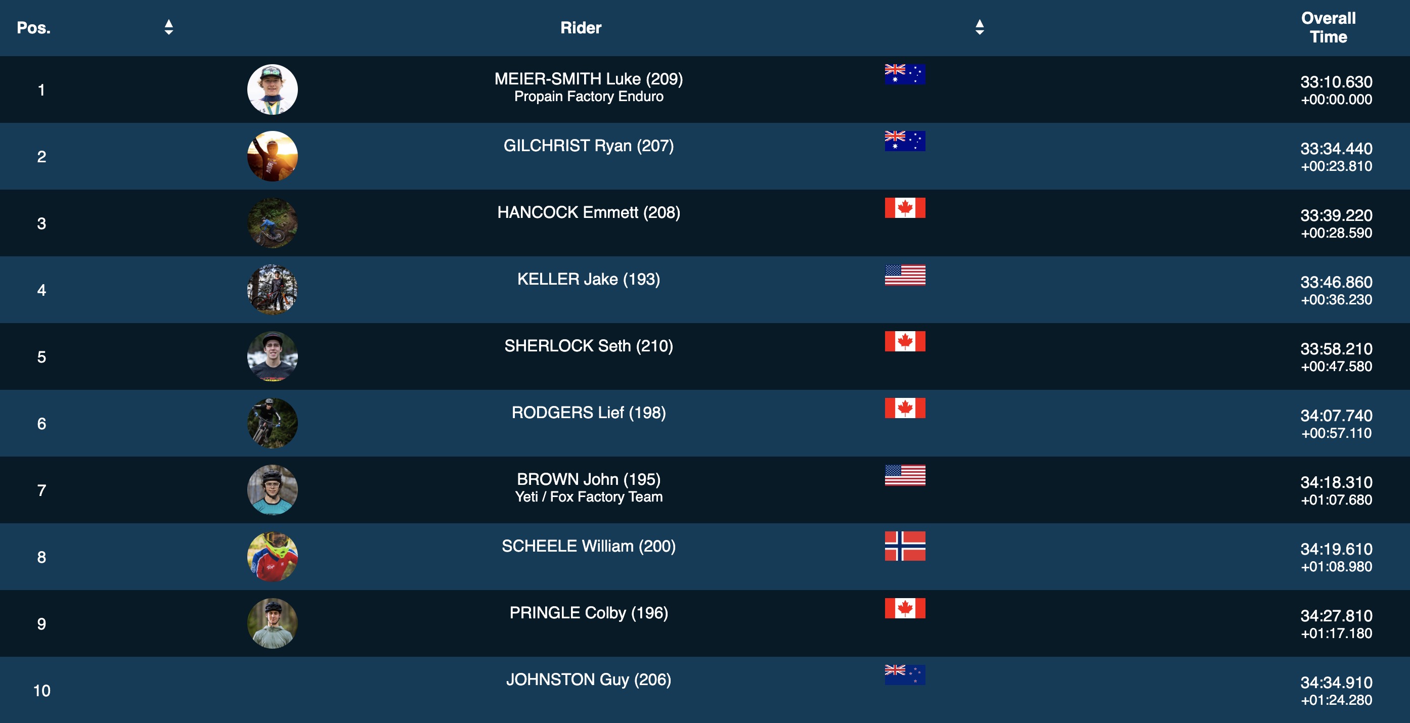 Alors qu’il avait mené la course de bout en bout à Whistler, Jesse Melamed doit cette fois se contenter de la 3e place sur le podium, à 23 secondes du vainqueur du jour.