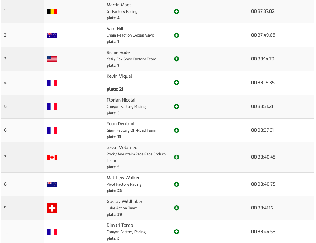 Finalement 5e après une belle remontée et une 5e place dans la Queen Stage, Florian Nicolaï n’a rien pu faire face à un Hill hyper régulier, non seulement en deuxième moitié de saison mais aussi sur cette course. Le Français se fait chiper sur cette ultime manche la première position du classement qu’il avait occupée en continu depuis que Martin Maes s’était vu retirer deux de ses trois victoires du début de saison. Nicolaï n’a pas démérité pour autant et termine à une belle 2e place finale !