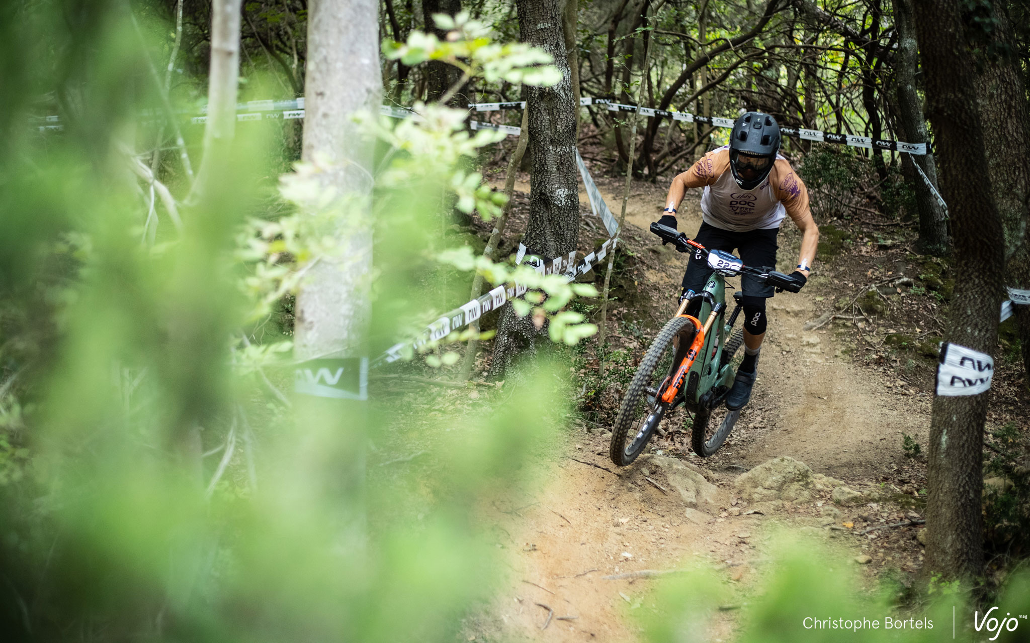 Championne du monde d’e-bike en 2021 et 2022, Nicole Goeldi montre qu’elle est également capable de performer dans un format enduro et prend la 7e place.