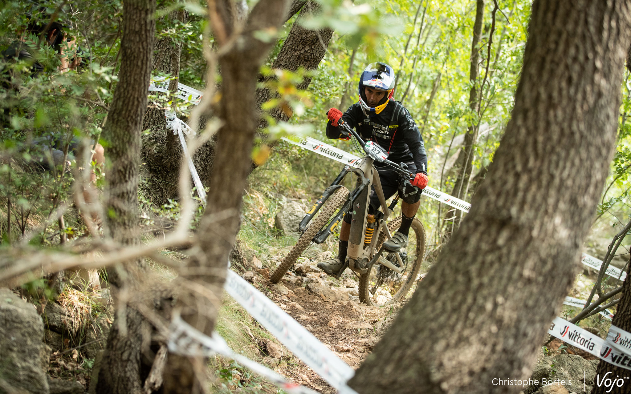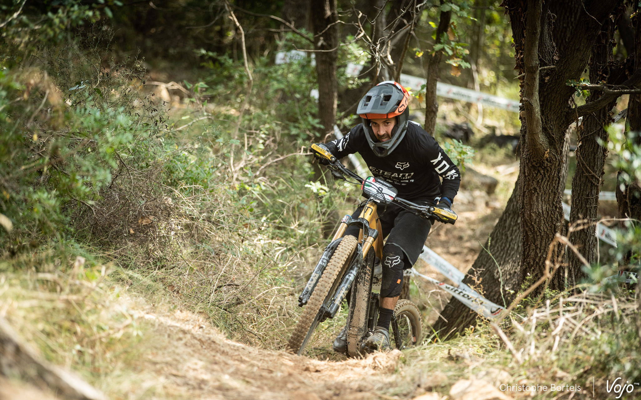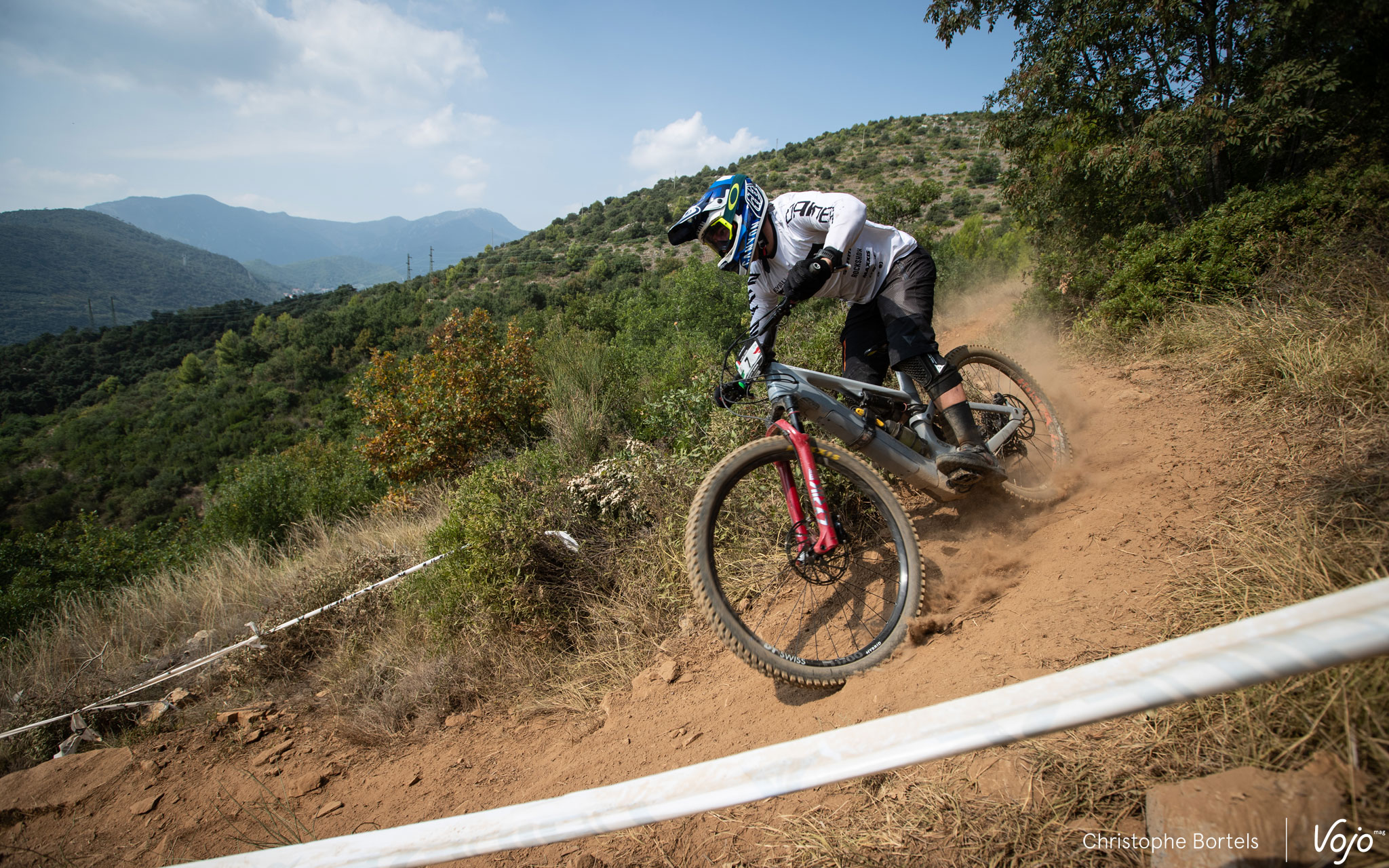 On attendait avec impatience le mano a mano entre Yannick Pontal, vainqueur surprise de la première manche à Zermatt, et son co-équipier chez Lapierre Nicolas Vouilloz, légende vivante de la descente et récemment sacré champion de France e-bike d’enduro. Eh bien, la bataille tant attendue n’aura finalement duré que 3 spéciales…