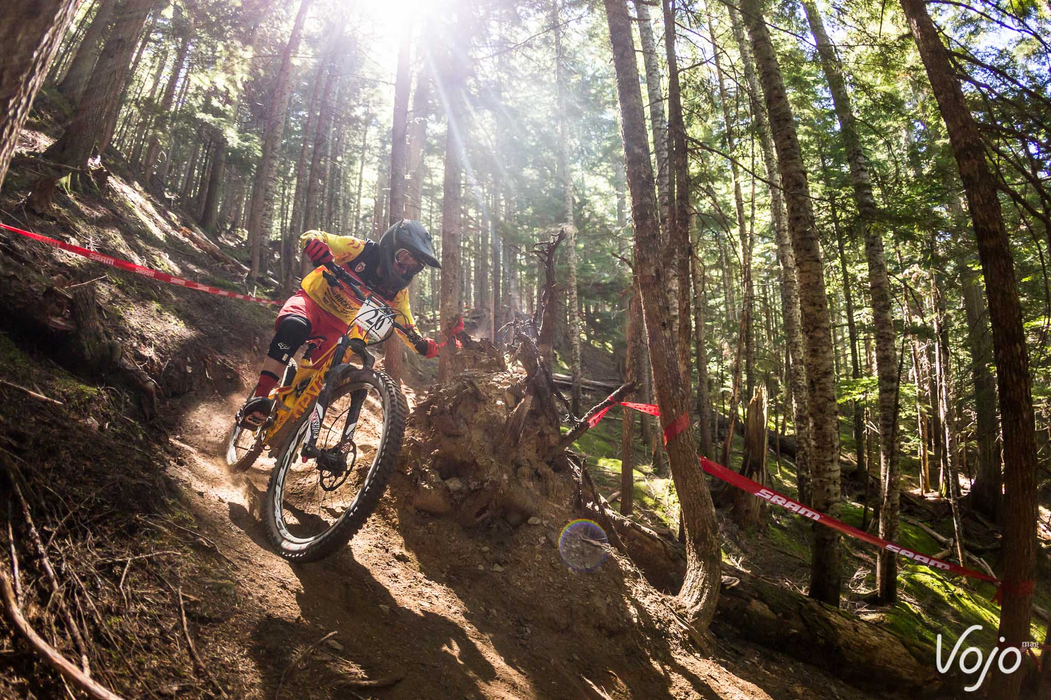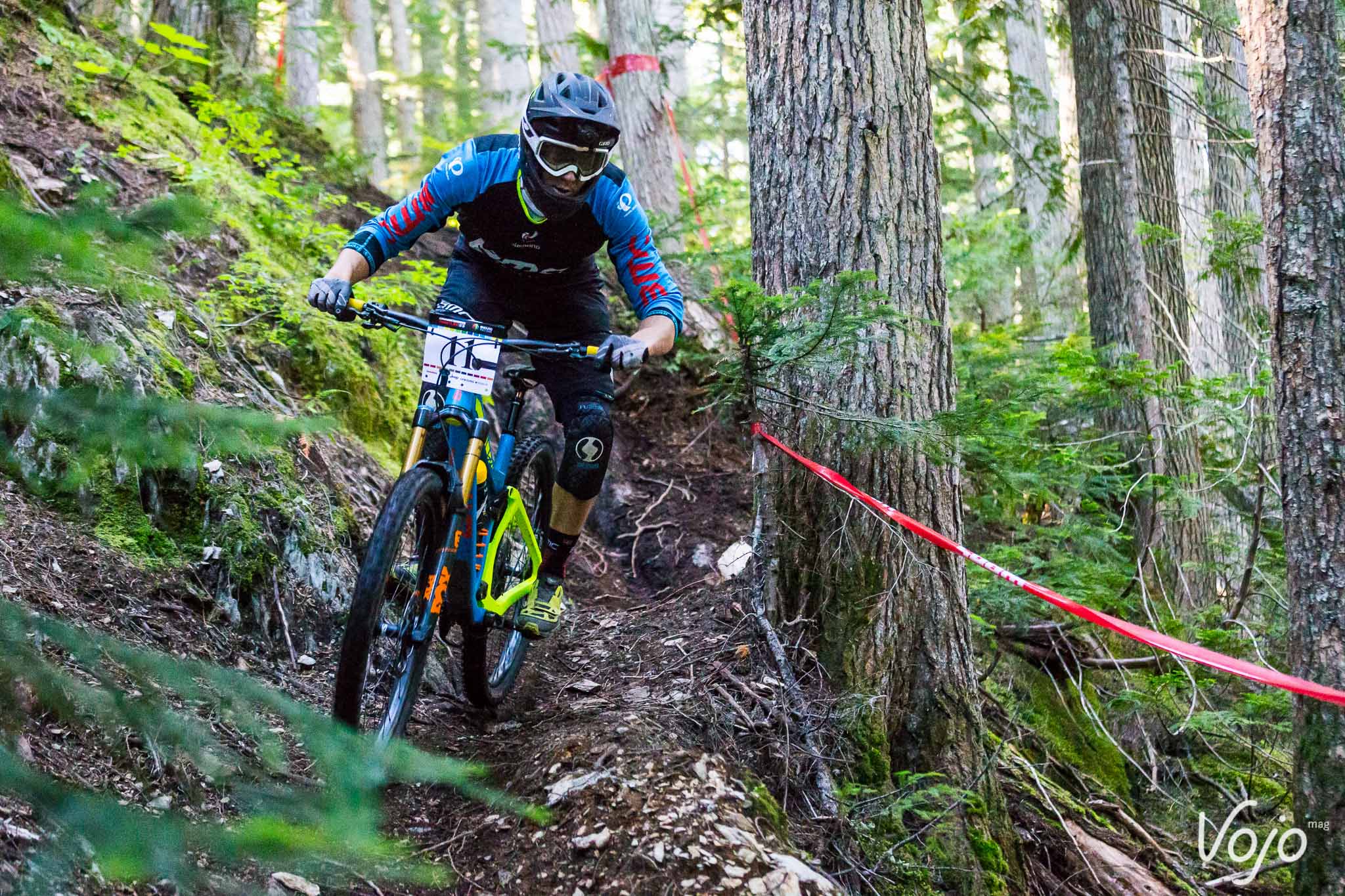 Il y a une bonne grosse portion de pédalage pour arriver au au départ de la seconde spéciale ou un classique de Whistler attend les pilotes : Crazy Train. La piste a été retravaillée en 2014 et comporte quelques portions de pédalage dans la terre bien meuble qui a rendu Whistler célèbre. Cette spéciale est la plus courte du jour avec « seulement » 1,7km de long pour 368m de dénivelé négatif.