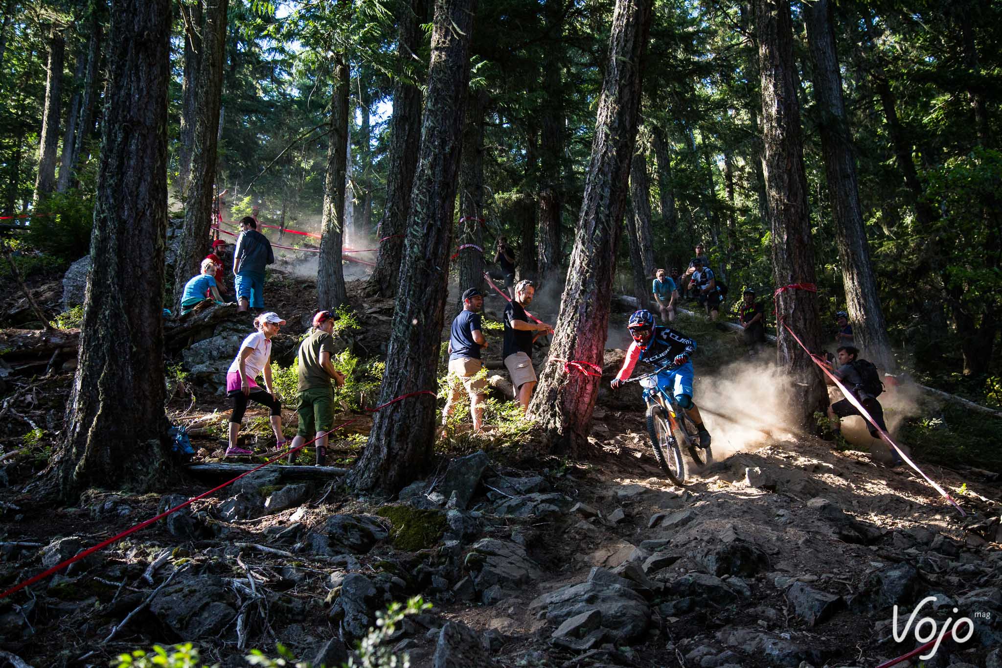 Sur les tracés, les amateurs s’élancent en premier avant de laisser la places aux pilotes de moins de 21 ans, puis aux Dames et enfin aux pilotes Elite Hommes. Les tracés de cette étape des EWS mêle grands classiques du bikepark et traces fraîches. Les trails de Whistler étaient particulièrement secs ce week-end après de longues journées sans pluie.