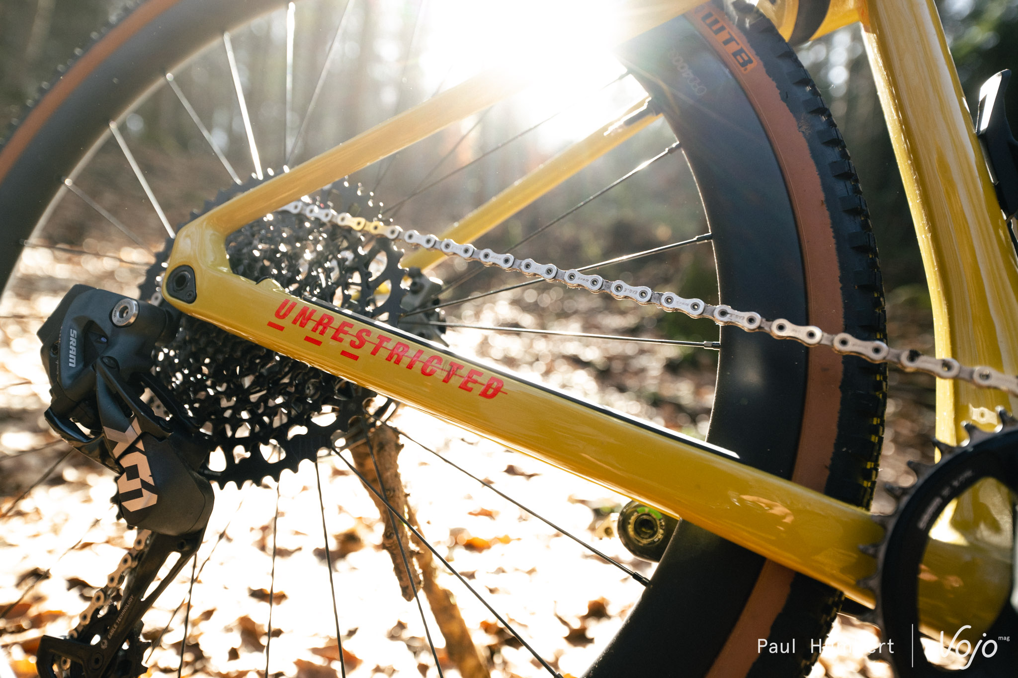 Enfin, côté équipement les deux vélos partagent un certain nombre de choses. La transmission par exemple, en 1×12 sur le Kaius et l’Urs LT. Le premier a toutefois droit à un groupe « gravel » Sram XPLR avec plateau 40 dents et cassette 10-44 tandis que le second utilise un groupe Sram Eagle de VTT avec des rapports qu’on a déjà vus en coupe du monde de XC : plateau 38 dents et cassette 10-52.