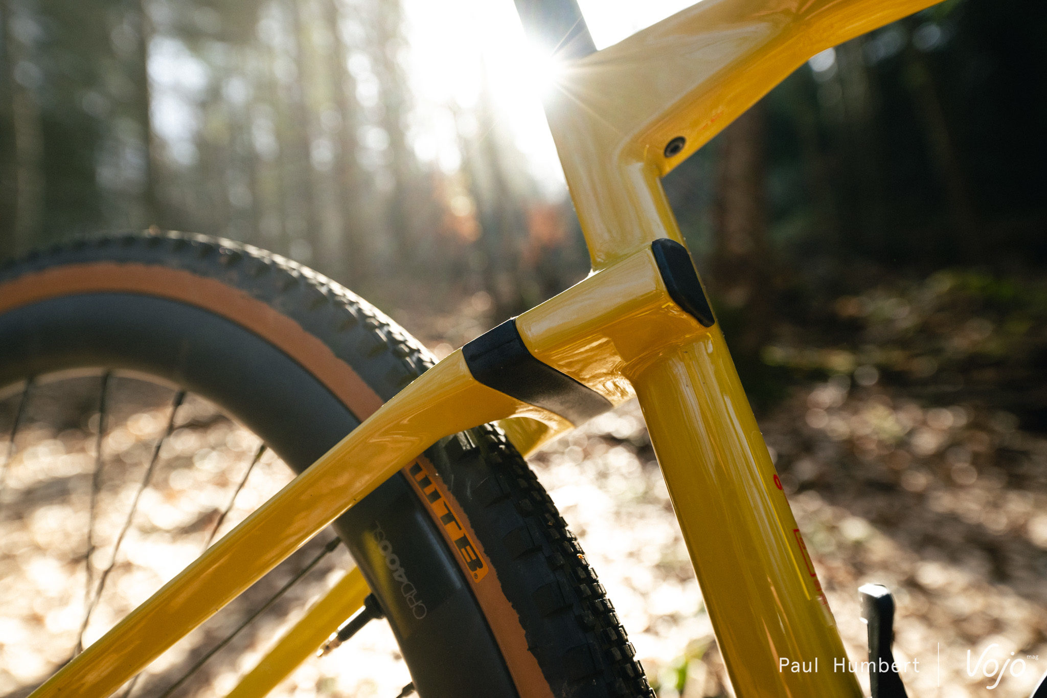 Le Kaius est le premier à passer et sur le bitume du début de parcours, il nous donne tout de suite le sourire : ça va vite ! On file sans effort et la première montée est effacée en un clin d’œil. Au-delà de la vitesse, ce sont surtout les sensations qui séduisent. C’est rigide, dynamique, l’effort est bien retransmis et le vélo fait bien sentir qu’il est prêt à accélérer quand on le souhaite.