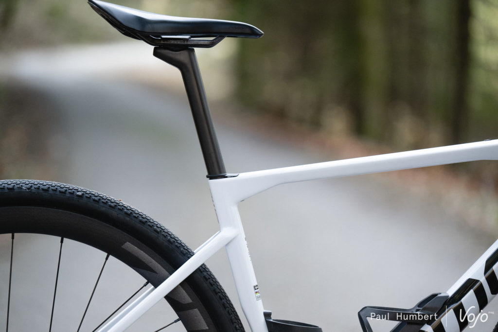 Sur le Kaius, rien de tout ça bien sûr. Conçu pour la vitesse sur les chemins roulants, le vélo ne peut compter que sur le travail réalisé autour du cadre et sur le carbone pour offrir un peu de confort. Cependant, on verra sur le terrain qu’il a des arguments intéressants en la matière…