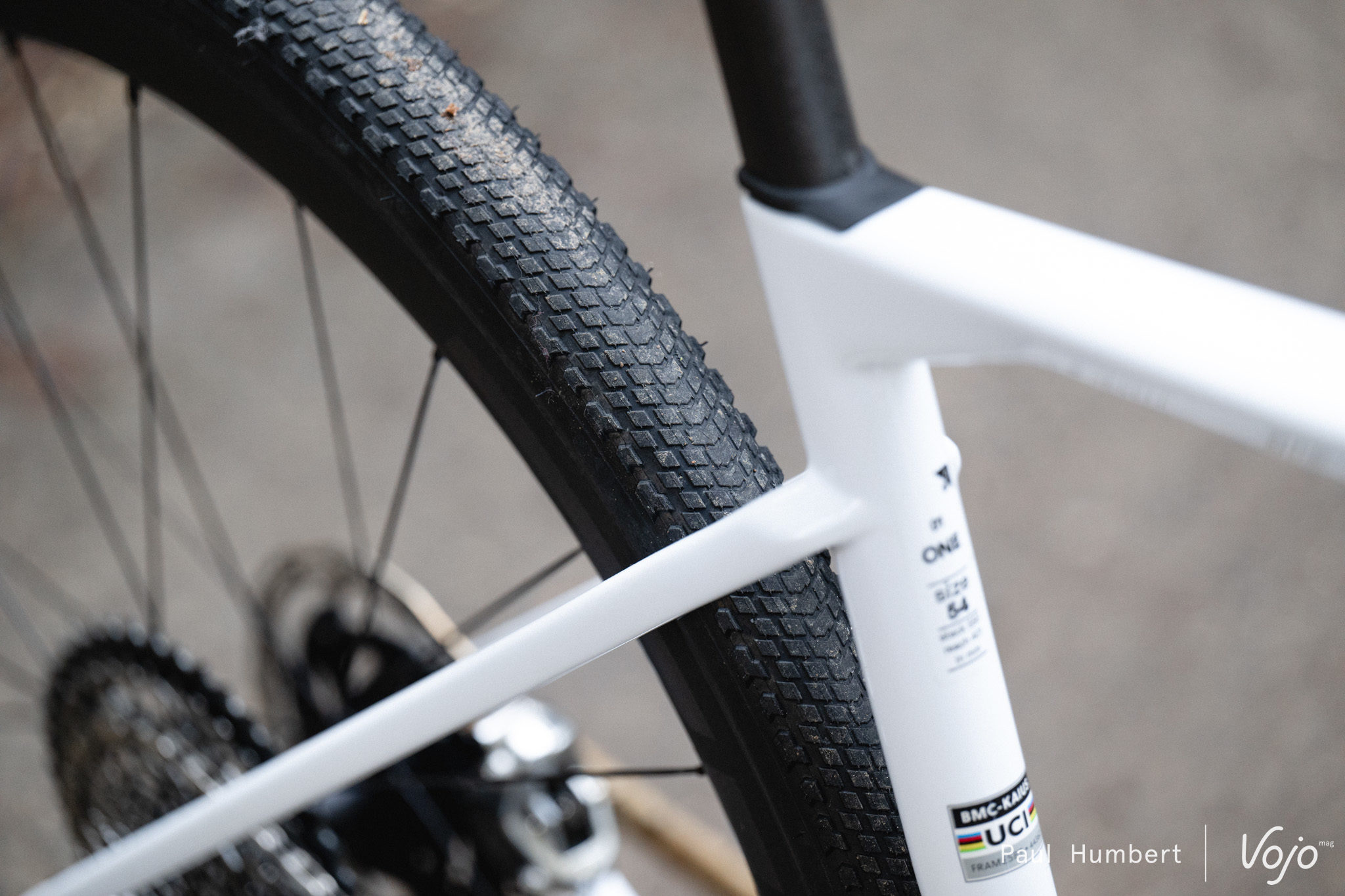 Le Kaius, c’est le gravel « performance » de BMC, celui taillé pour rouler vite et affronter les parcours des compétitions UCI (quoi qu’on pense de ce format). Rien qu’à le regarder, on a envie d’appuyer sur les pédales ! D’ailleurs, il paraîtrait presque incongru de vouloir le sortir des routes goudronnées tant il ressemble à un vélo de course. Pourtant, on vous assure qu’il s’en sort très bien et il nous a même surpris plus d’une fois.