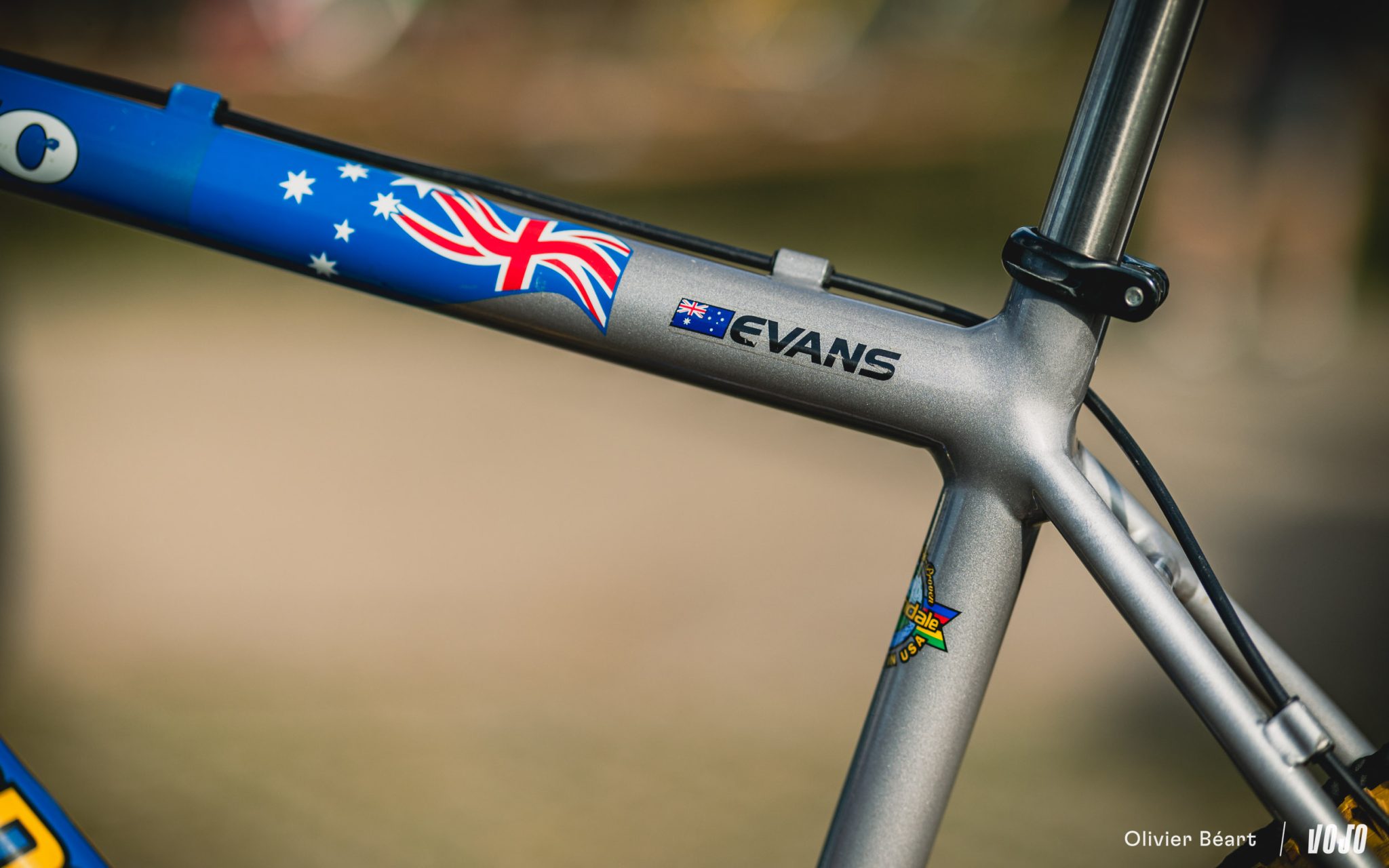On termine avec un vélo tout à fait exceptionnel… puisqu’il n’a été produit qu’à deux exemplaires ! Ce cadre a été soudé à partir d’un mélange de tubes de vélos de route (triangle avant) et de VTT (arrière). Chez Cannondale, les générations de cadre alu sont nommées par l’acronyme CAAD, suivi d’un chiffre qui désigne chaque génération. Jusque-là, le team et les VTT haut de gamme de la marque en étaient au CAAD5, mais la route était déjà passée au CAAD6, avec des tubes plus légers. En prévision des Jeux Olympiques de 2000, Cannondale a voulu proposer un CAAD6 à ses coureurs, Alison Sydor et Cadel Evans. Si la représentante féminine a validé ce cadre et l’a couru à Sydney, le puissant Cadel Evans l’a jugé trop souple et a préféré rester sur son CAAD5 !