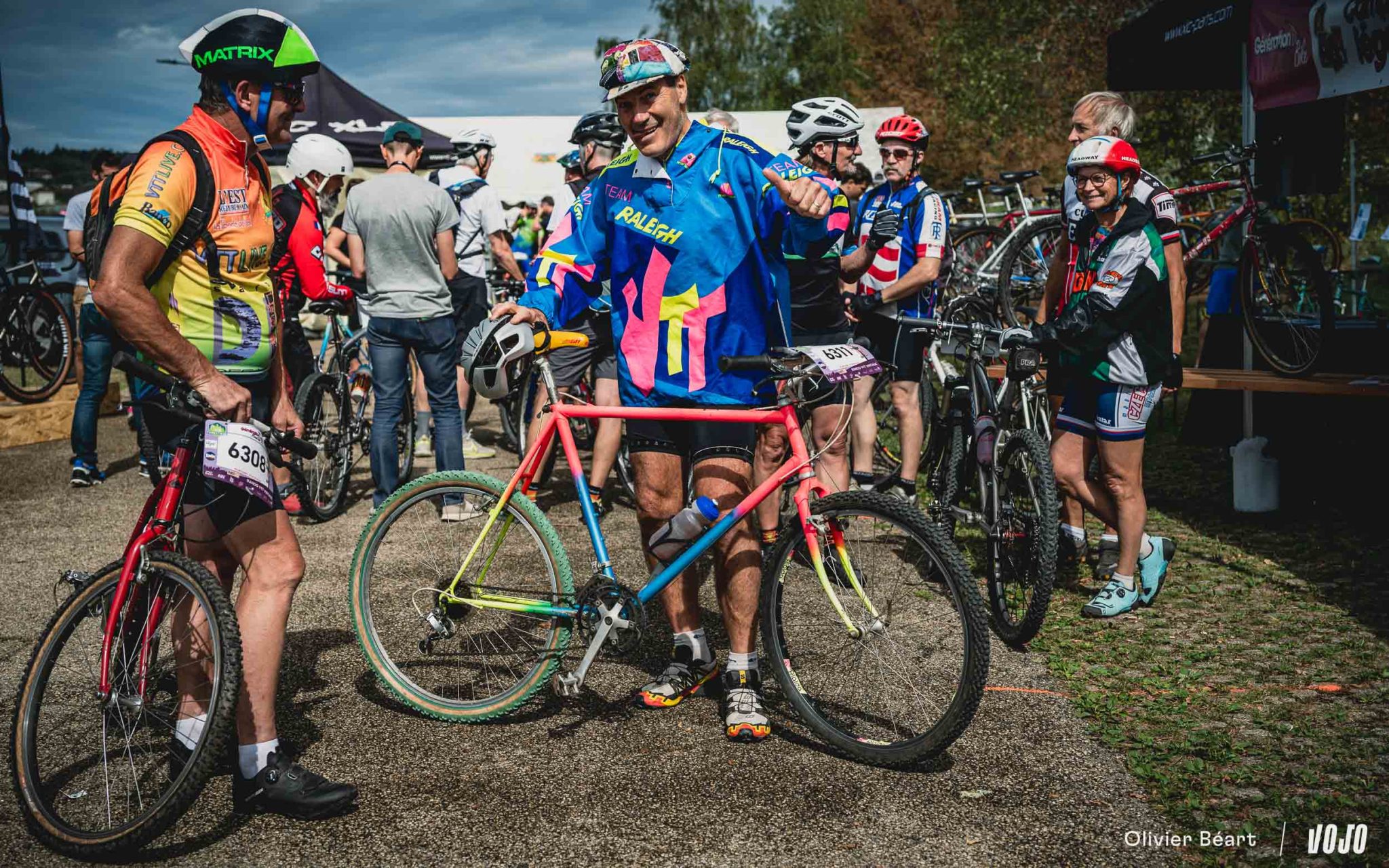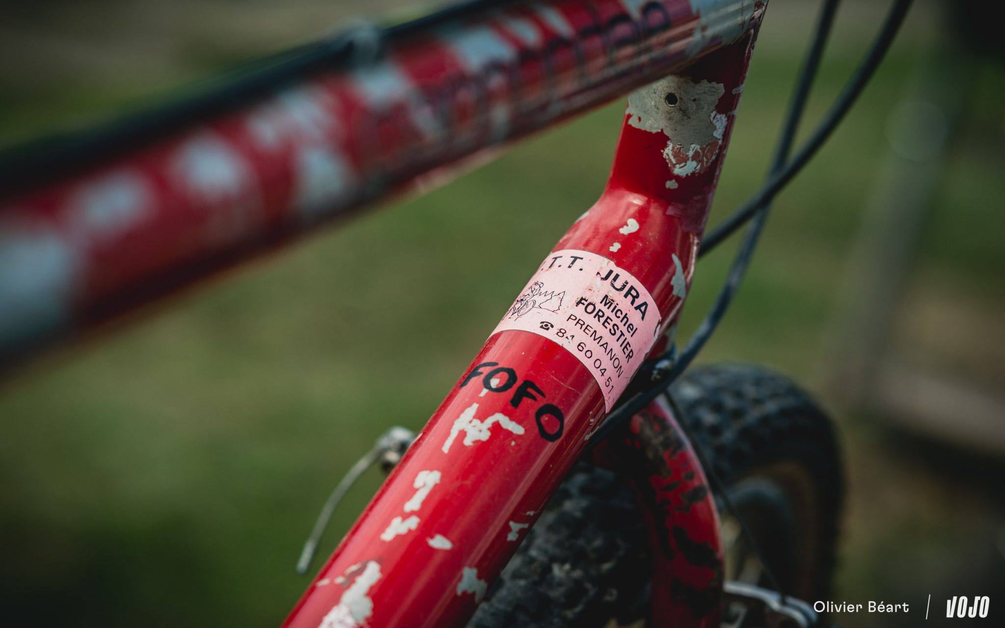 Fidèle parmi les fidèles de la Forestière, dont il est le recordman de victoires (7 titres), Thomas Dietsch continue de se rendre chaque année dans le Jura à l’occasion de l’événement. Il y vient aujourd’hui pour filmer la course au guidon de son e-bike Bulls, mais il en profite toujours pour amener quelques-uns de ses anciens vélos sur le stand de l’expo vintage. Cette année, c’est le Gitane titane prototype avec lequel il a démarré sa carrière qui a été mis à l’honneur !