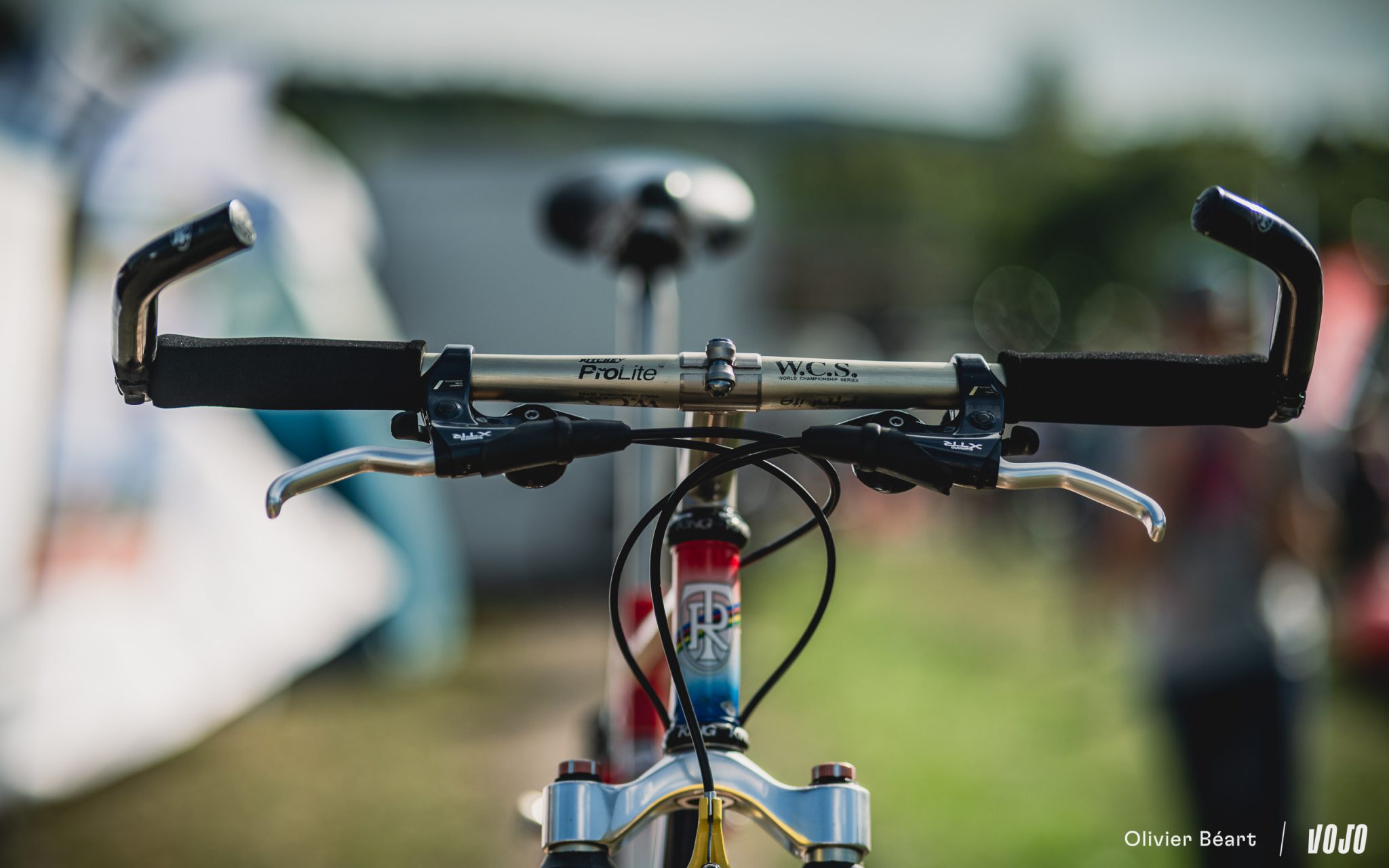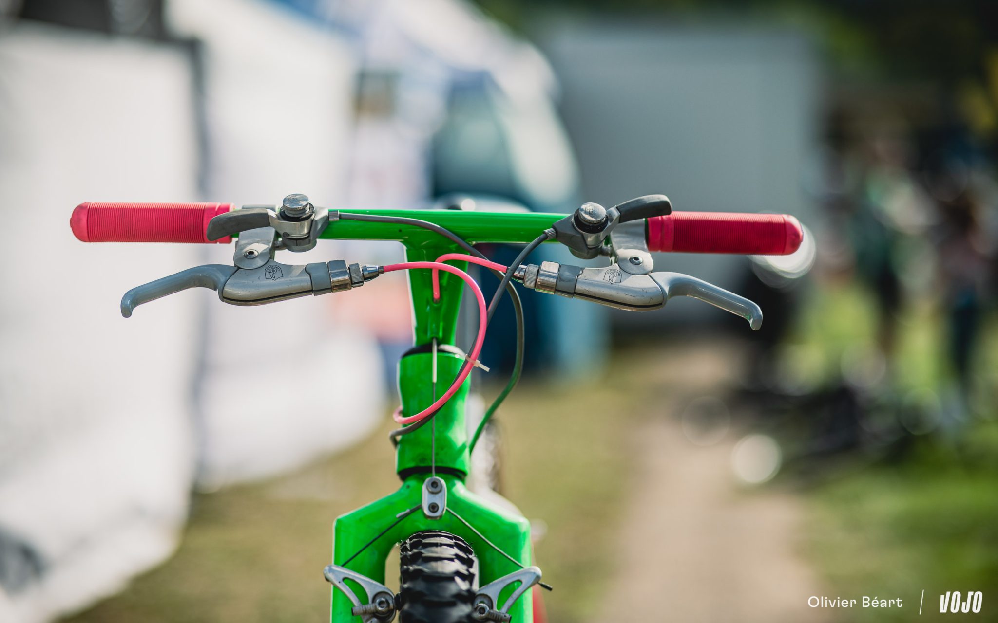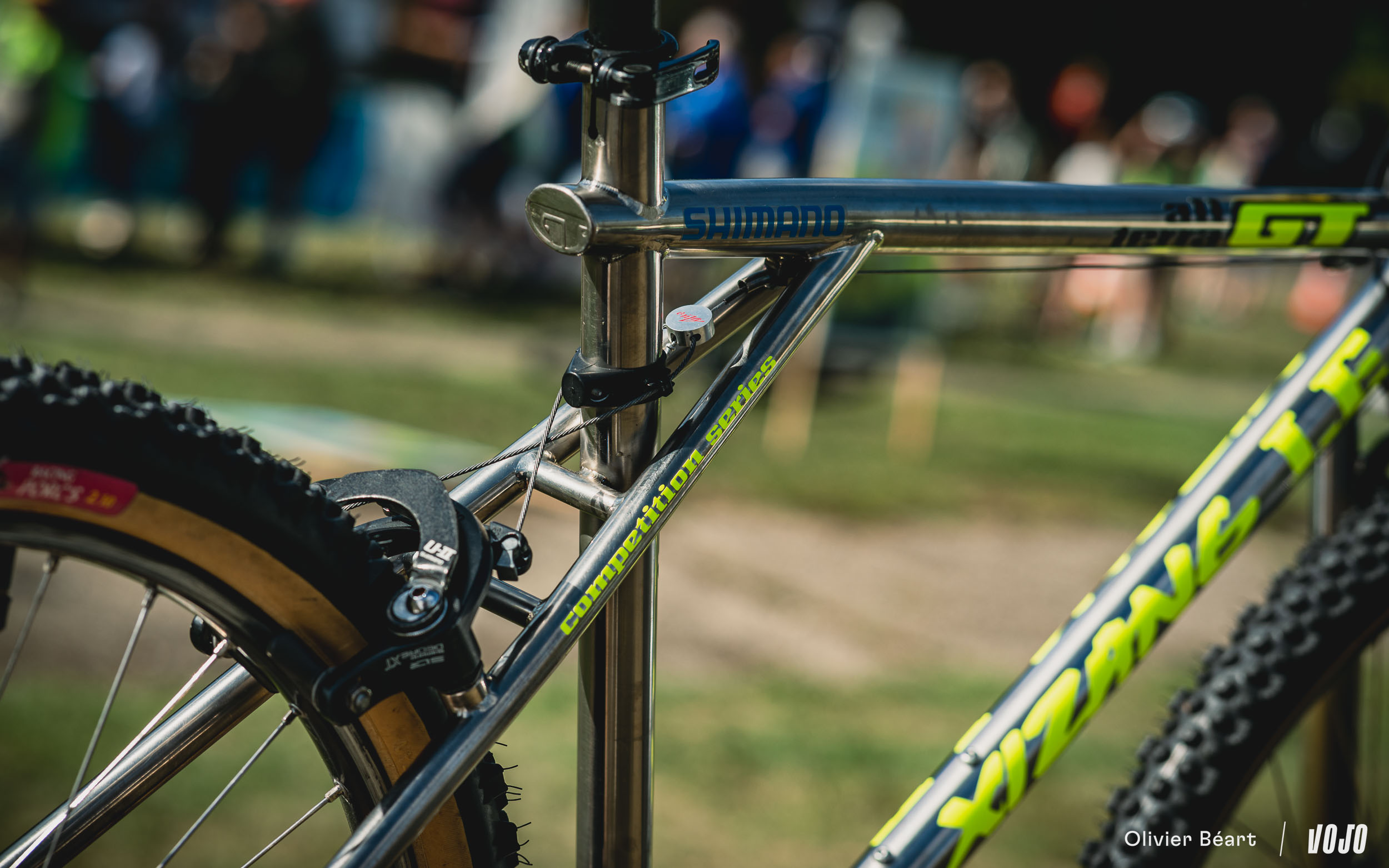 Reçu la veille du début de l’expo Forestière, ce vélo a été monté rapidement avec des composants cohérents, proches de ceux roulés par Sydor et Evans à l’époque, mais pas parfaits. Au cours des prochains mois, ce montage sera raffiné et mis au niveau qu’impose la rareté et le pédigrée de ce vélo ayant appartenu à un coureur aussi mythique que Cadel Evans, qui n’a pas brillé qu’en VTT, mais qui a aussi remporté le Tour de France. Quand le montage sera terminé, nous vous reparlerons de ce vélo et de son histoire !