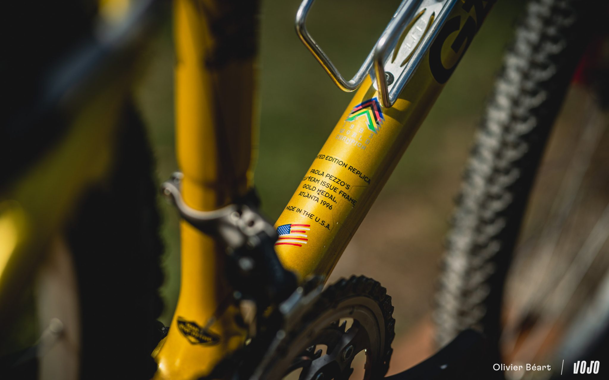 1996 marque l’arrivée du VTT aux Jeux Olympiques, à Atlanta. Le vélo que vous avez sous les yeux est un hommage à la toute première championne olympique, Paola Pezzo. Sur base d’un authentique cadre édition limitée sorti peu après les JO pour commémorer le titre, cette version a été remontée au plus proche du vélo roulé par la championne italienne à l’époque.