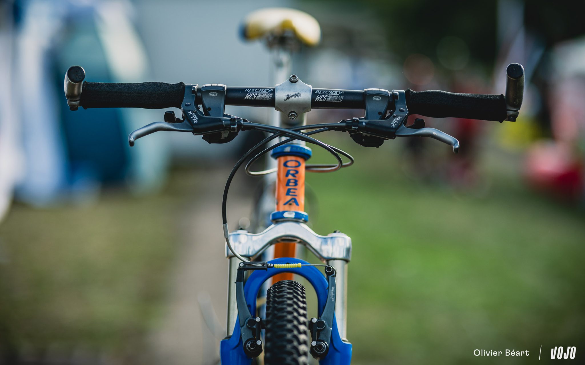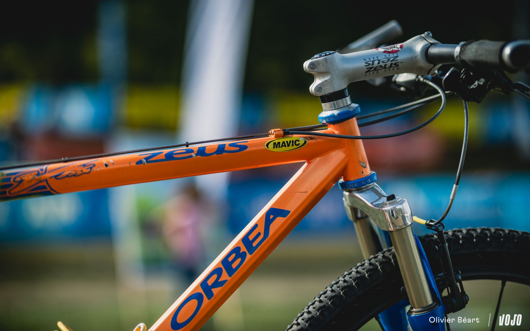 Aujourd’hui, tout le monde connaît Orbea, mais en 1999, ce n’était pas encore le cas ! Pour gagner en notoriété, quoi de mieux qu’un team ? En plus de coureurs espagnols, l’équipe comptait également deux Belges dans ses rangs : David Galle et Patrick Trévisan. Orbea a toujours été très fort en Belgique et ces deux gaillards gagnaient un paquet de courses dans le Benelux et en France, en plus de rouler en coupe du monde. Le vélo montré ici est une authentique machine roulée par Patrick Trévisan qui, s’il n’a pas fait carrière, était un des « gros moteurs » du peloton U23. Julien Absalon a d’ailleurs déclaré à l’époque qu’il était un des seuls coureurs qui lui faisaient vraiment peur… excusez du peu !