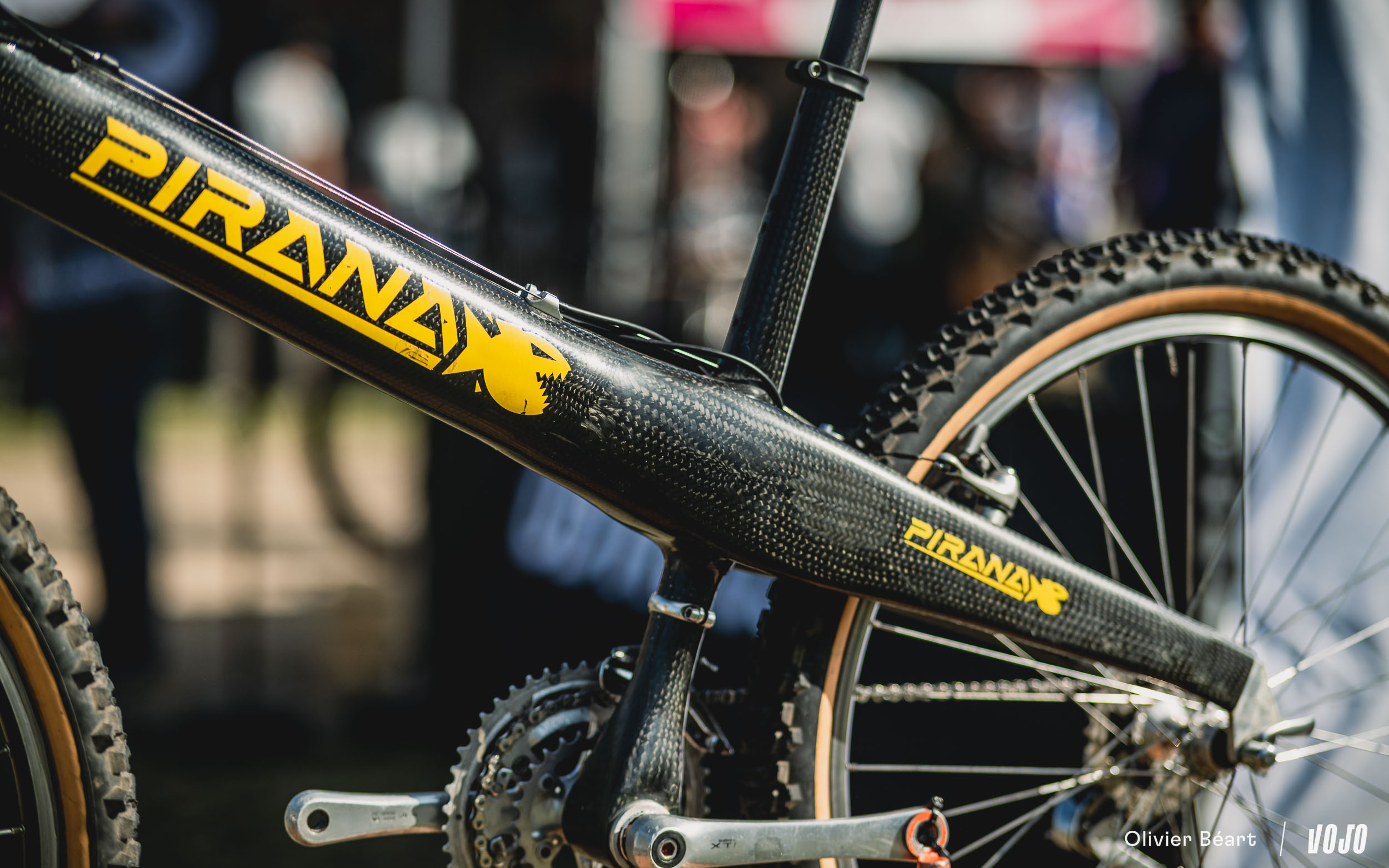 Fabriqué par Ultracraft, entreprise belge active dans le secteur de l’aviation, le Pirana n’a pas été le premier cadre carbone monocoque du marché. Kestrel l’a précédé, tout comme les vélos de l’américain Trimble, avec lesquels les ressemblances sont nombreuses. Mais qu’importe, on est là face à un vélo qui a marqué beaucoup d’esprits dans le Benelux. C’est notamment avec cette machine que Roel Paulissen a démarré sa carrière (durant laquelle il a été double champion du monde marathon et a remporté deux fois le Cape Epic en plus d’une coupe du monde Elite et de trois participations aux JO).