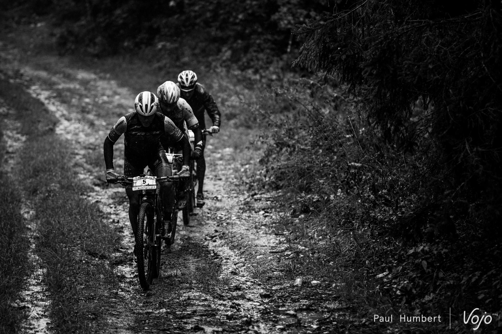 La pluie tombe légèrement mais rien n’arrête les enfants de la « ForestKid » qui se lancent sur une partie du circuit de XCO du lendemain.