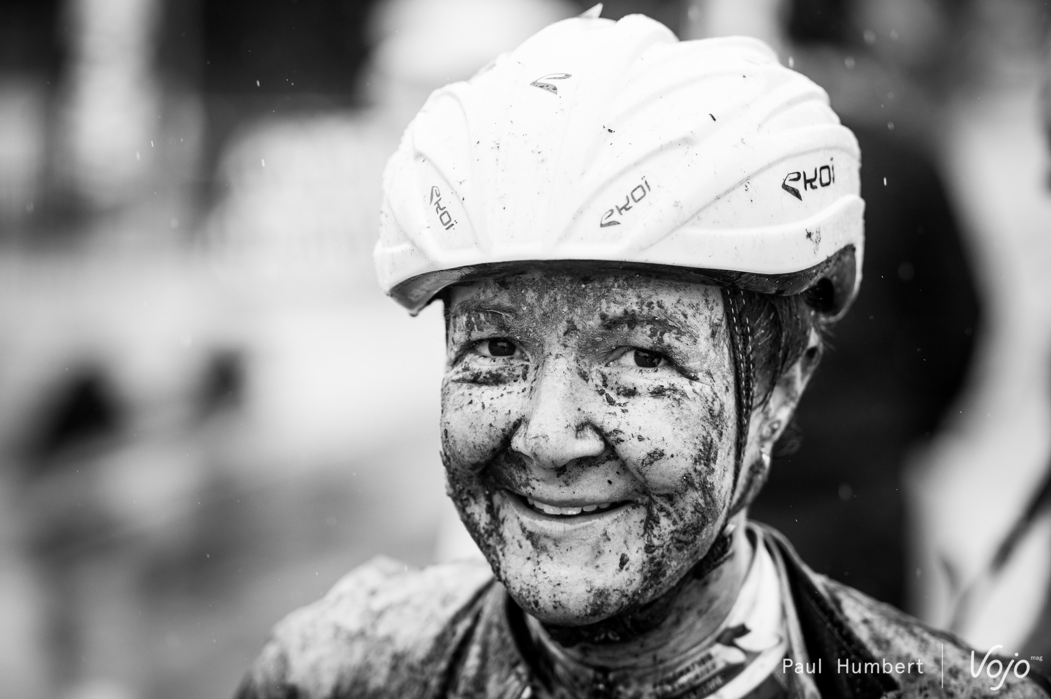 À l’arrivée de la course dame, Hélène Marcouyre arrive tout sourire. Elle remporte une nouvelle Forestière à quelques semaines de la fin de sa carrière sportive.