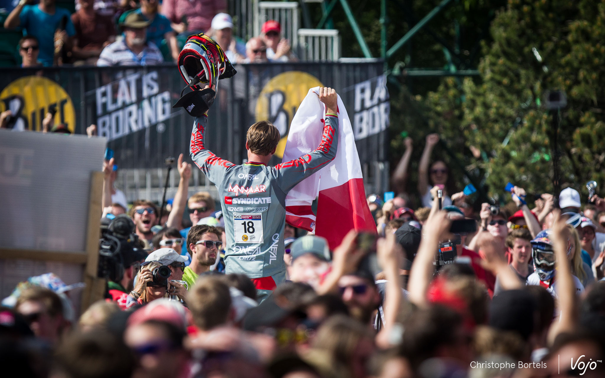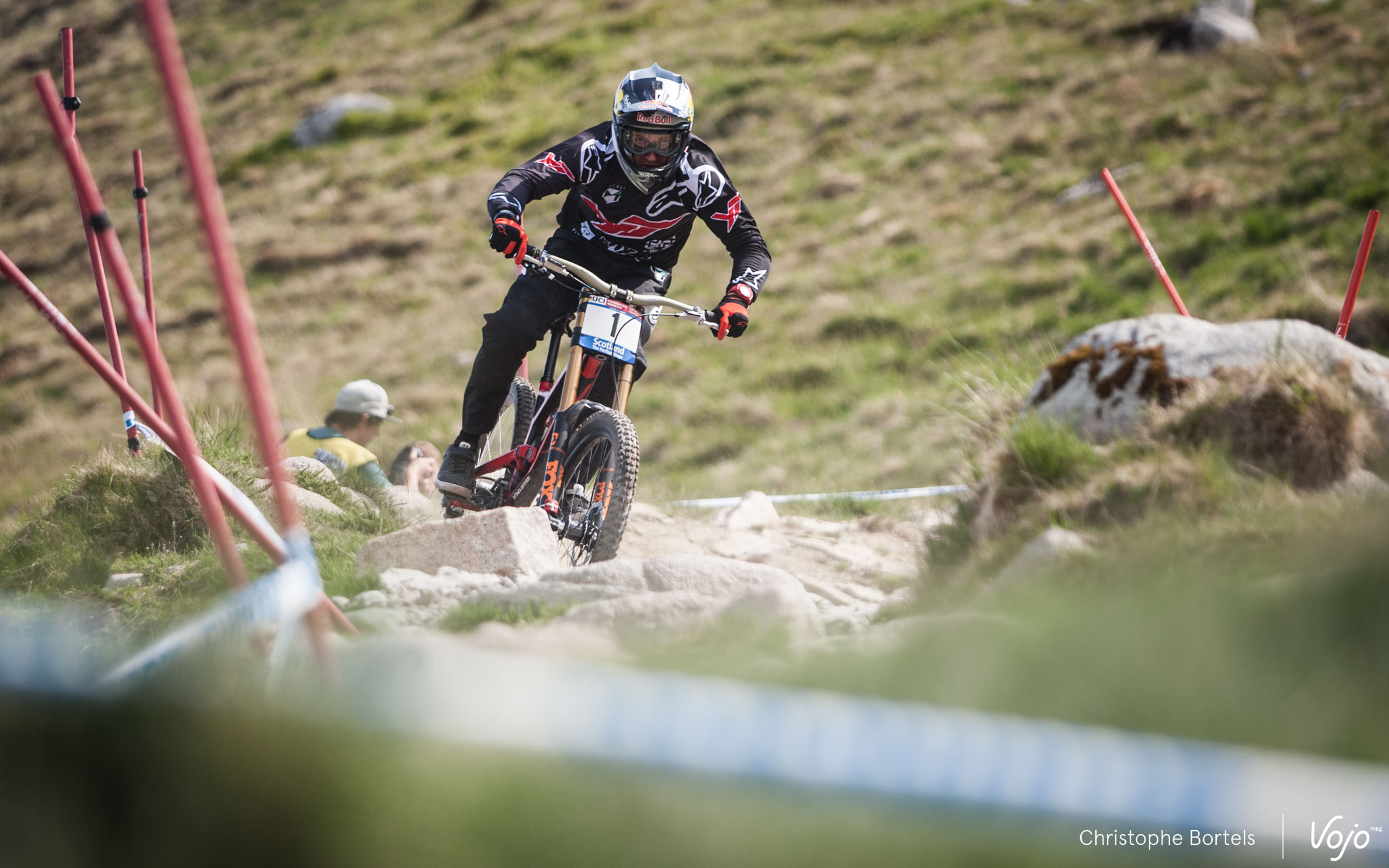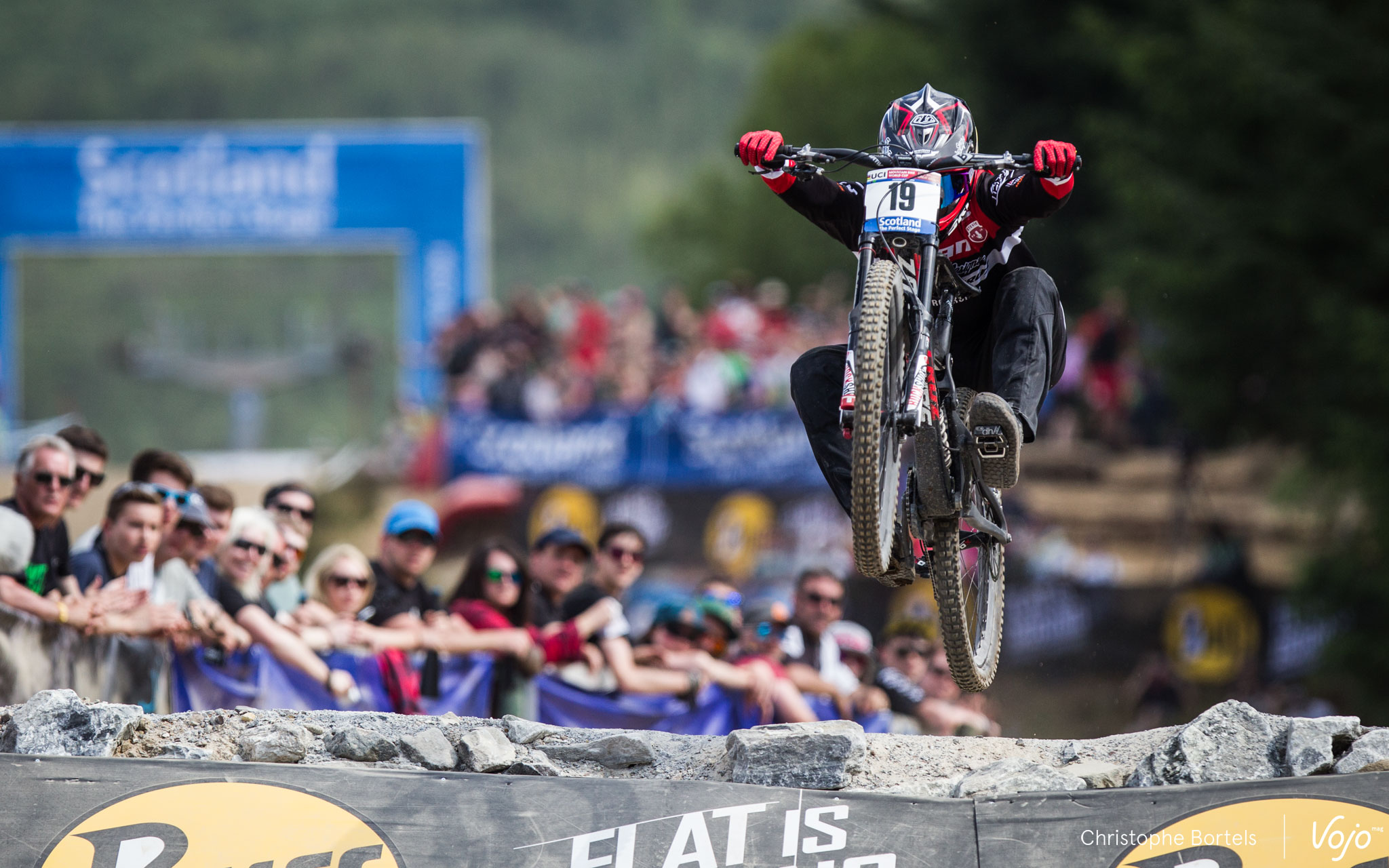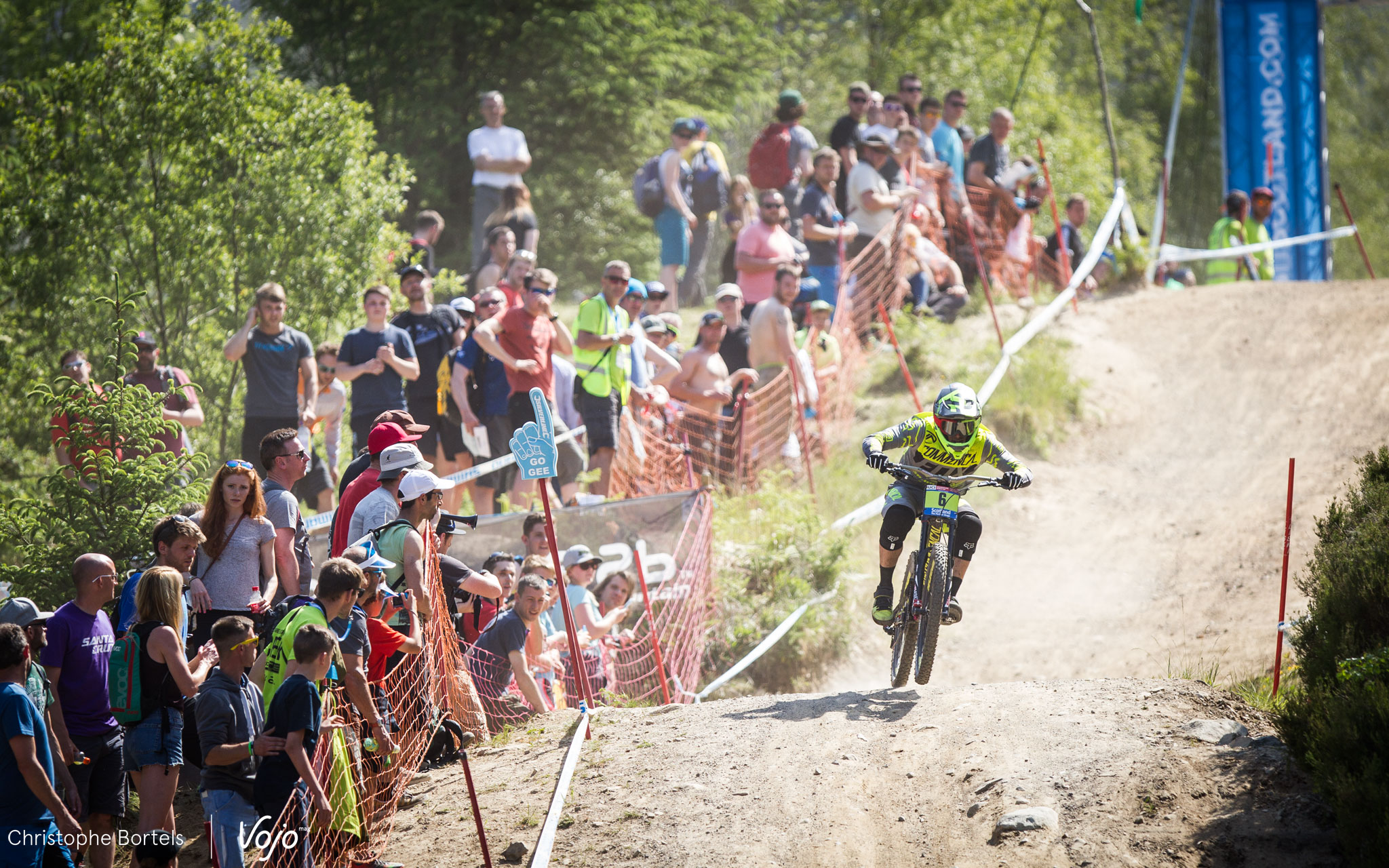 Steve Peat mettra un terme à sa carrière à la fin de cette saison, c’était donc la dernière occasion pour les fans de le voir sur ses terres. Véritable légende de la descente à presque 42 ans, dont plus de 20 (!) passées en coupe du monde, il a eu droit à plusieurs ovations pendant et après la finale. Nos tympans en vibrent encore… On en oublierait presque le meilleur : il termine 29e !