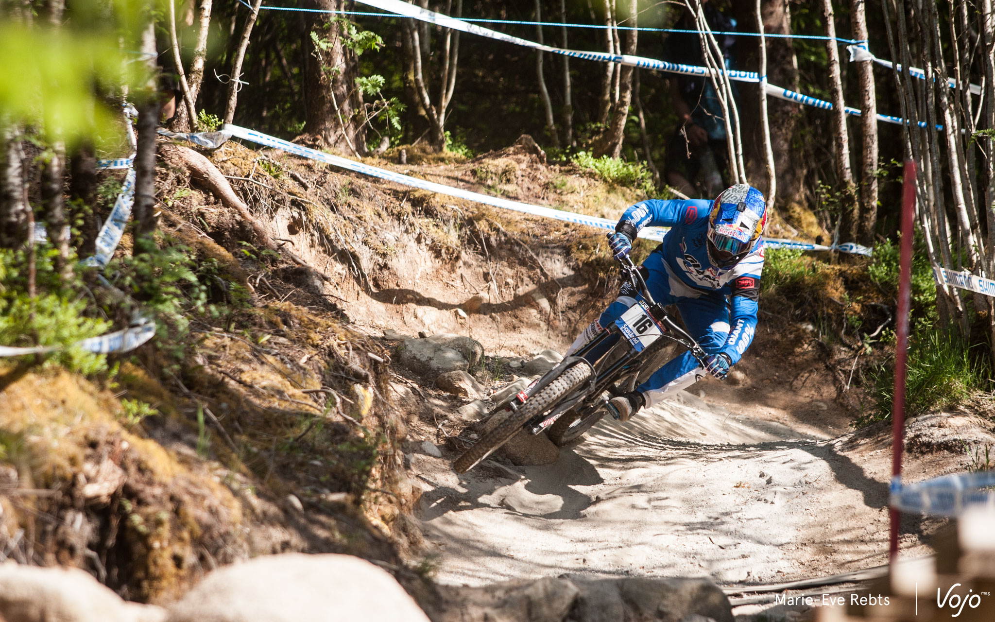 Meilleur temps des qualifs en ayant profité de la chute de Rachel, Manon Carpenter n’a pas su concrétiser en finale. Les trois premiers intermédiaires laissaient présager une belle 2e place, mais une grosse chute en fin de bois lui a fait perdre de précieuses secondes. Elle prend tout de même la 3e place finale, à 20 secondes du temps de référence, et gagne même une position au général.