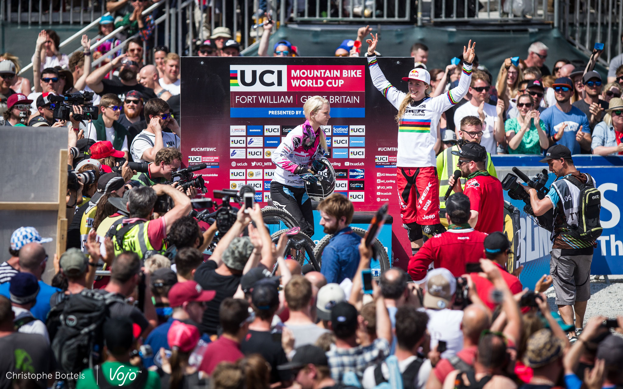 Rachel Atherton n’a plus été battue en coupe du monde depuis Lourdes l’année dernière. Elle avait ensuite gagné les 6 autres de la saison 2015. Fort William est son troisième succès cette saison, vous comptez donc bien : ça fait 9 victoires consécutives en world cup ! La Britannique creuse logiquement l’écart au général et compte actuellement 190 points d’avance. Alors qu’une victoire en rapporte 200, Rachel pourrait être sacrée championne bien avant la fin de la saison…