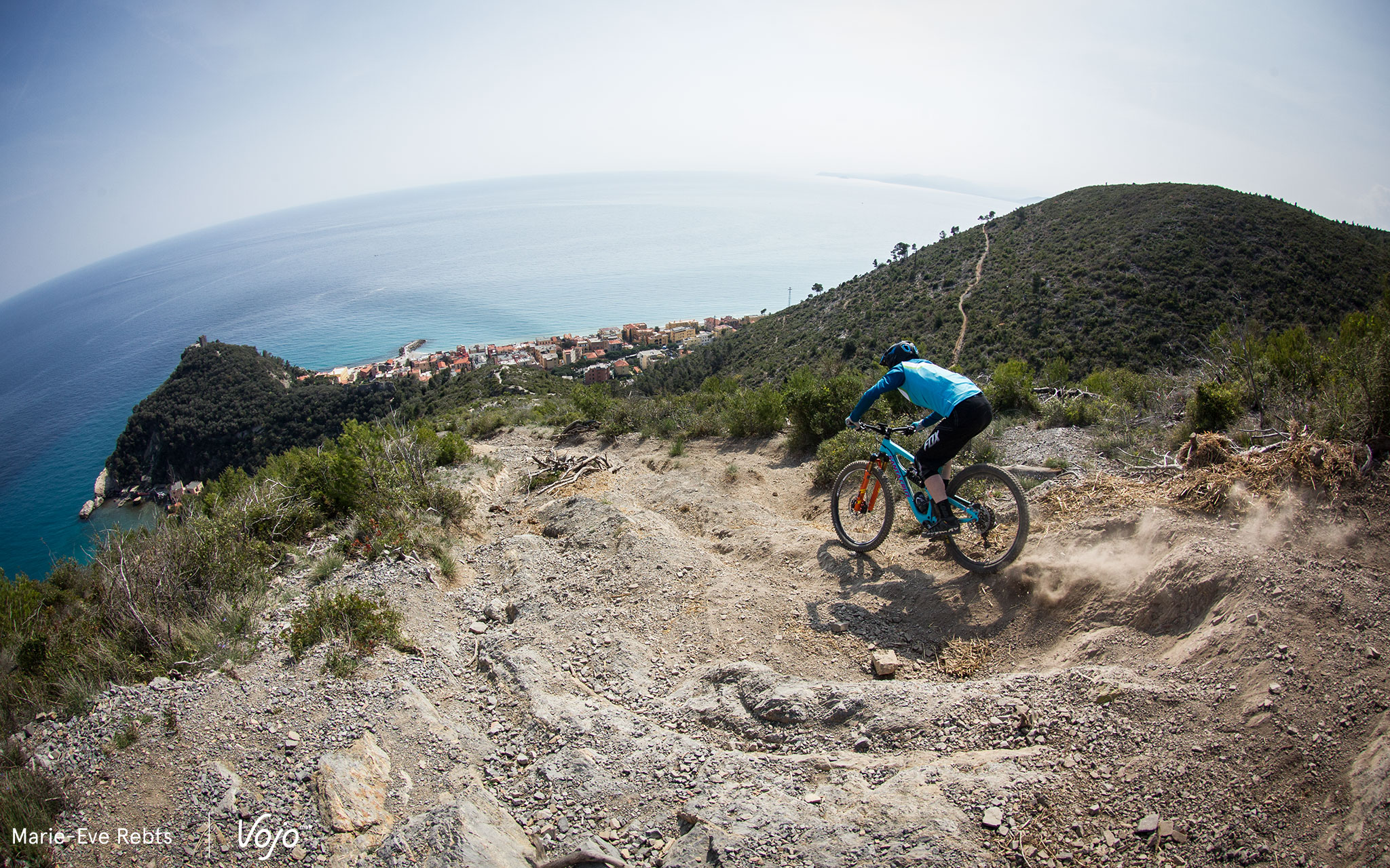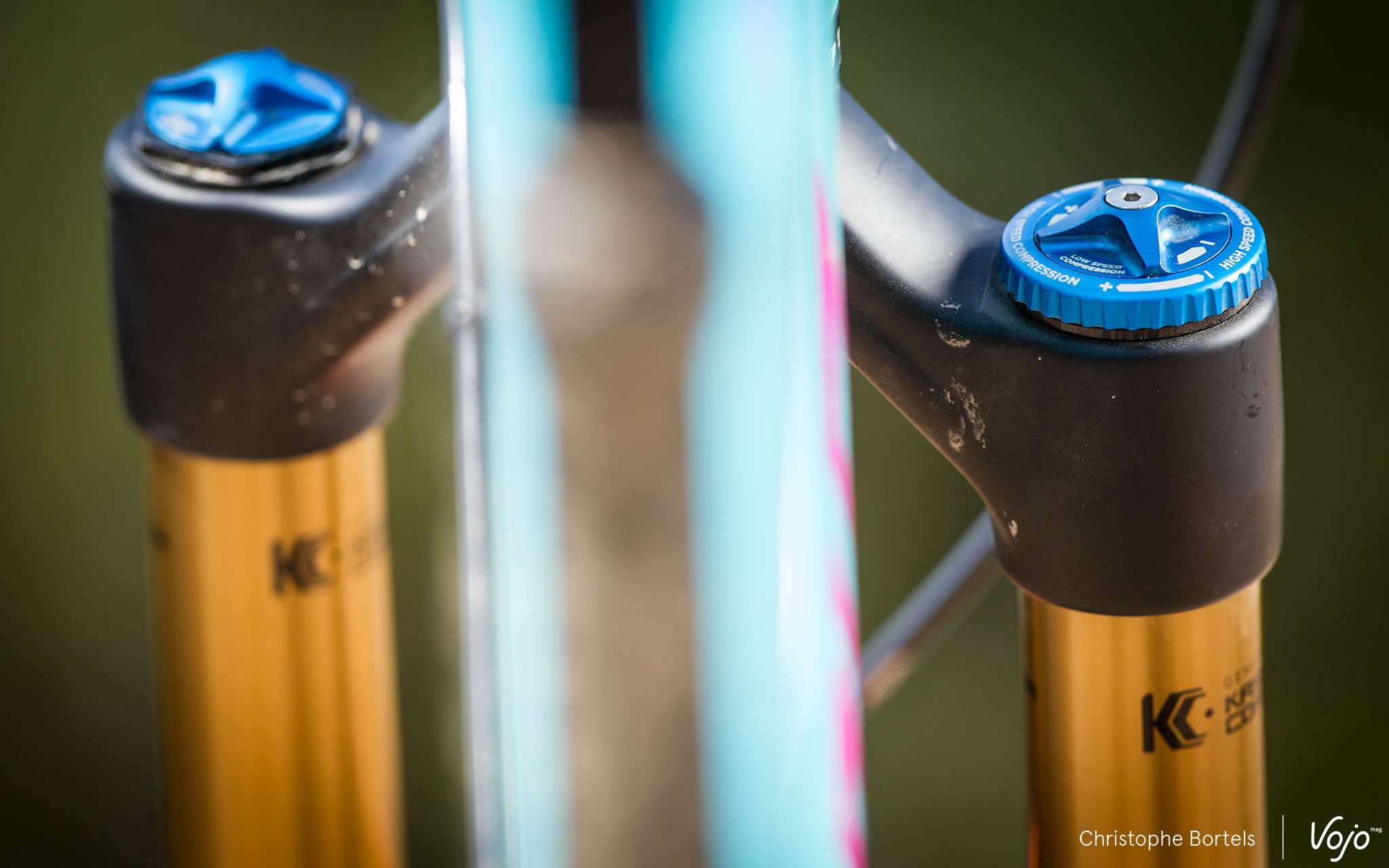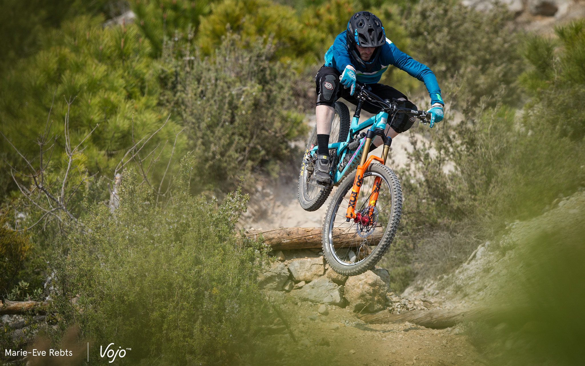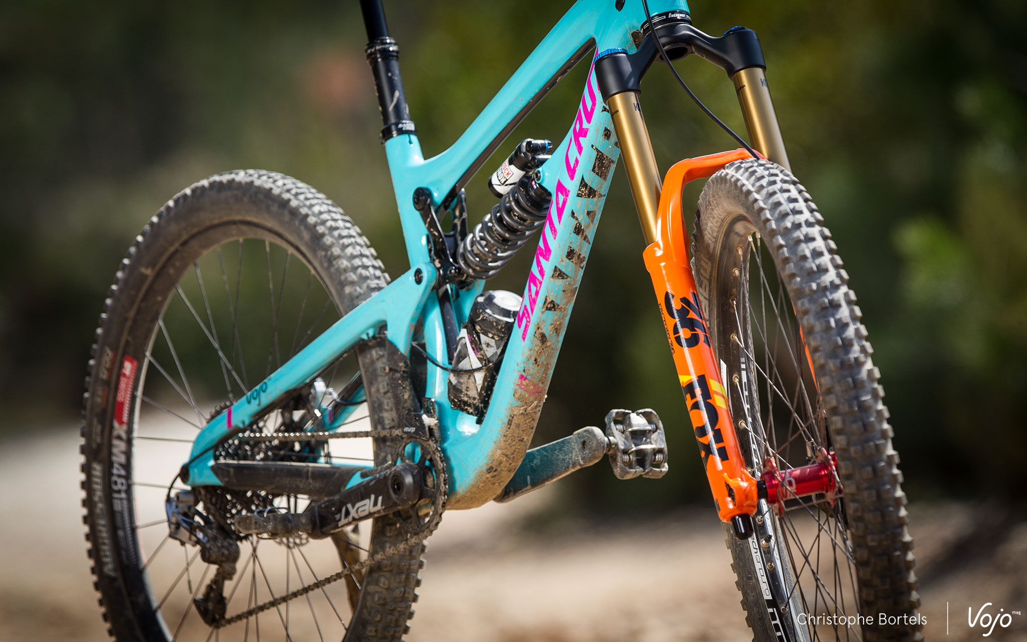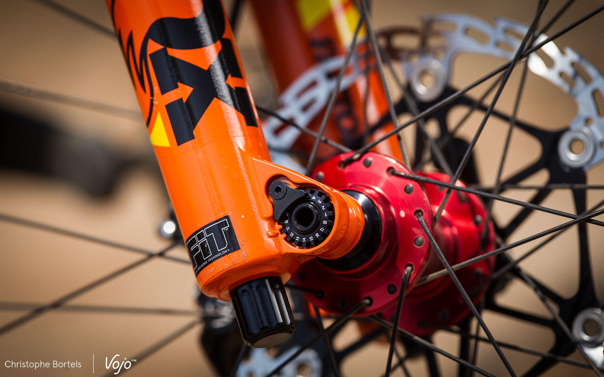 C’est couplé à notre Santa Cruz Nomad 3 et sur les superbes traces de Finale Ligure, en Italie, que nous avons pu tester durant quelques jours la nouvelle 36 mise à notre disposition par Fox en version haut de gamme Factory FIT HSC/LSC de 170mm. Avant cet essai, la fourche a fait un petit tour sur la balance Vojo. Verdict avec un pivot légèrement raboté à 195mm et l’axe de 15mm en place, mais sans étoile : 1986g. Le tout donne une impression de robustesse, la finition est parfaite et les commandes très ergonomiques avec des clics bien marqués.