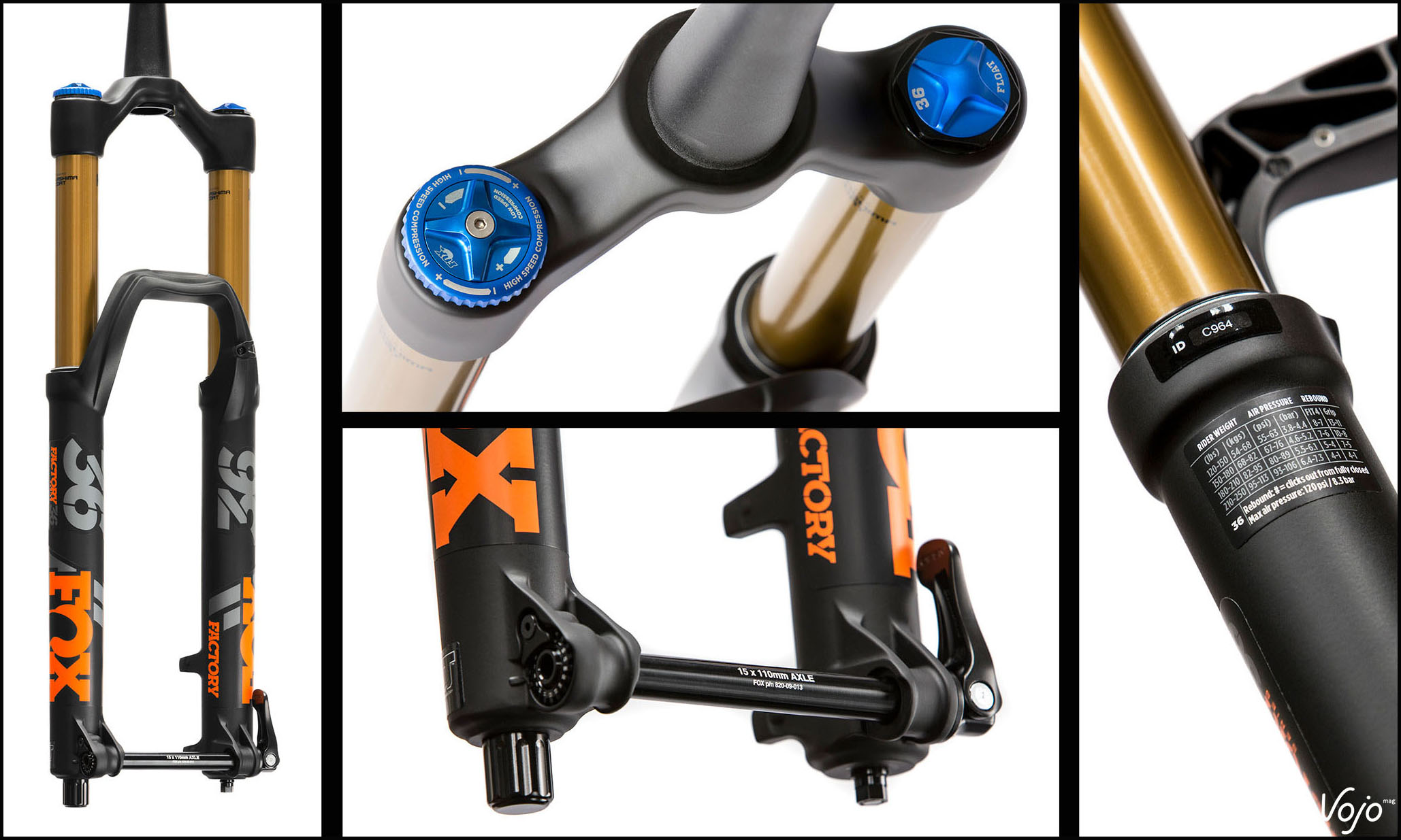 Cette nouvelle 36 sera disponible en trois débattements pour les roues de 27.5″ (150, 160 et 170mm), deux pour le 29″ (150 et 160mm) et deux pour ceux qui roulent encore en 26″ (160 et 180mm). Ces derniers pourront même opter pour un pivot droit en 1″1/8 à la place du désormais traditionnel pivot conique ! Fox continue également à proposer un chassis spécifique e-bike, adapté aux contraintes occasionnées par le surpoids des vélos électriques et qui se distingue par une rigidité encore accrue ainsi que l’ajout de matière à certains endroits particulièrement sollicités.