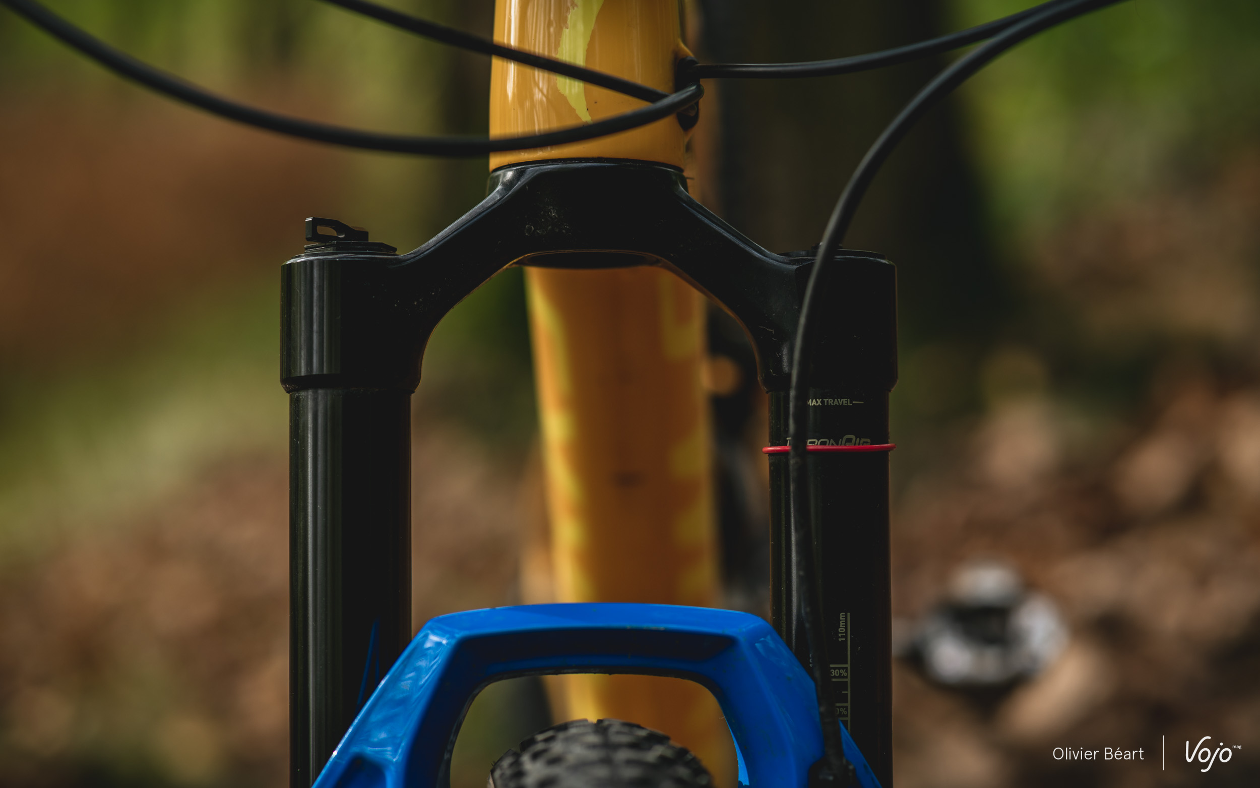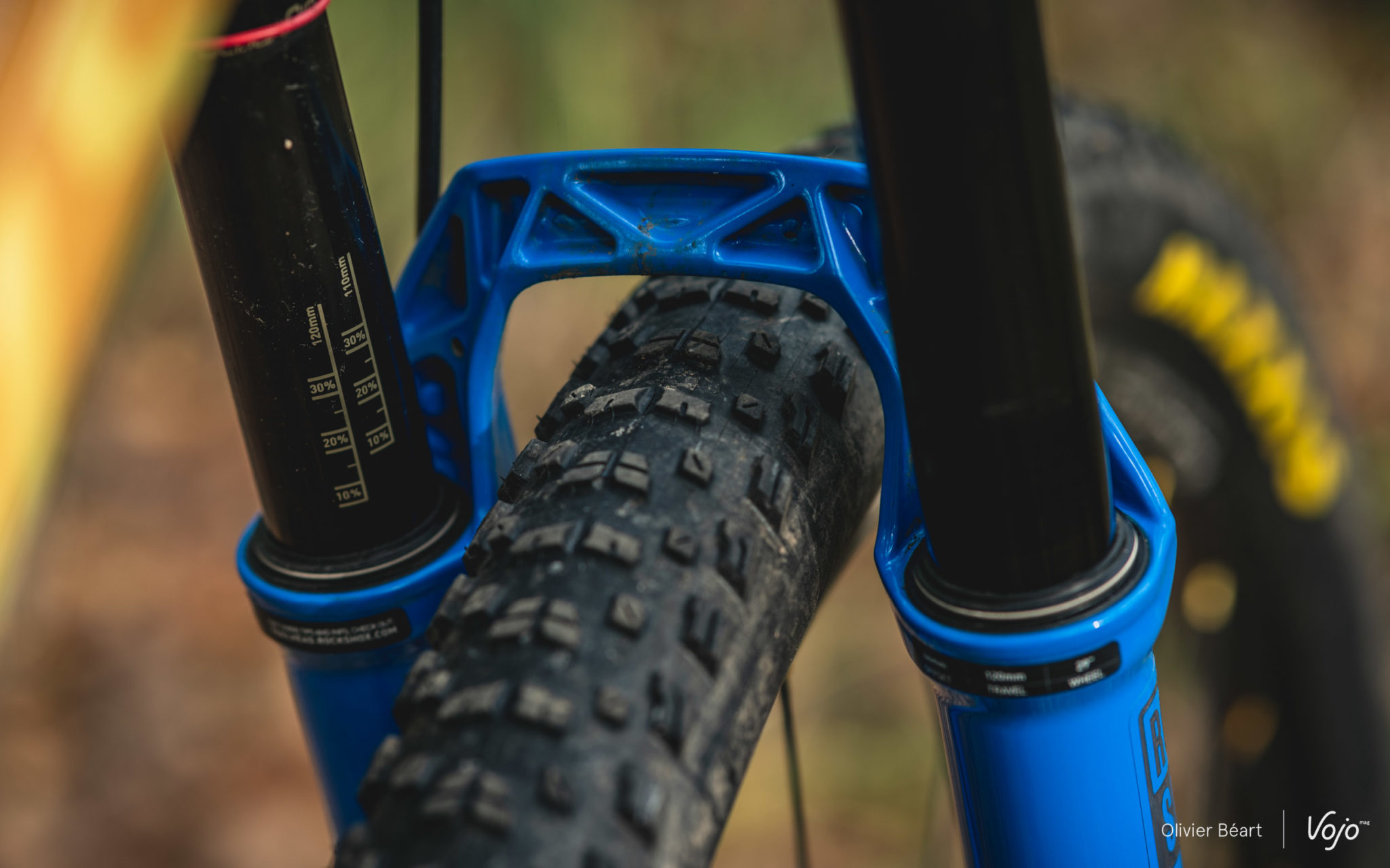 Premier point éliminatoire pour les fourches en 32mm, le débattement. Si vous voulez passer à 120mm, vous n’aurez pas le choix. Les fourches légères de XC en 32mm sont toutes limitées à 100mm et le but du passage à 34/35mm sur les modèles testés ici était justement de proposer à la fois plus de débattement et une rigidité en rapport avec leurs nouvelles capacités, sans trop grever le poids. Attention aussi : pour rester rigides tout en étant super légères, ces fourches en 32mm de dernière génération ont des châssis très étroits, elles ne sont pas officiellement compatibles avec des pneus de 2.4″. En pratique, ça peut passer sur des modèles peu cramponnés, mais il ne reste que très peu d’espace, ce qui occasionne des risques de bourrage. Autant savoir !