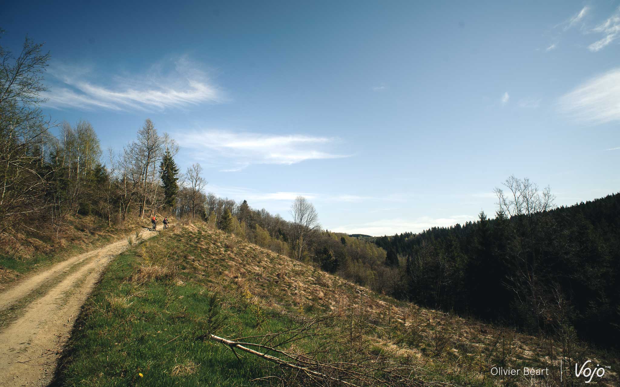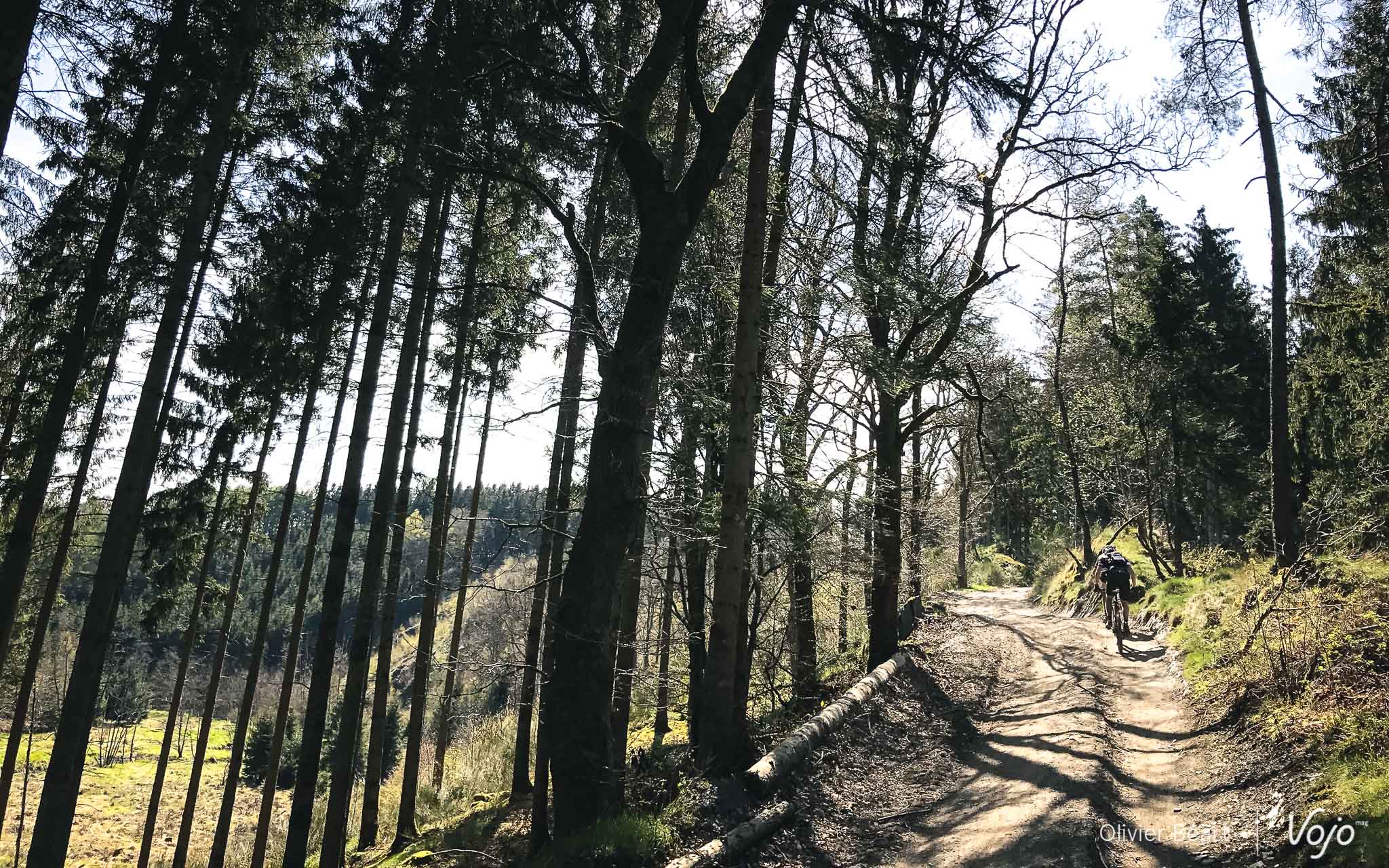 Les kilomètres s’enchaînent et, globalement, le tracé reste assez propre dans sa première partie. On en profite pour discuter sur les motivations de chacun à s’investir dans ce type d’action. Le point commun qui nous réunit est vraiment notre passion du VTT et l’envie de pratiquer notre sport de manière durable et respectueuse. Pour cela, il faut savoir mouiller sa chemise et pas juste profiter, mais aussi s’investir et donner de son temps. Ce que nous faisons ici. Mais ne croyez pas qu’on s’ennuie ! L’ambiance dans notre petite troupe est excellente et avoir les chemins du Roc d’Ardennes pour nous tout seuls c’est aussi un fameux luxe.