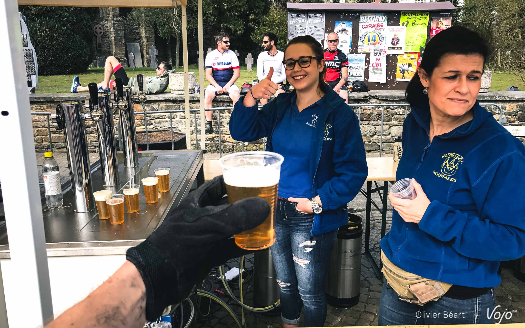 Et notre grand vainqueur est Pascal ! C’est lui qui a ramassé la première topette de coup de fouet après 5,6km exactement. D’habitude ce n’est pas notre genre, mais ici on n’hésite pas à se moquer un peu de celui qui l’a utilisée : « S’il en a déjà besoin maintenant, c’est pas gagné pour lui de terminer, il reste quand même encore plus de 75 bornes ! »