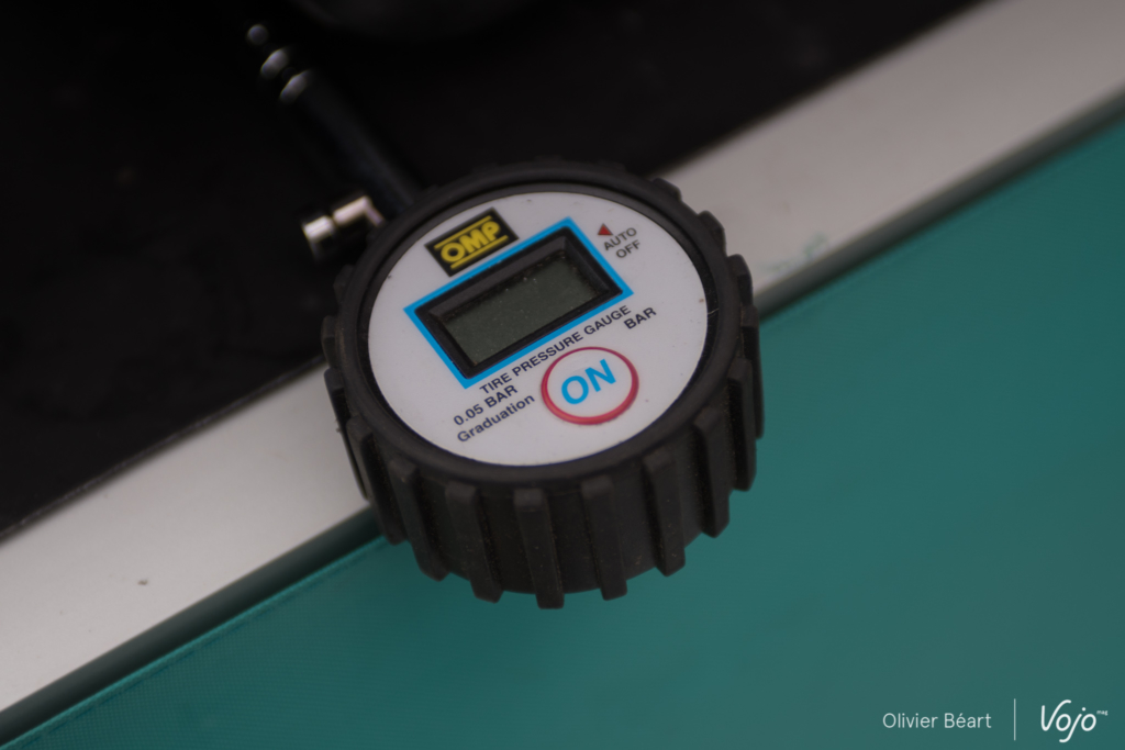 … les mécanos font un tout dernier contrôle des pressions et des serrages avant d’attacher la puce de chronométrage.