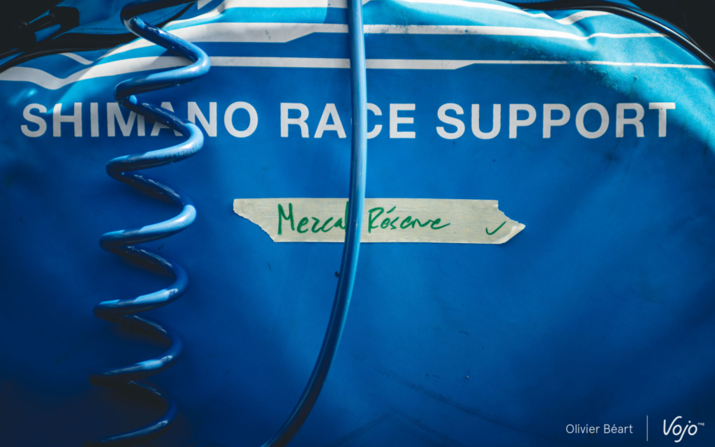Enfin, on ne peut pas s’empêcher de demander si les pilotes ont des demandes particulières, des points auxquels ils sont spécialement attentifs. « En fait, pas vraiment. Il y a bien eu la tige de selle télescopique que Julien a été un des premiers à tester mais sinon, c’est surtout au niveau des petits réglages fins du poste de pilotage qu’on doit bien connaître nos gars. Distances des leviers par rapport aux grips, inclinaison, sens des commandes des dérailleurs Di2,… Là oui, ils ont leurs petites habitudes et en général on donne le dernier coup de clé avec eux juste avant de partir rouler pour être sûr que c’est parfait. »