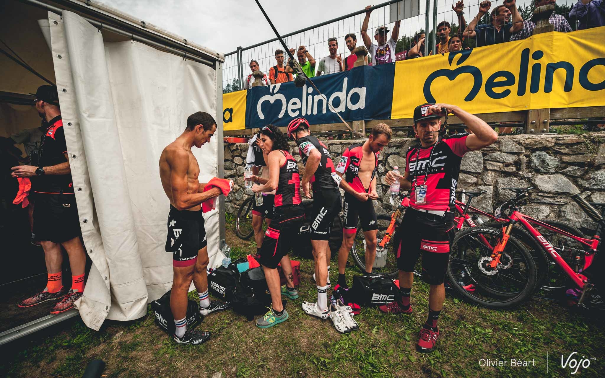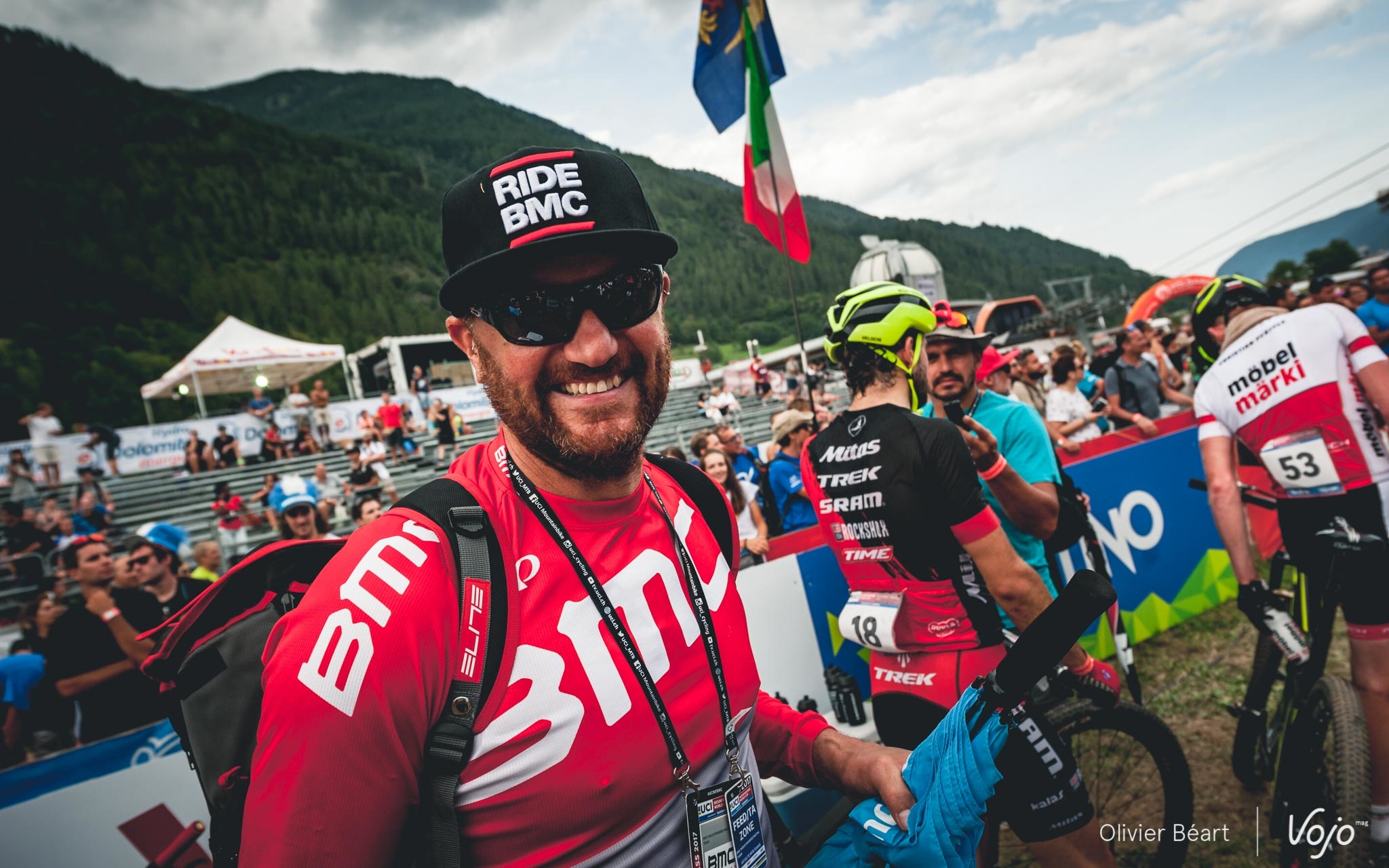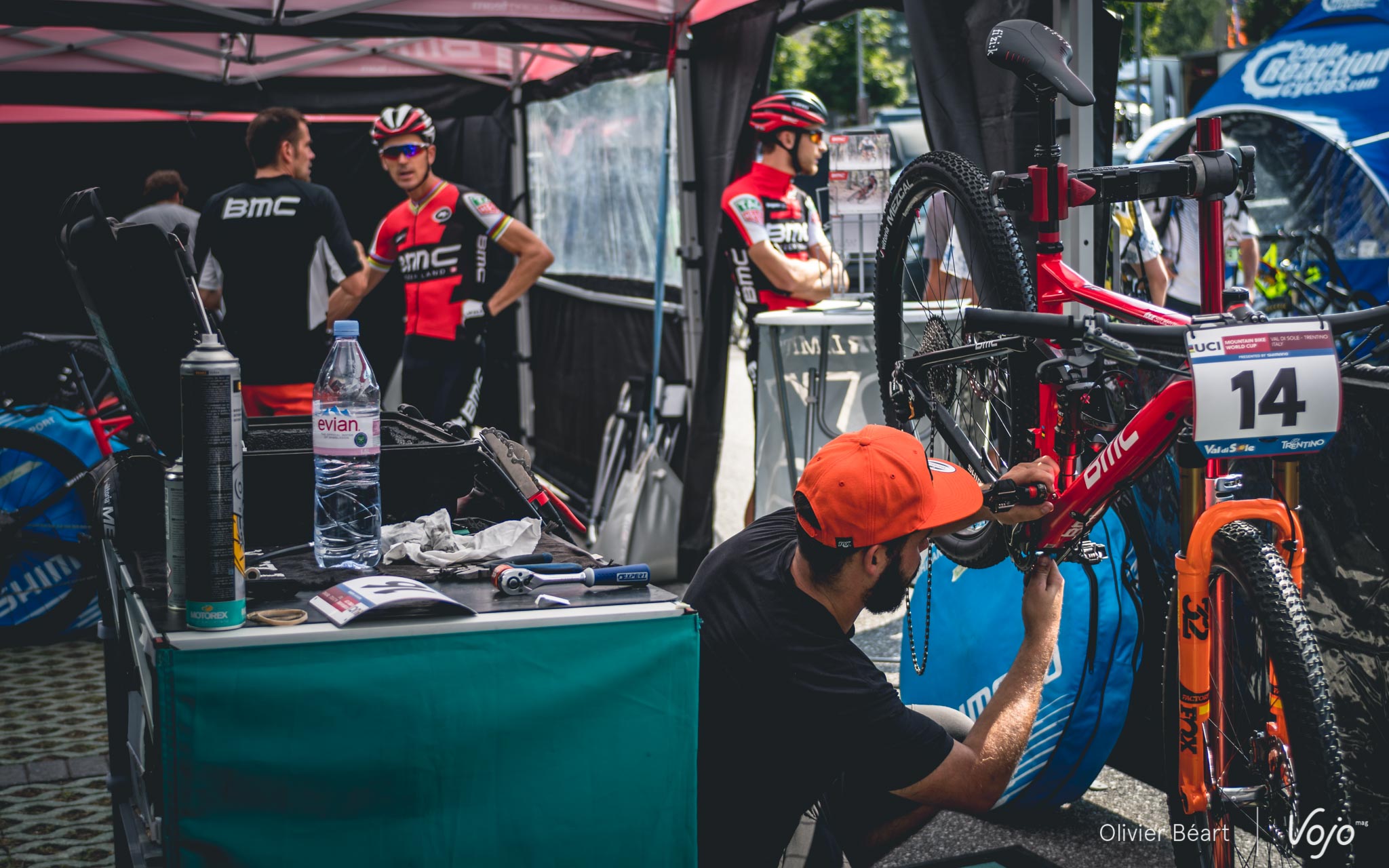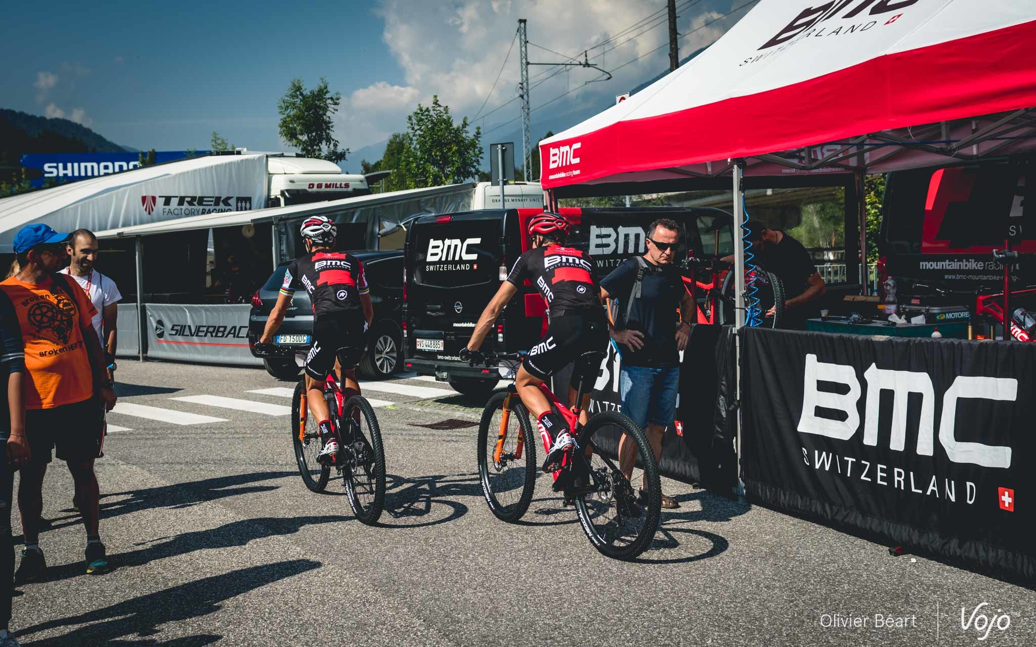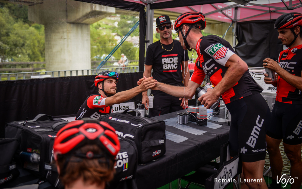 Côté coureurs, ils sont cinq, et vous connaissez certainement bien leur nom : Julien Absalon, Titouan Carod, Lars Forster, Lukas Flückiger et Reto Indergand. Mais derrière ces deux Français et ces trois Suisses qui composent le BMC Racing Team, il y a aussi tout un staff, une petite famille sans qui rien ne serait possible, mais qu’on ne voit habituellement pas. Exceptionnellement, l’équipe BMC a accepté d’accueillir nos reporters lors de la Coupe du Monde de Val di Sole. Un moment unique que nous vous invitons à découvrir dans ce dossier spécial :
