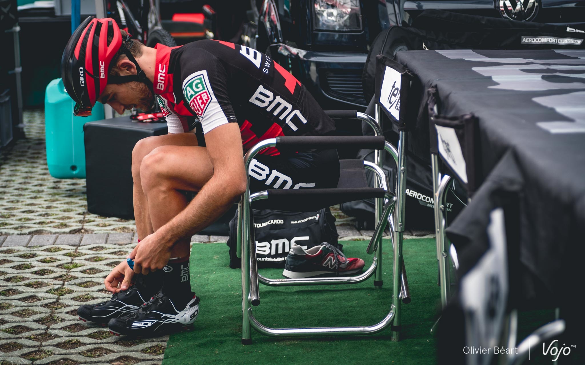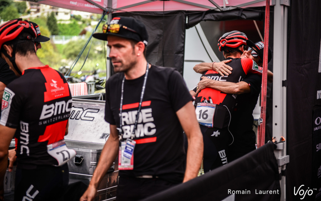 Pour Julien Absalon, les deux dernières Coupes du Monde de cette saison 2017 ont une saveur assez particulière. Après sa longue pause forcée pour cause de fracture de la clavicule, il a loupé les championnats de France et plusieurs Coupes du Monde. Malgré un très beau retour lors des championnats d’Europe (où il a terminé 2e), c’est la première fois depuis 15 ans qu’il s’élance sans le moindre maillot distinctif. « C’est clair que cela me fait quelque chose de remiser les maillots de champion de France, d’Europe et du Monde au placard. Le premier entraînement a été un peu bizarre… mais finalement, même si c’est symbolique, on s’y fait très rapidement. Puis, j’aime bien le rouge et le maillot BMC est joli donc maintenant je n’y pense déjà plus », nous confie-t-il en souriant.