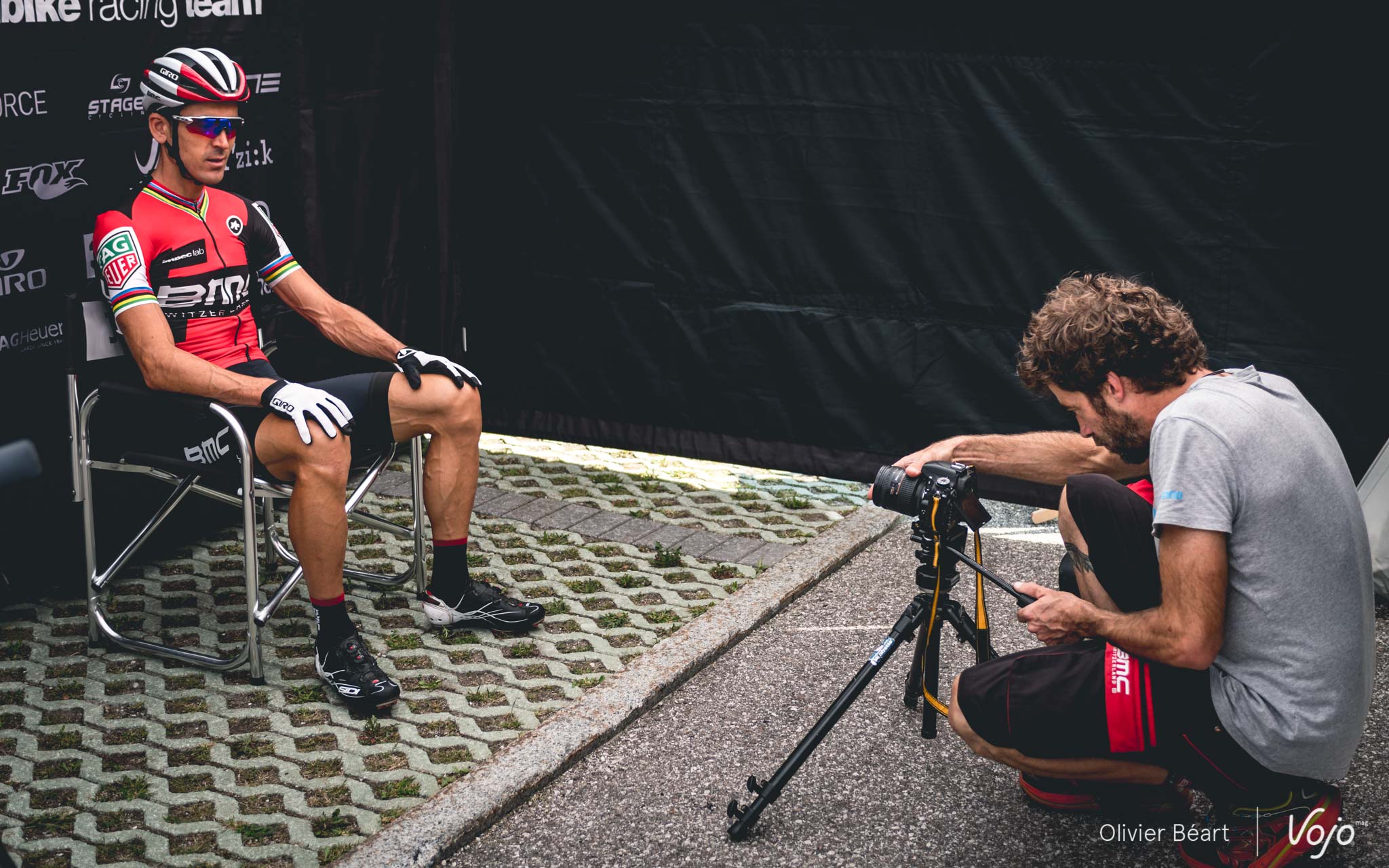 A peine en a-t-il fini avec nous que nous voyons Julien Absalon jouer les acteurs devant la caméra de Sylvain Golay. Ce dernier s’occupait principalement de mécanique et d’autres petites choses pour le team avant cette saison, mais son rôle a évolué davantage vers la communication et la production de contenu pour les réseaux sociaux ces dernières années.
