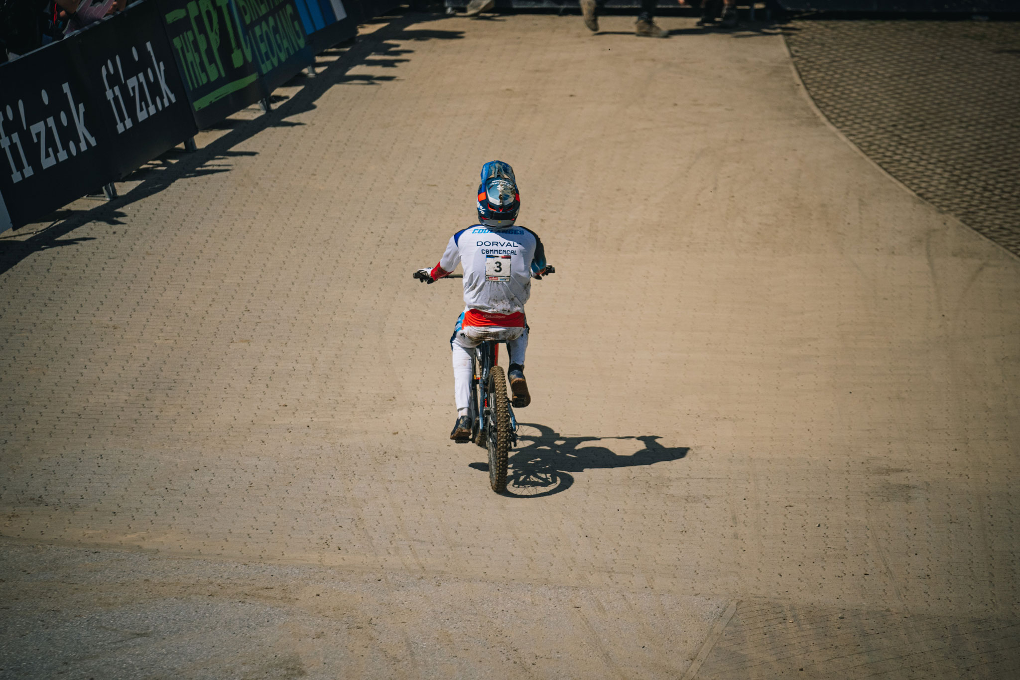 Benoît : Ah, pas facile. En fait nous pour les Elites Men, on n’a pas trop de problème parce que malheureusement tout tourne autour de nous du coup, le fonctionnement actuel, je trouve ça plutôt bien. Y a peut-être un problème sur les protégés, 20 pilotes seulement je trouve ça dommage, il y a beaucoup de personnes qui roulent très vite maintenant et qui se retrouvent pas en final juste parce qu’ils ont un problème en qualif.