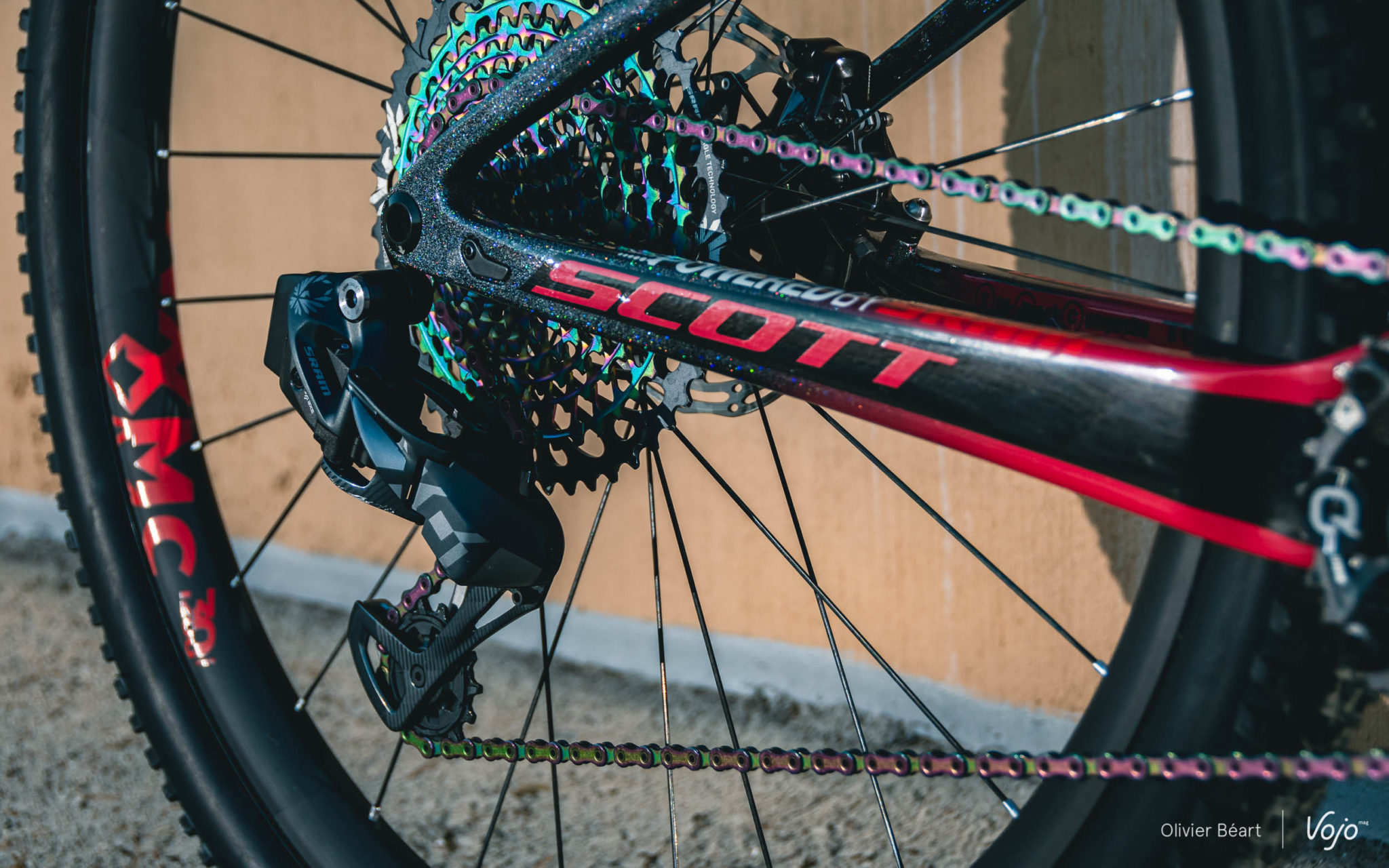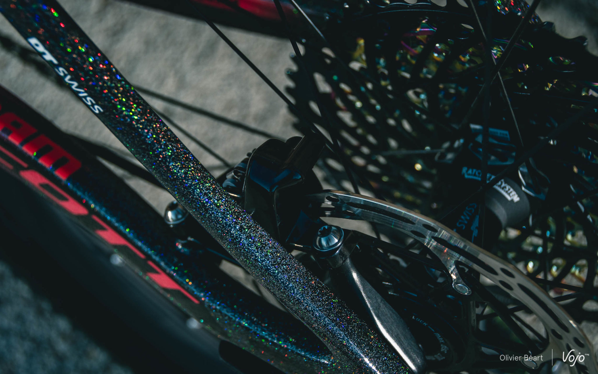 Habituée aux peintures custom chez Specialized, elle y a aussi eu droit dès son arrivée chez Scott. Elle a choisi les couleurs, avec une dominante de rose très « girly » parfaitement assumée.
