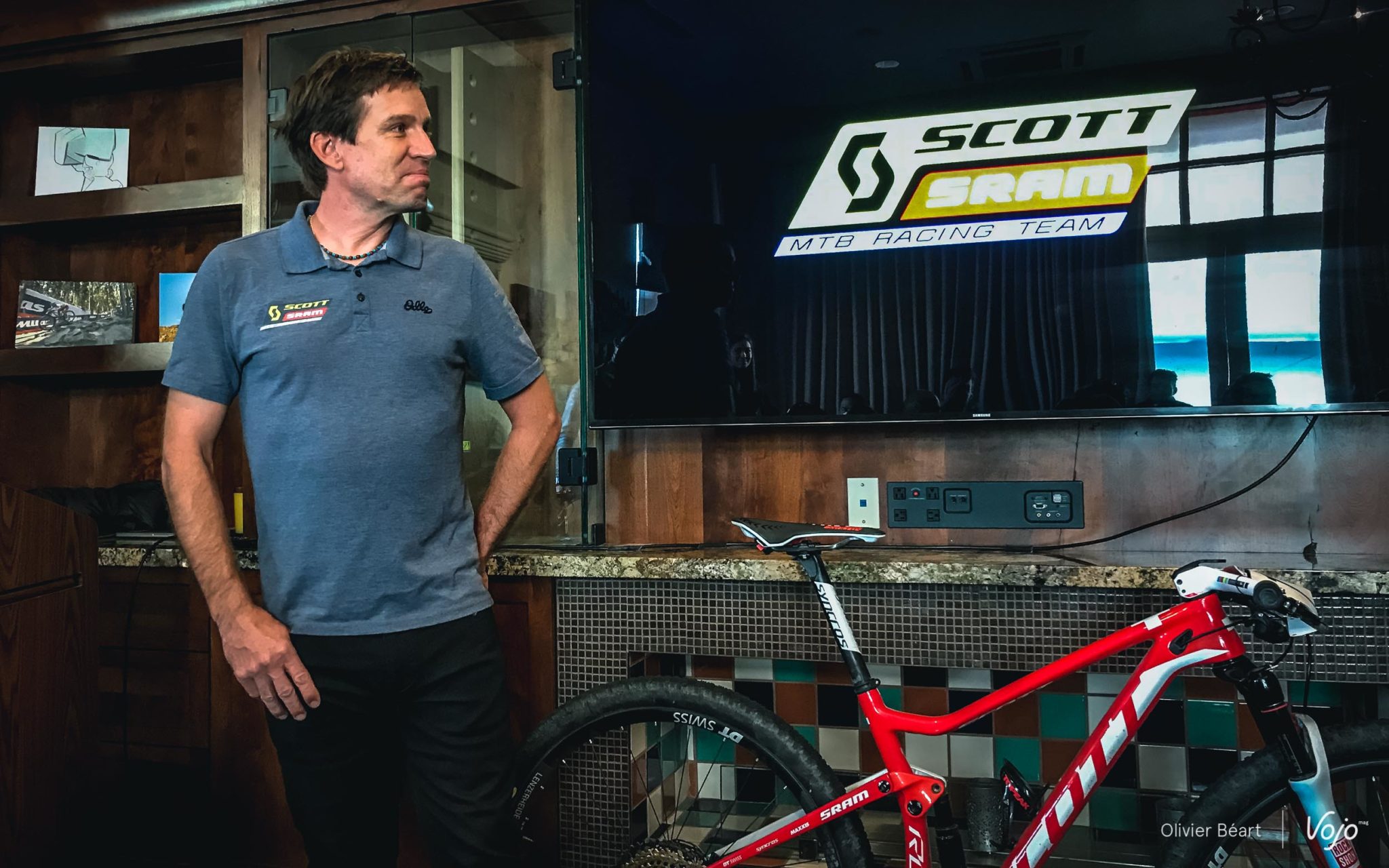Nous avons profité du lancement de la nouvelle transmission Sram AXS électronique sans fil (voir ici pour plus d’infos), où Kate Courtney était présente, pour lui poser quelques questions, parler d’elle avec Thomas Frischknecht et examiner son nouveau Scott Spark RC.